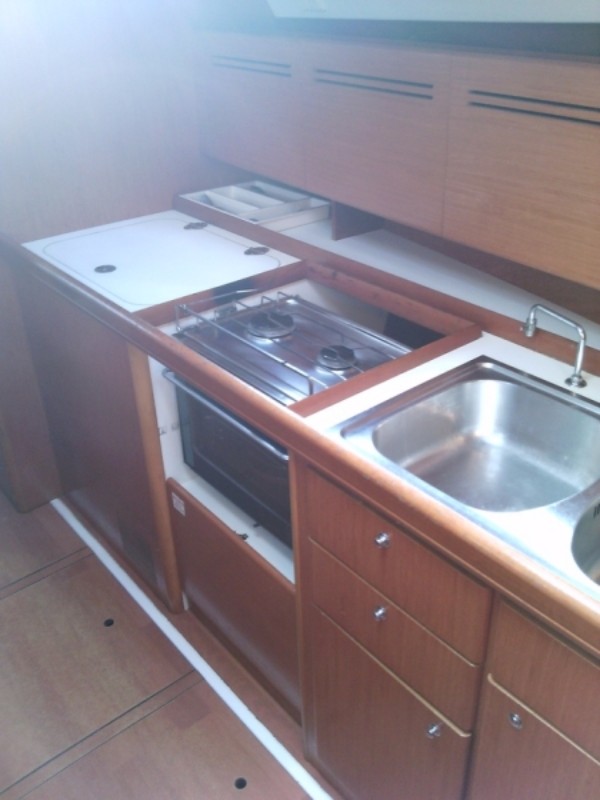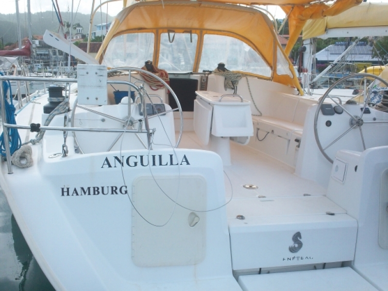 | Outside | Outside shower, Bathing ladder, Bimini top, Cockpit speakers, Cockpit cushions, Cockpit table, Electr. anchor windlass, Self-tailing winches, Solar panels, Sprayhood, Windex |