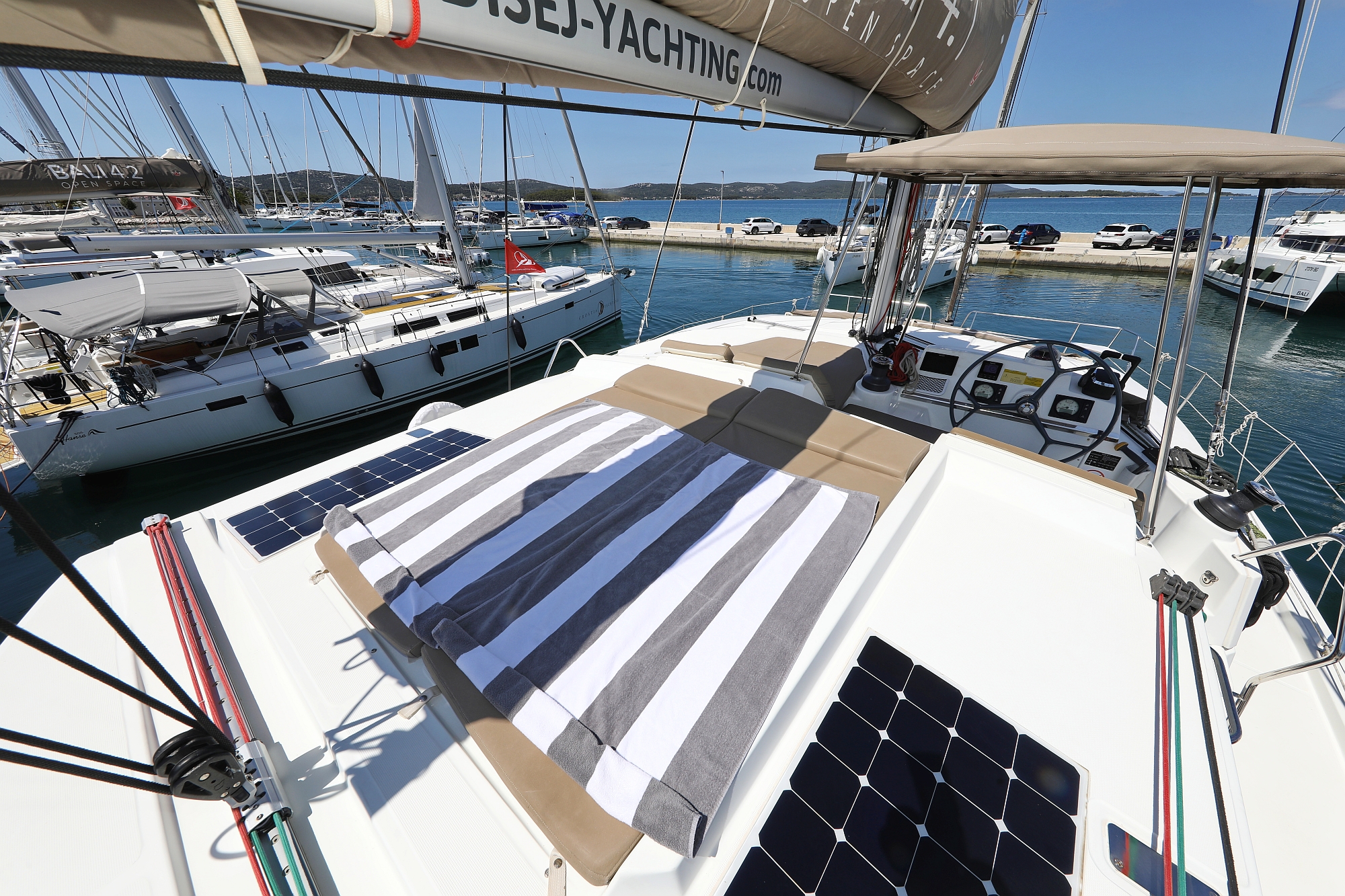 | Outside | Anchor with chain, Bimini top, Cockpit speakers, Cockpit cushions, Electr. anchor windlass, BBQ, Solar panels |