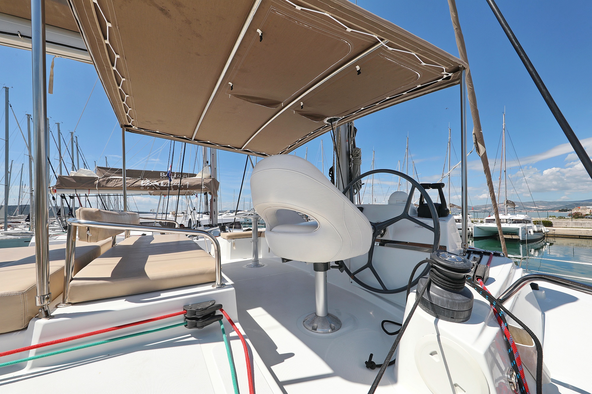 | Outside | Bathing platform, Bimini top, Cockpit shower, Cockpit speakers, Cockpit cushions, Cockpit table, Deck cushions, Electr. anchor windlass, Electr. main sail winch, Flybridge, Teak in cockpit |