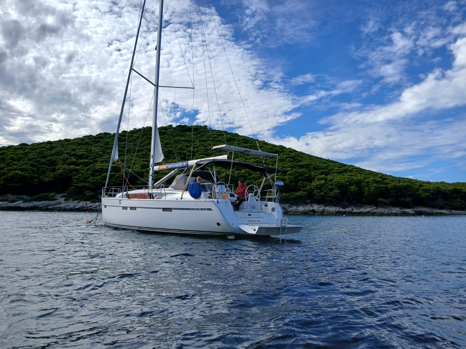 | Safety | Autopilot, Bosun's chair, First aid kit, Tools, Bowthruster, Solid life vests, Fire extinguisher, Lifebelts, Fog horn, Emergency tiller, Distress signals, Radar reflector, Life raft, VHF Radio, Second anchor |