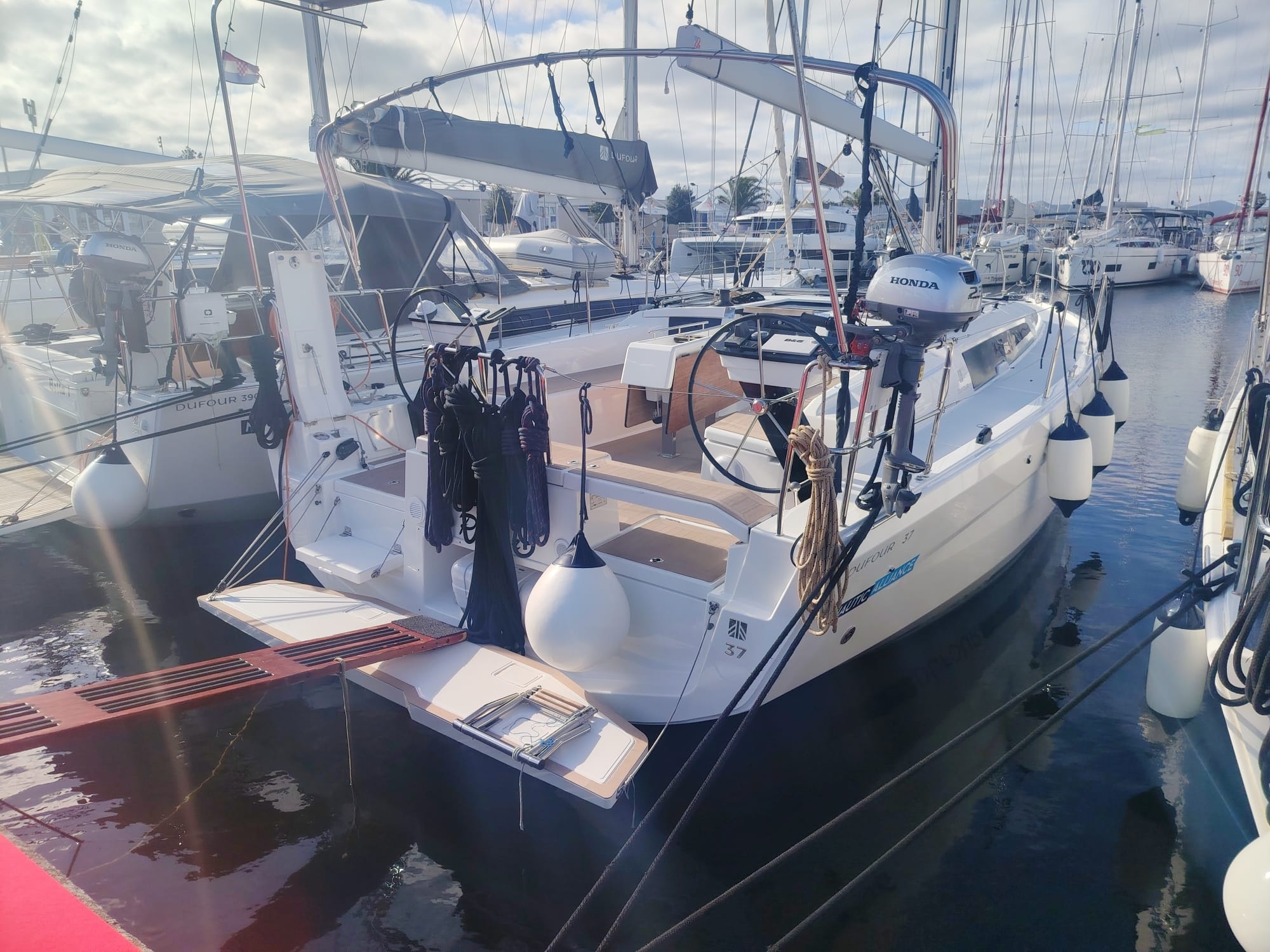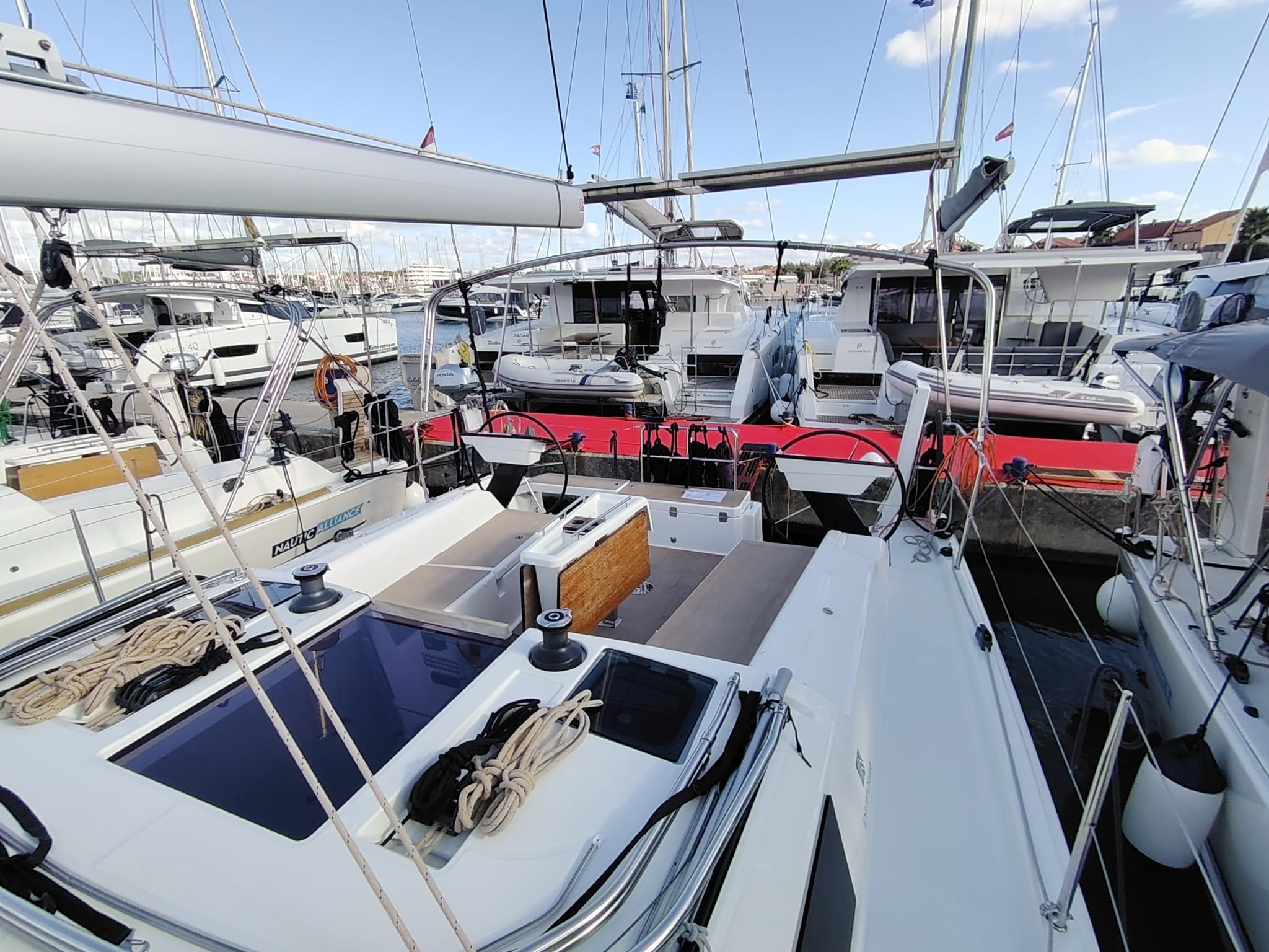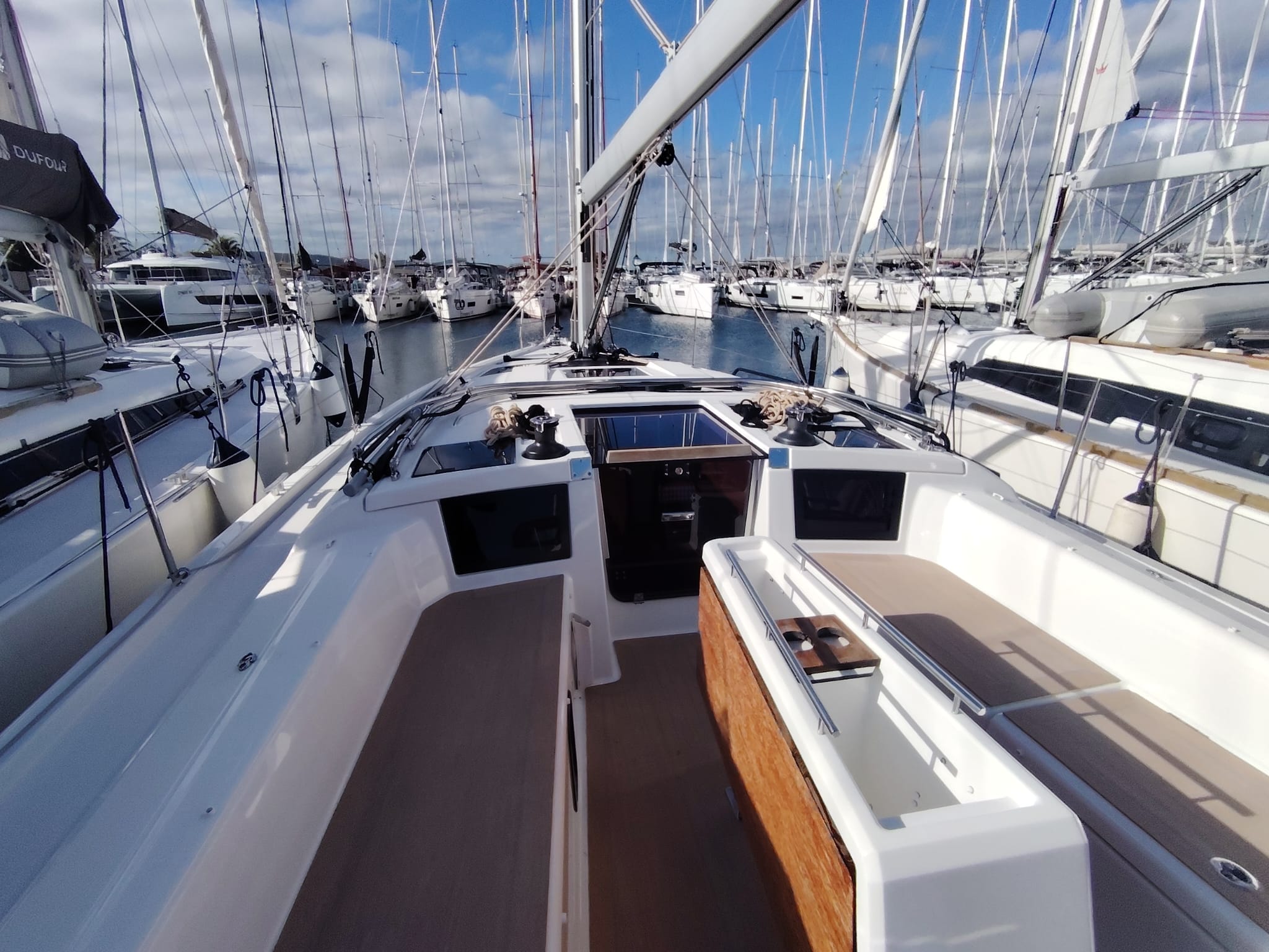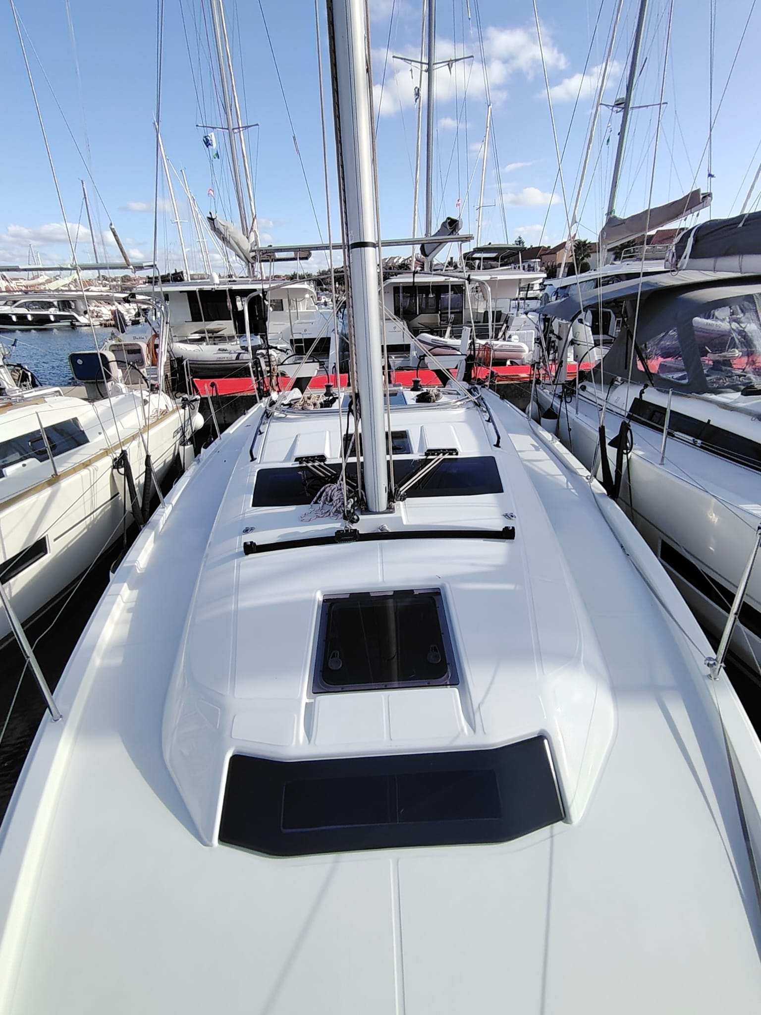 | Outside | 220V shore connection, Anchor with chain, Anchor winch, Bimini top, Boat hook, Cockpit shower, Cockpit speakers, Cockpit cushions, Cockpit table, Jerry cans for diesel, Electr. anchor windlass, Fender, Mooring lines, Gangway, Ball fender, Plastic bucket, Solar panels, Sprayhood, Teak in cockpit, Wire (shroud) cutter, Canister for water, Water hose, Windex |