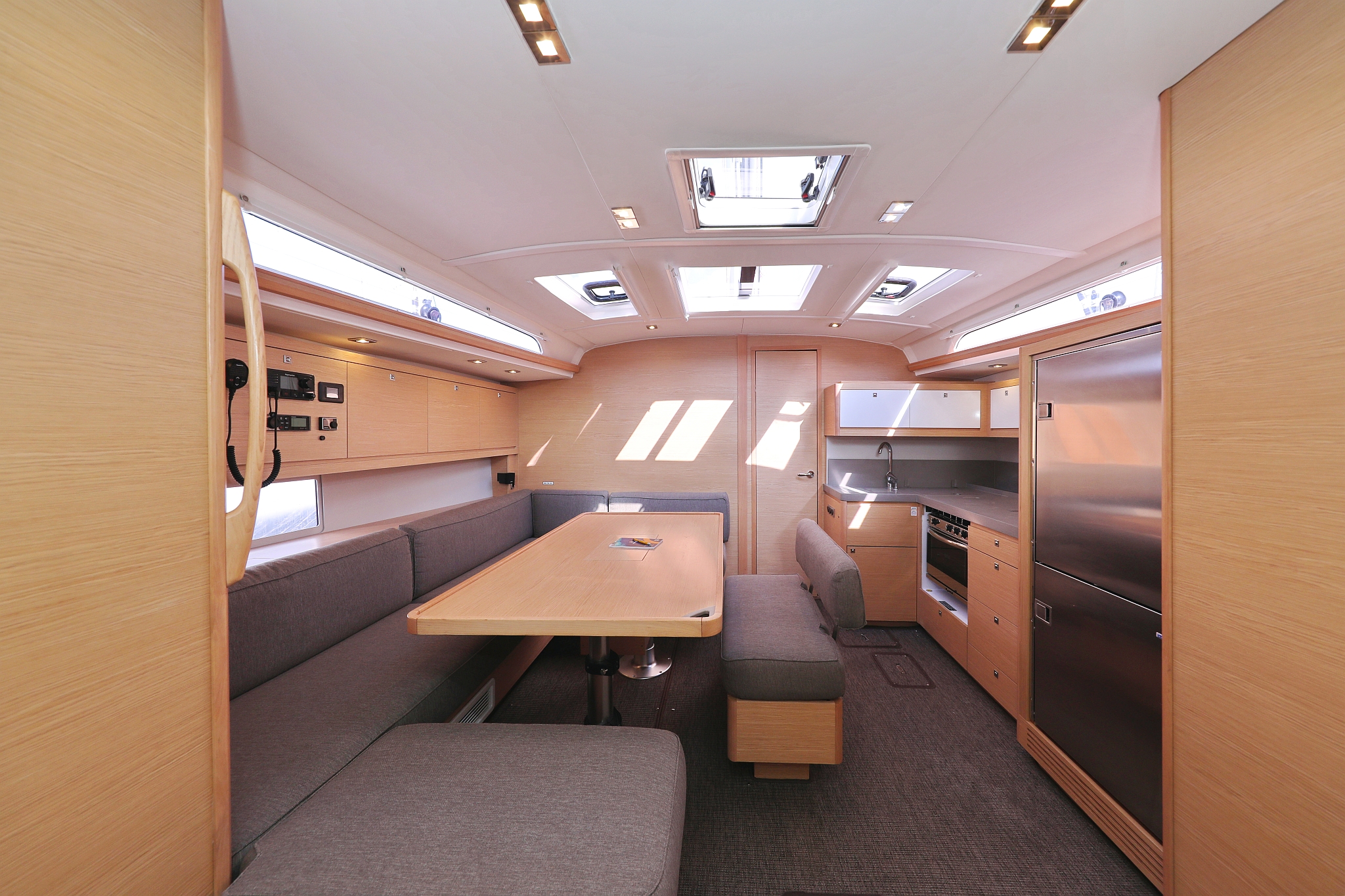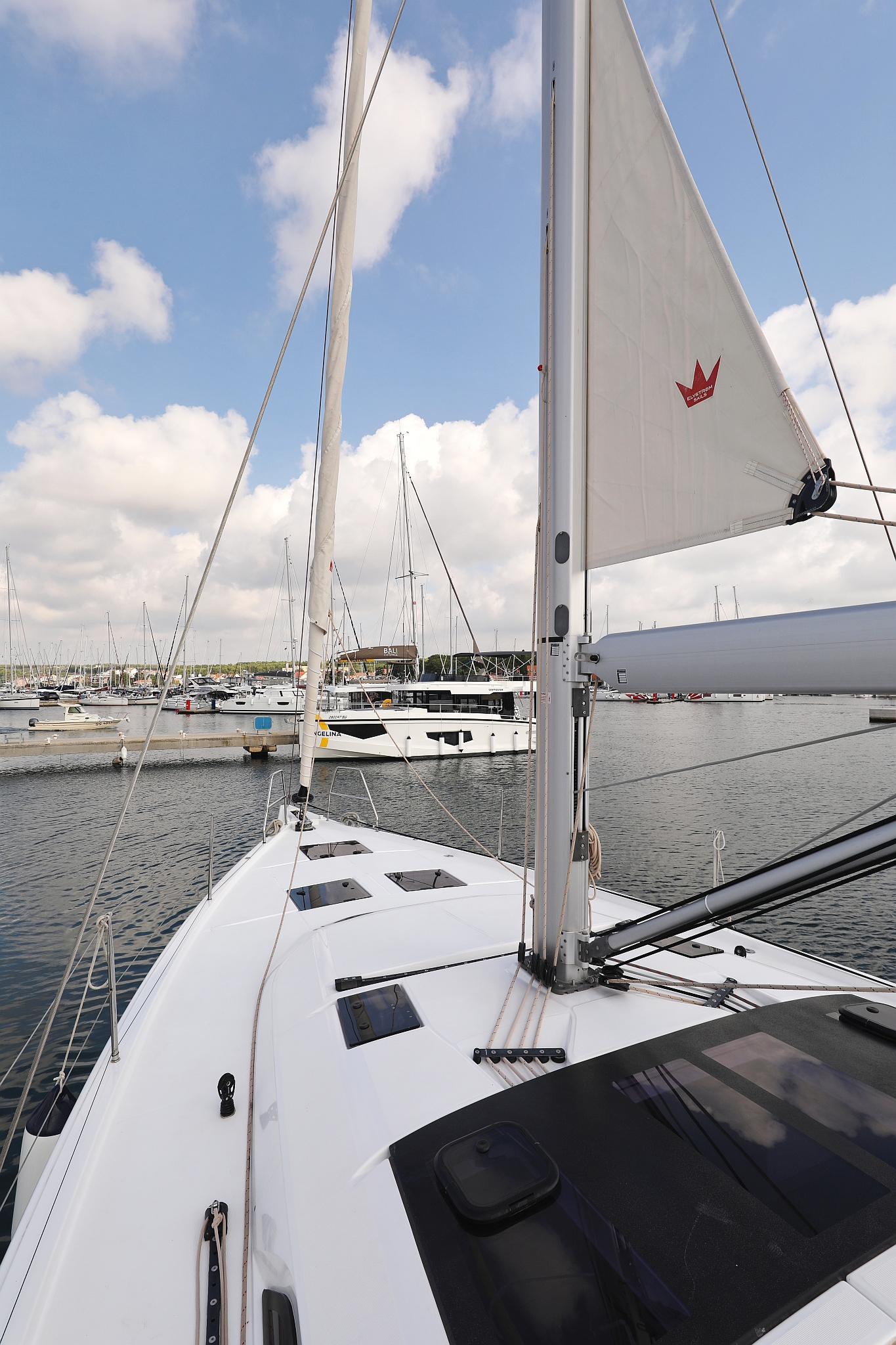 | Safety | Autopilot, First aid kit, Tools, Bowthruster, Electr. bilge pump, Solid life vests, Fire extinguisher, Manual bilge pump, Lifebelts, Fog horn, Emergency tiller, Distress signals, Radar reflector, Life raft, Rescue collar, Torchlight, VHF Radio, Second anchor |