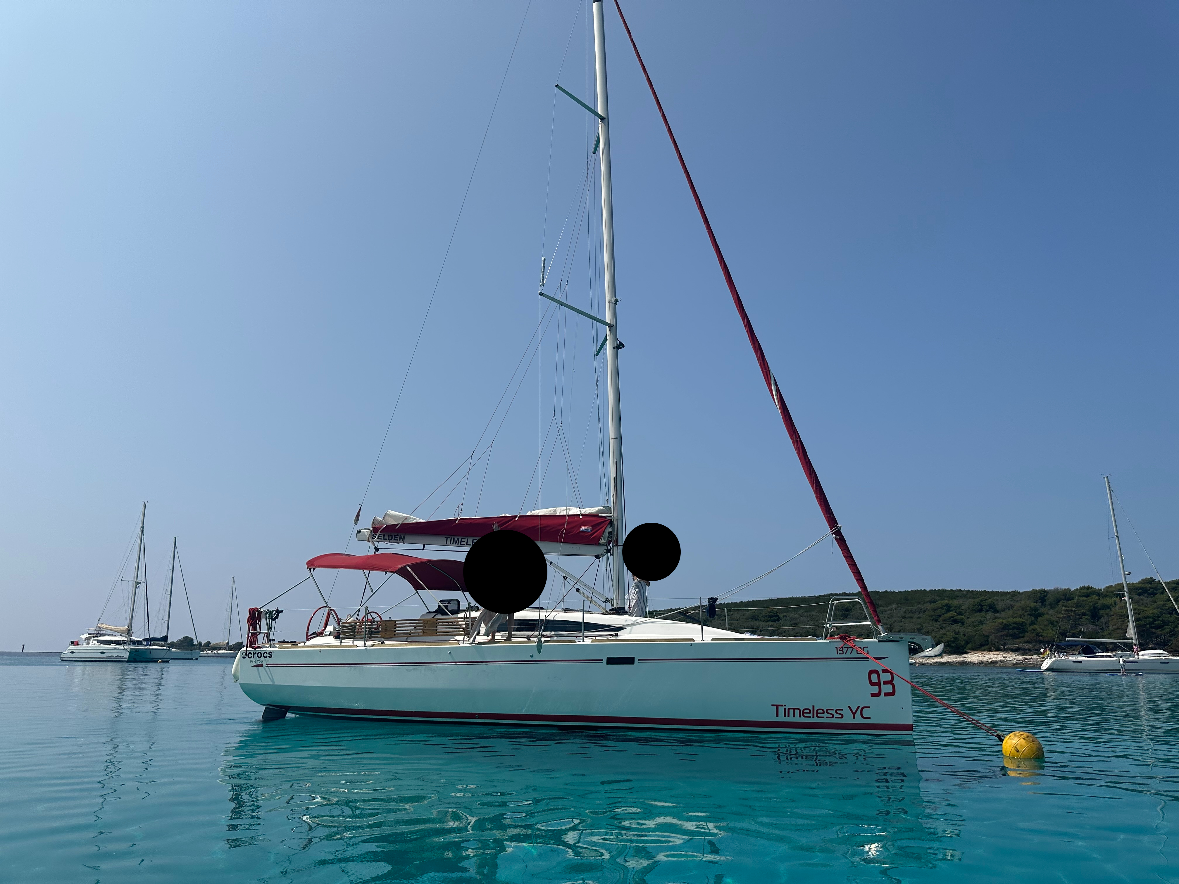 Kritik am Zustand der Yacht: es hat in der vorderen Kabine und im Küchenbereich leicht nach Diesel gerochen, der Tankschlauch zum Tank müsste ausgetauscht werden. Der Travelerschlitten war defekt und wurde mit einer Holzschraube als Bolzen notdürftig repariert und so übergeben. Diese hat natürlich nicht immer gehalten und musste von uns während der Woche mehrfach ersetzt werden- nichts für Starkwind. Der Rollmechanismus der Genua war schwergängig. Die Übergabe war zügig, vieles wurde aber als bekannt vorausgesetzt, hätte mir eine genauere Einweisung gewünscht, insbesondere beim Code Zero. Um diesen zu benutzen hätte ich Rollen umbauen müssen und für Leichtwind wären die Genuaschoten zu schwer. Den Code Zero haben wir deswegen garnicht ausprobiert und war eine Fehlinvestition.