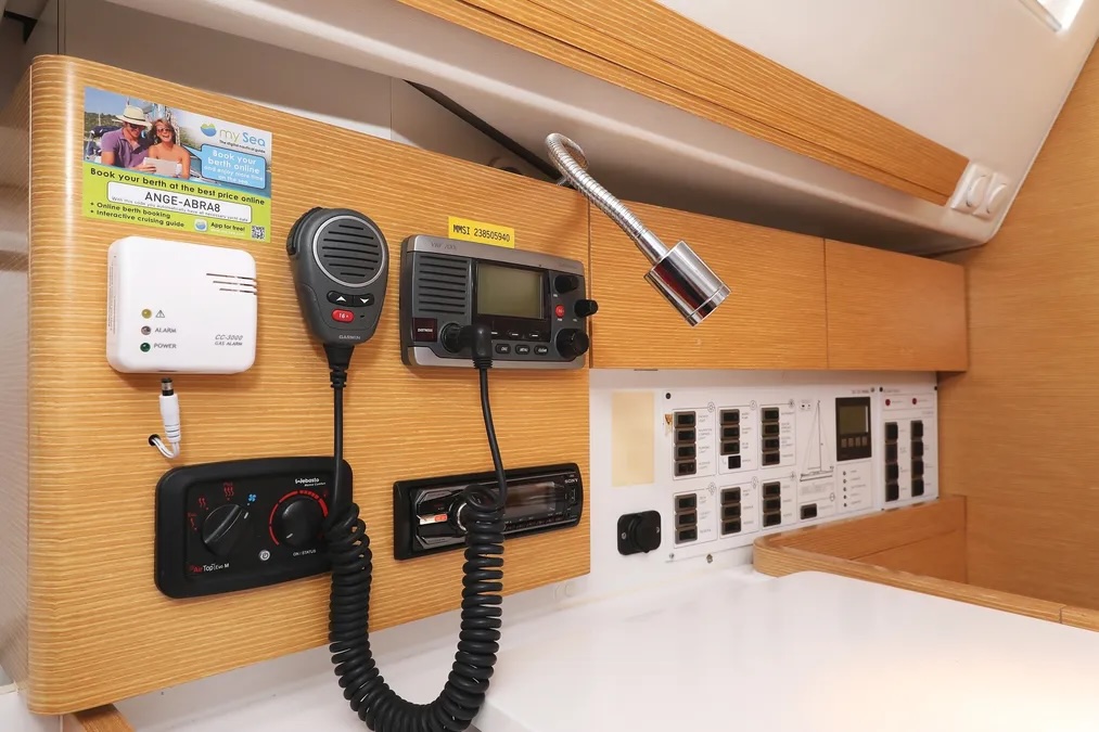 | Safety | Autopilot, First aid kit, Tools, Bowthruster, Electr. bilge pump, Solid life vests, Fire extinguisher, Manual bilge pump, Lifebelts, Fog horn, Radar reflector, Torchlight, VHF Radio, Second anchor |
