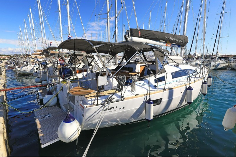 | Safety | AIS receiver, Autopilot, Bosun's chair, First aid kit, Bowthruster, Solid life vests, Fire extinguisher, Lifebelts, Fog horn, Emergency tiller, Distress signals, Radar reflector, VHF Radio with DSC, Second anchor |