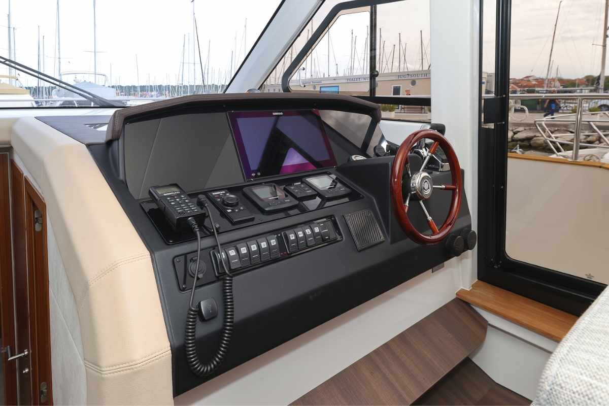 | Safety | AIS receiver, AIS-Transmitter, Autopilot, Bowthruster, Solid life vests, Stern thruster, Navigational lights, Rear view camera, Safety equipment, VHF Radio |