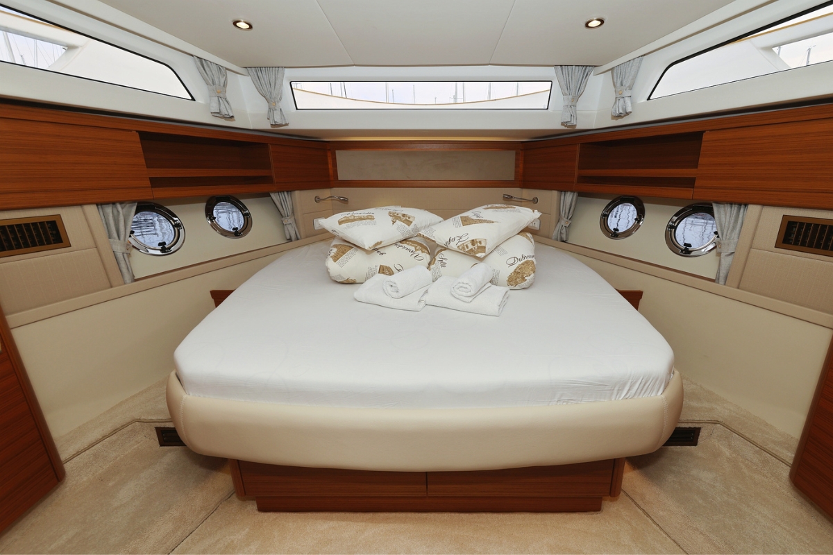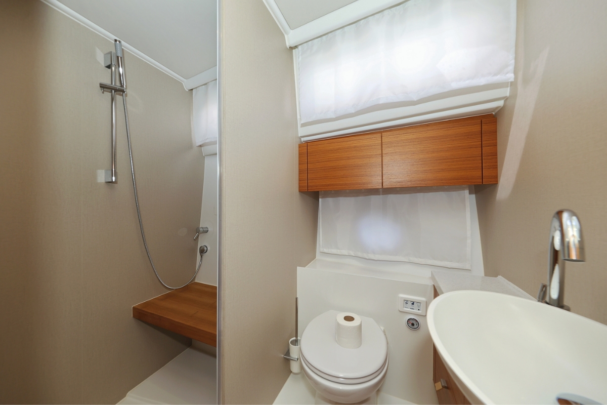 | Inside | Shower, Black water tank, Fusion sound system , Generator, Dishwasher, Induction cooker, Inverter 12V/220V, Airconditioning (independent from shore power), Battery charger, HiFi Speaker in saloon and cockpit, Microwave oven, Carpet, Warm water, WC (electr.) |