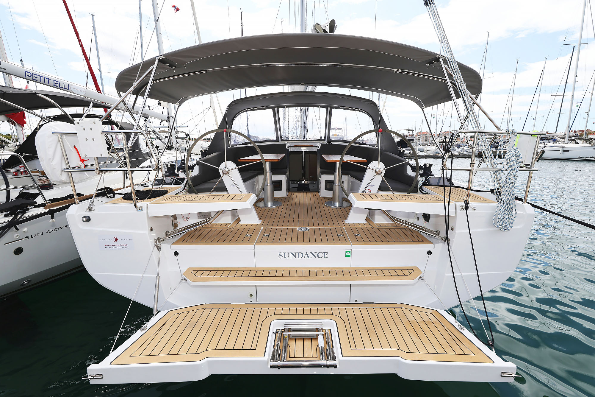 | Outside | Bathing platform, Bimini top, Cockpit shower, Cockpit speakers, Cockpit cushions, Cockpit table, Sprayhood, Teak in cockpit |