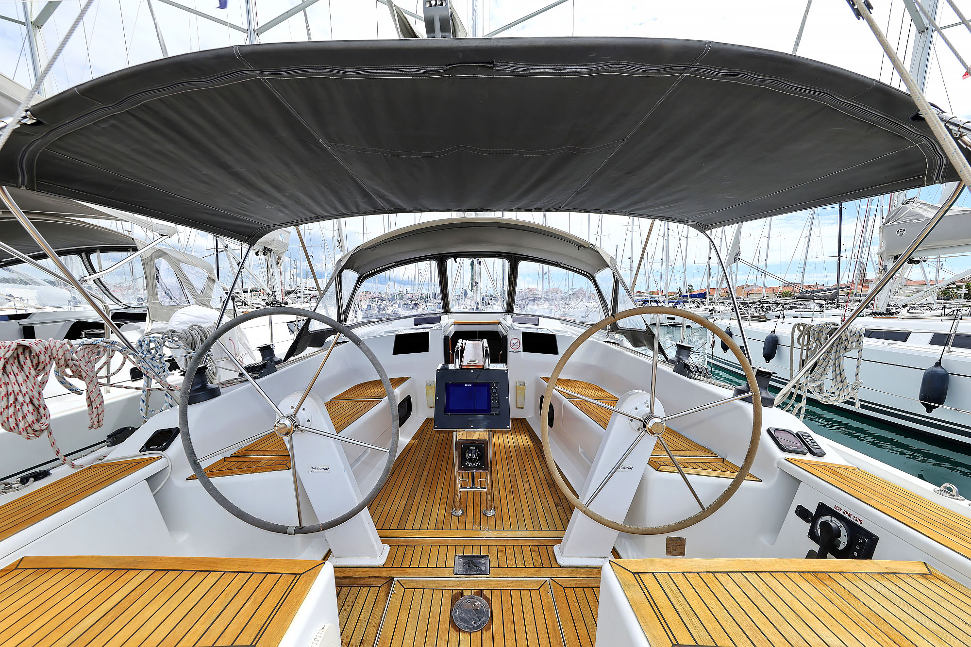 | Navigation | GPS with chart plotter in cockpit, Harbour books, Nautical charts, Tridata (Log, Echosounder, Windm.) |