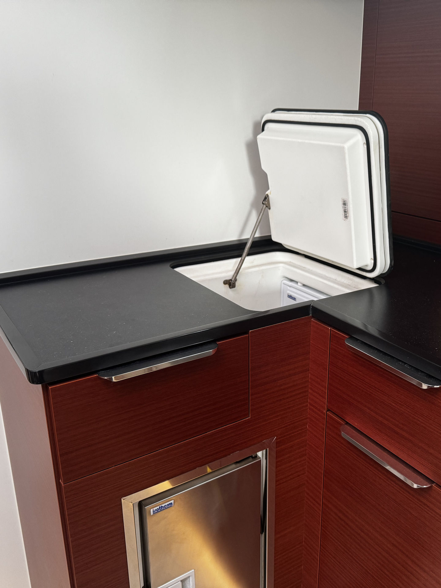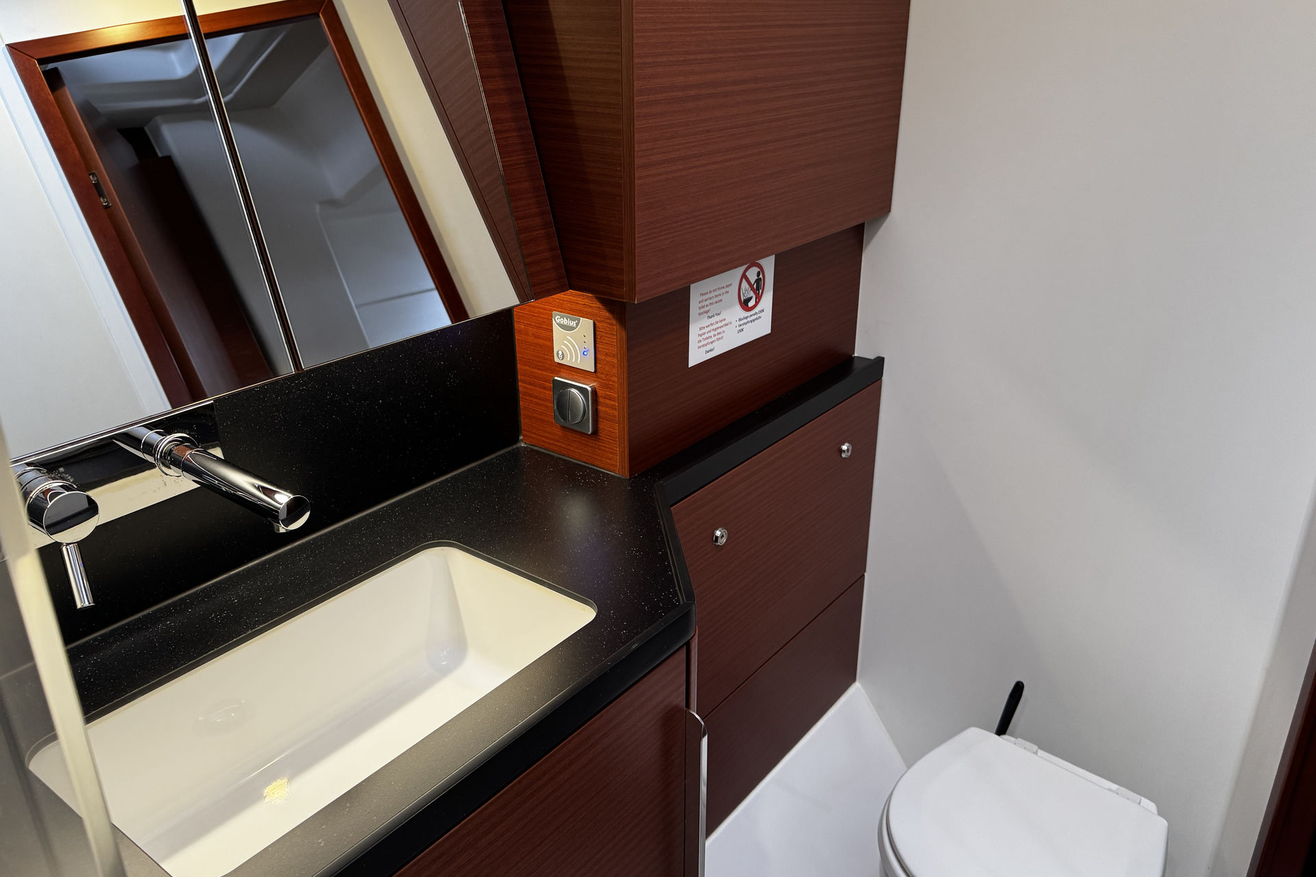 | Inside | 12V/220V sockets, 2nd refrigerator, Oven, Pressurised water, Gas oven, Heating, Inverter 12V/220V, Refrigerator, Battery charger, HiFi Speaker in saloon and cockpit, Pantry equipment, Radio, Radio with USB and Bluetooth, Safe for valuables, Sink, TV, USB Socket, Warm water, WC (electr.) |