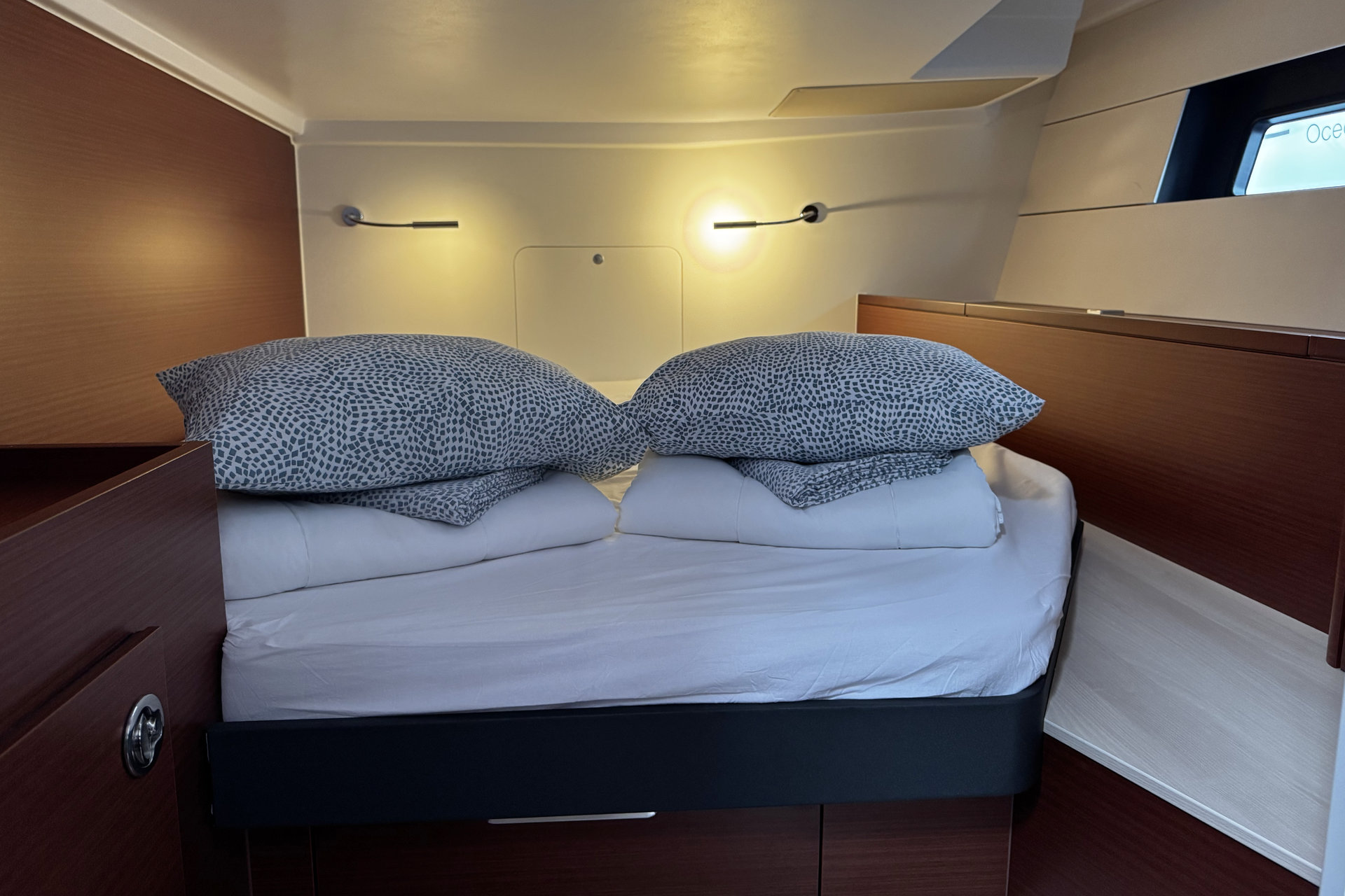 Die Ausstattung der Yacht war z.T. sehr gut (so war bspw. eine Handfunke und zwei Kugelfender an Bord), teilweise jedoch auch verbesserungsfähig (keine EPIRB, keine Mückenschutzgitter an den Luken, etc.). Hier sollte nachgebessert werden. Technischer Zustand der Yacht sehr gut, selbst Kleinigkeiten wurden - sofern möglich - sofort behoben. Einmal das Serviceteam angesprochen, das war ausreichend. Man musste nicht alles zehnmal sagen und dann stundenlang warten! Top-Leistung des Vercharterers, sehr netter und professioneller Kontakt.