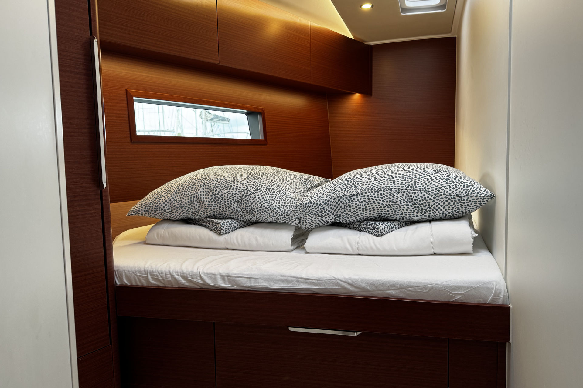 | Safety | AIS receiver, Automatic life jackets, Autopilot, Lightning buoy, Sailor's knife, Bosun's chair, Tools, Bowthruster, Electr. bilge pump, Fire axe, Fire extinguisher, Flags, Manual bilge pump, Navigational lights, Fog horn, Emergency tiller, Distress signals, Rescue collar, Torchlight, VHF Radio |