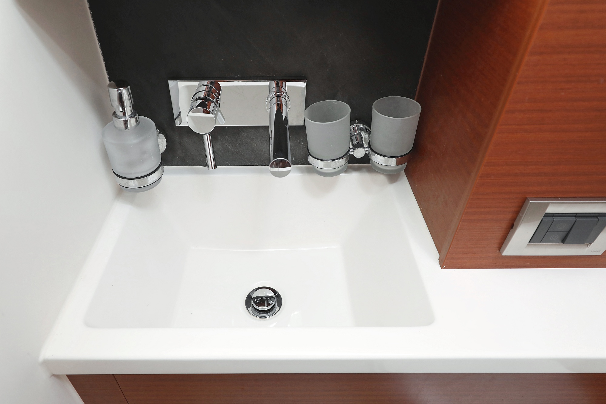 | Outside | Bathing platform, Bimini top, Cockpit shower, Cockpit speakers, Cockpit table, Electr. main sail winch, Sprayhood, Teak in cockpit |