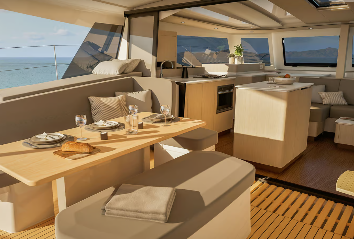 | Inside | Clock, Heating, Inverter 12V/220V, Dock A/C 220V (cool&heat), fridge and freezer, Slatted frame, Dinghy (byboat) pump, Pantry equipment, Radio, Convertible salon table, fans in cabins |