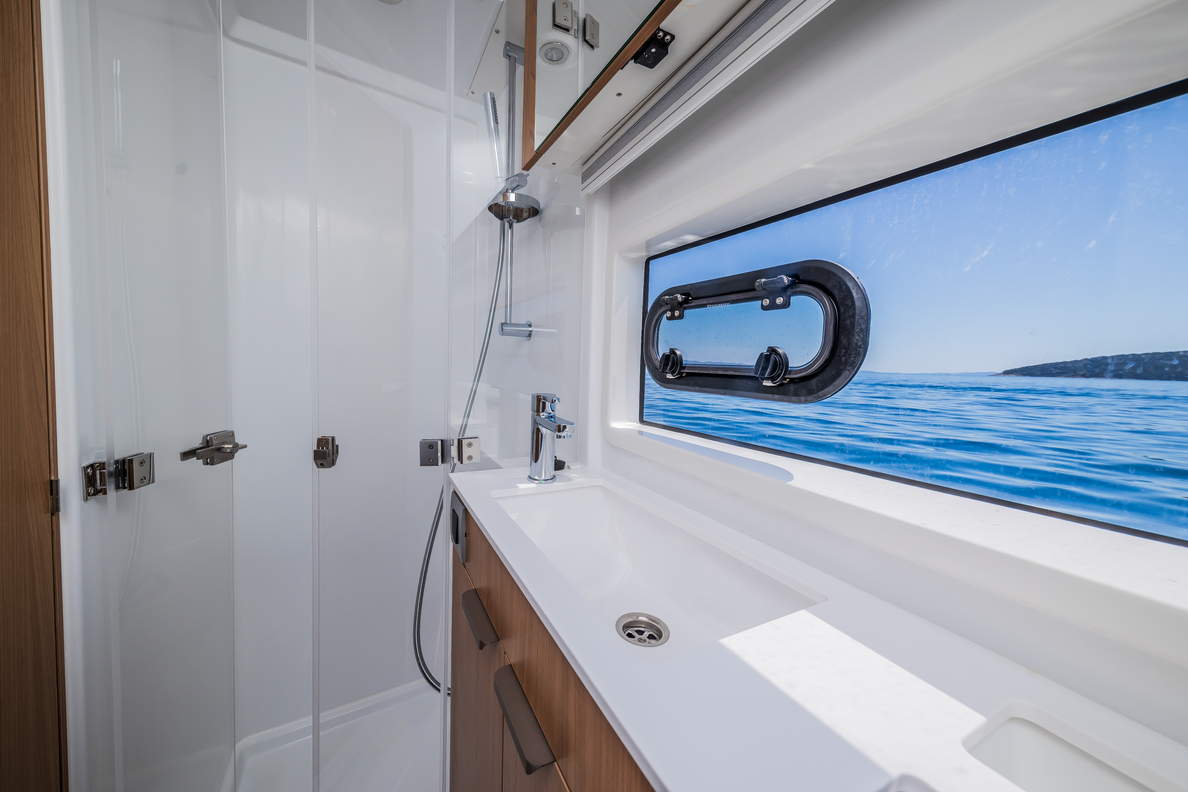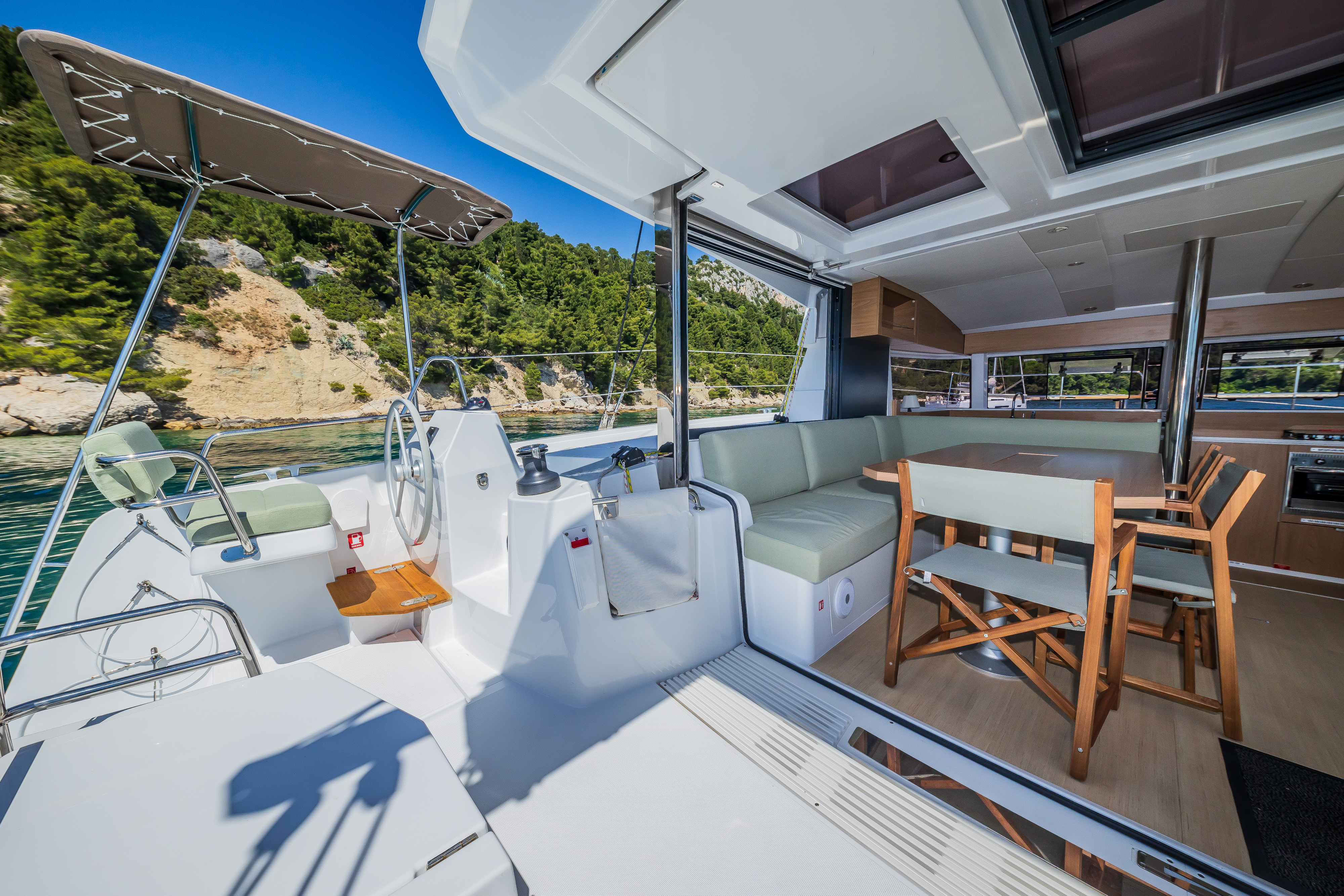 | Outside | Bathing platform, Bimini top, Cockpit shower, Cockpit speakers, Cockpit table, Solar panels |