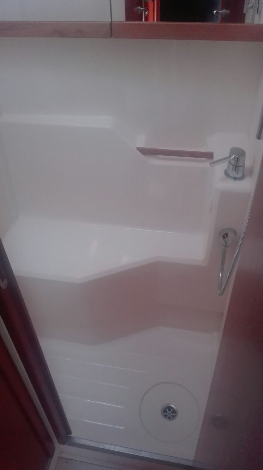 | Outside | Anchor with chain, Anchor winch, Bathing platform, Bimini top, Boat hook, Cockpit shower, Cockpit speakers, Cover brush, Jerry cans for diesel, Electr. anchor windlass, Fender, Anchor winch remote control, Gangway, Plastic bucket, Sprayhood, Canister for water, Water hose, Windex |