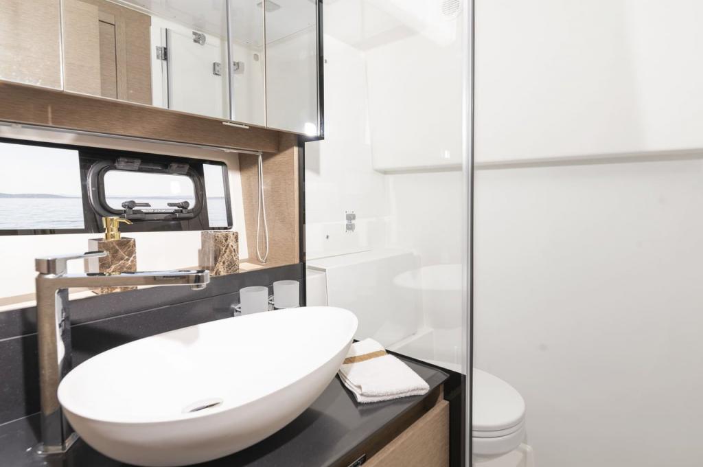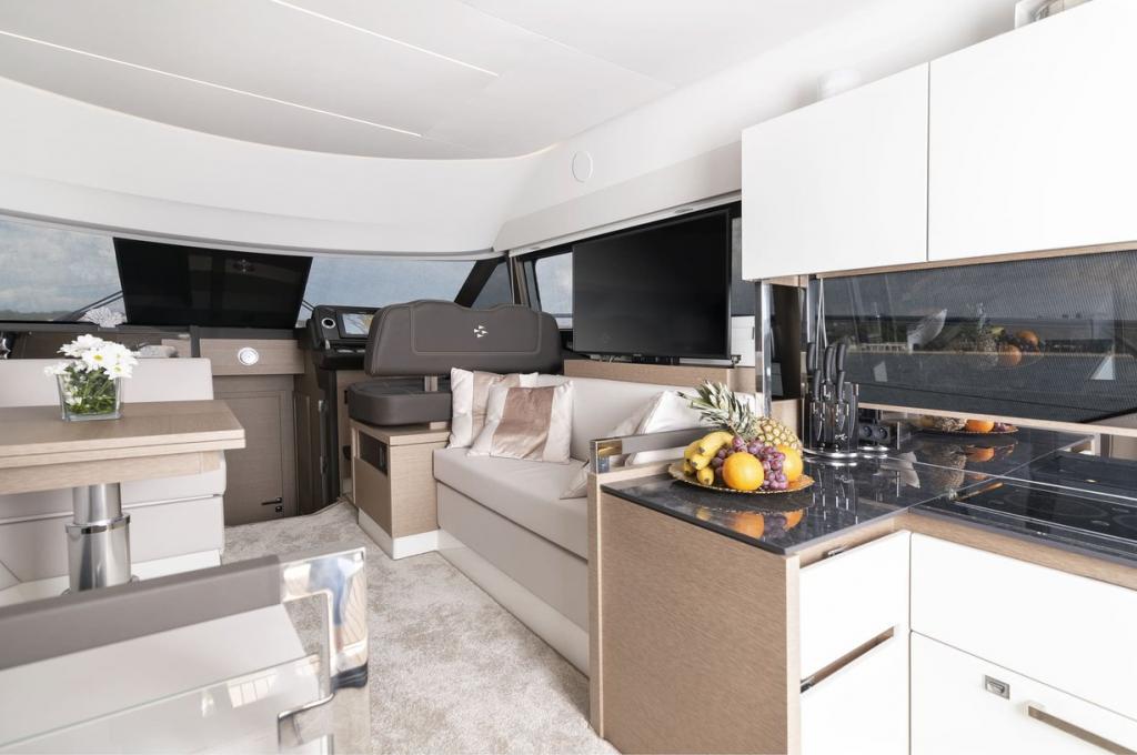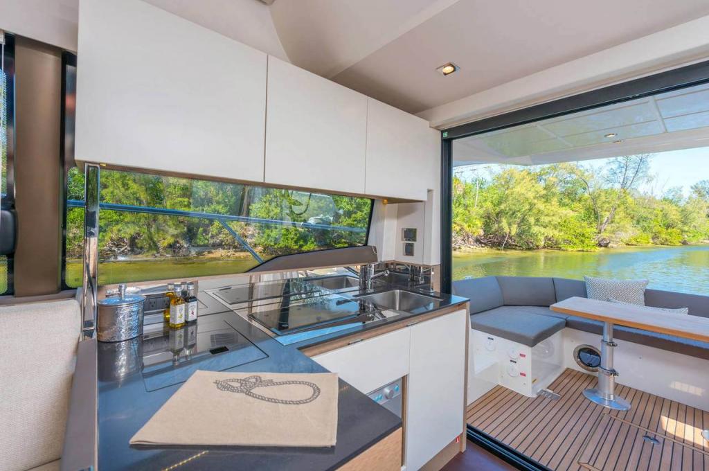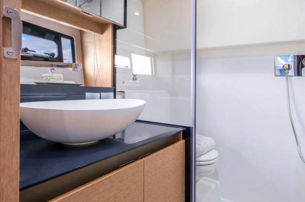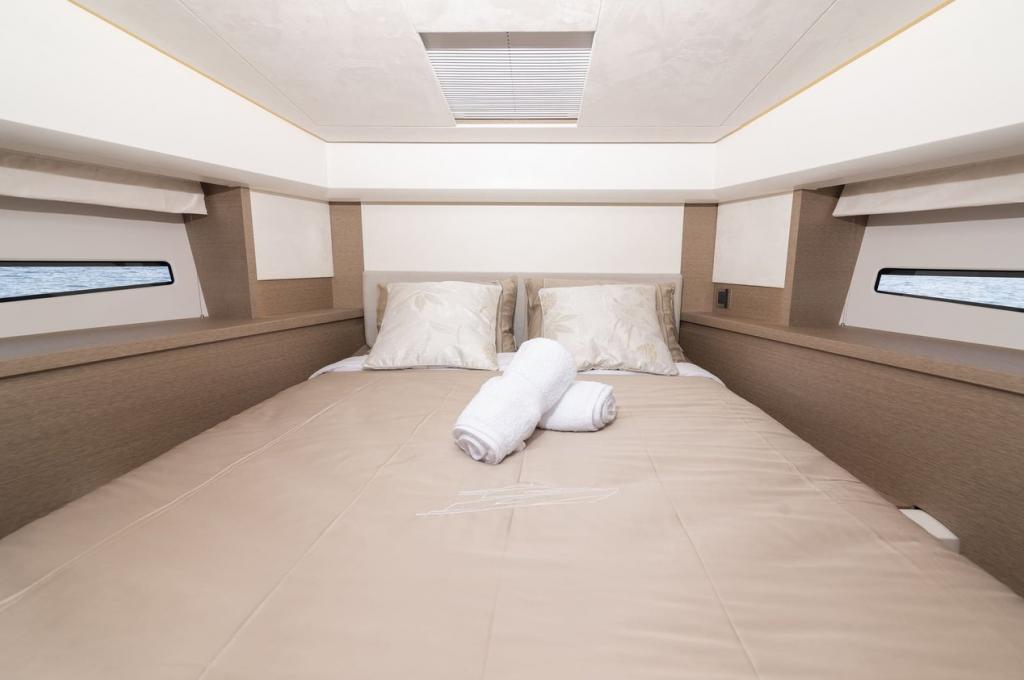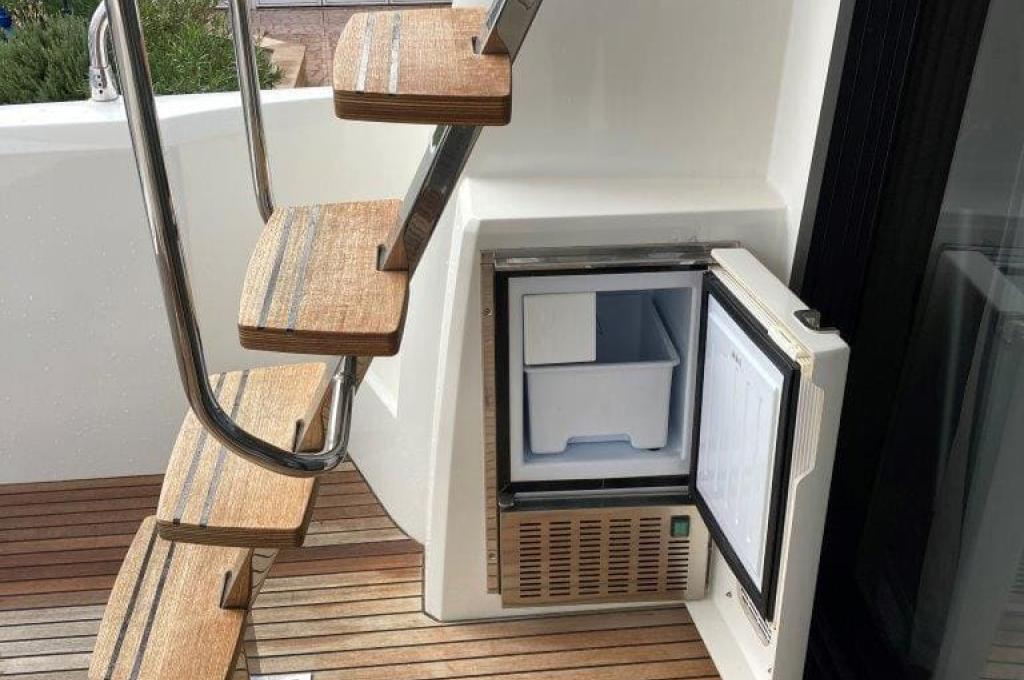 | Inside | Black water tank, Generator, Coffee machine, Airconditioning (independent from shore power), Refrigerator, Battery charger, LCD TV and DVD player, Pantry equipment, Radio CD player with USB and Bluetooth, Convertible salon table, Warm water, Watermaker |
