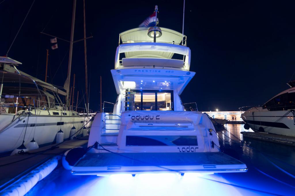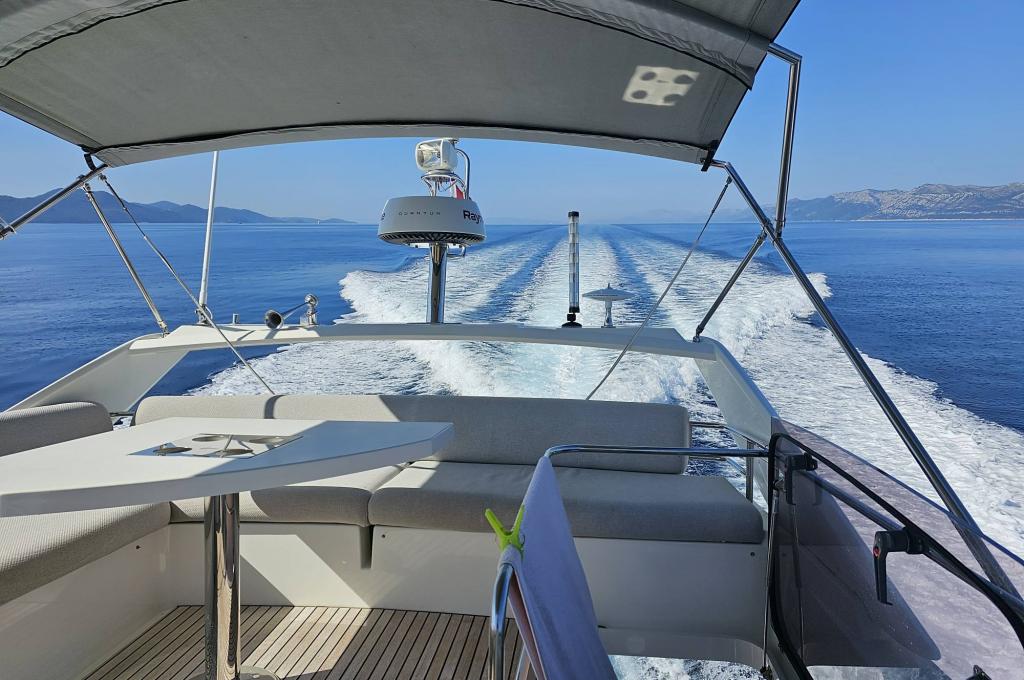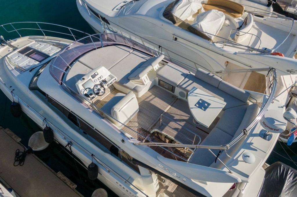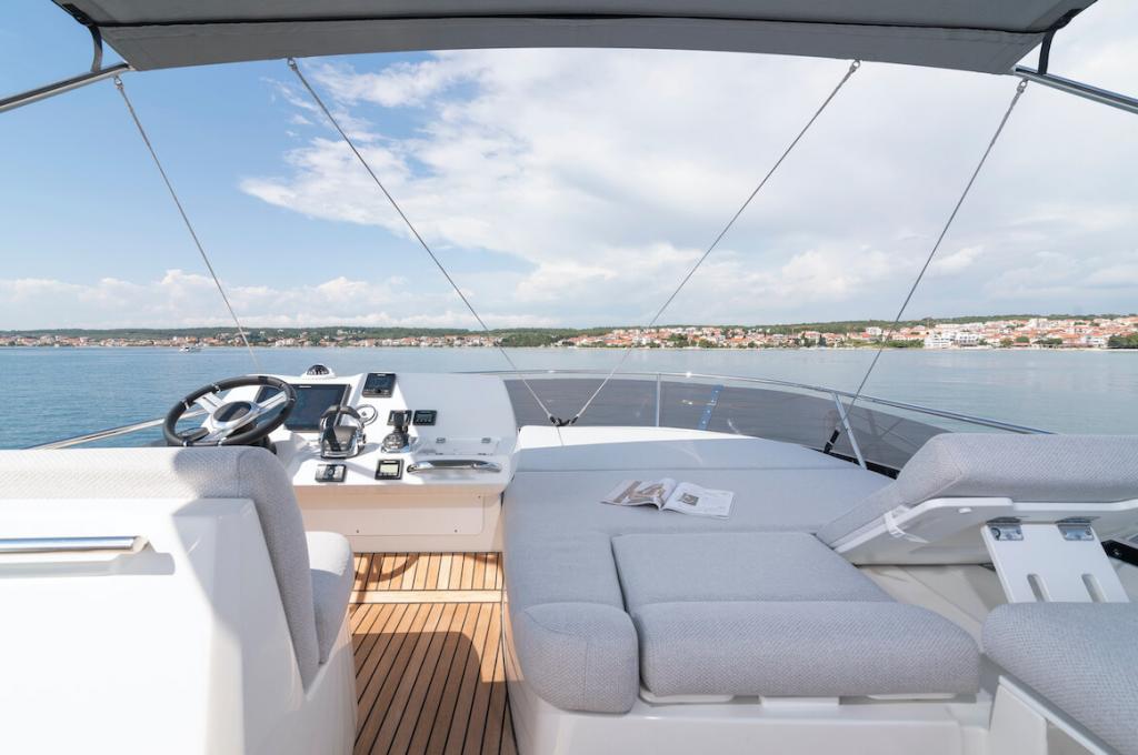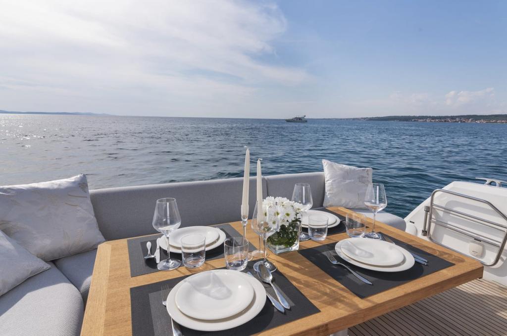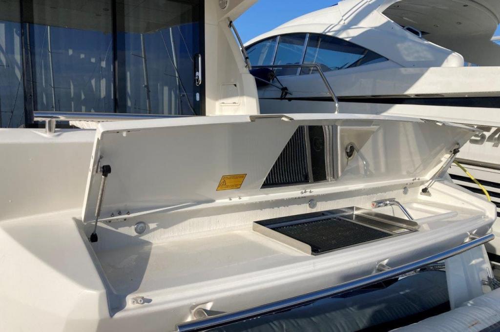 | Outside | 220V shore connection, Anchor with chain, Bathing ladder, Bimini top, Cockpit speakers, Cockpit cushions, Cockpit table, Gangway, BBQ, Cushions for flybridge, Teak in cockpit, LED submarine lights |