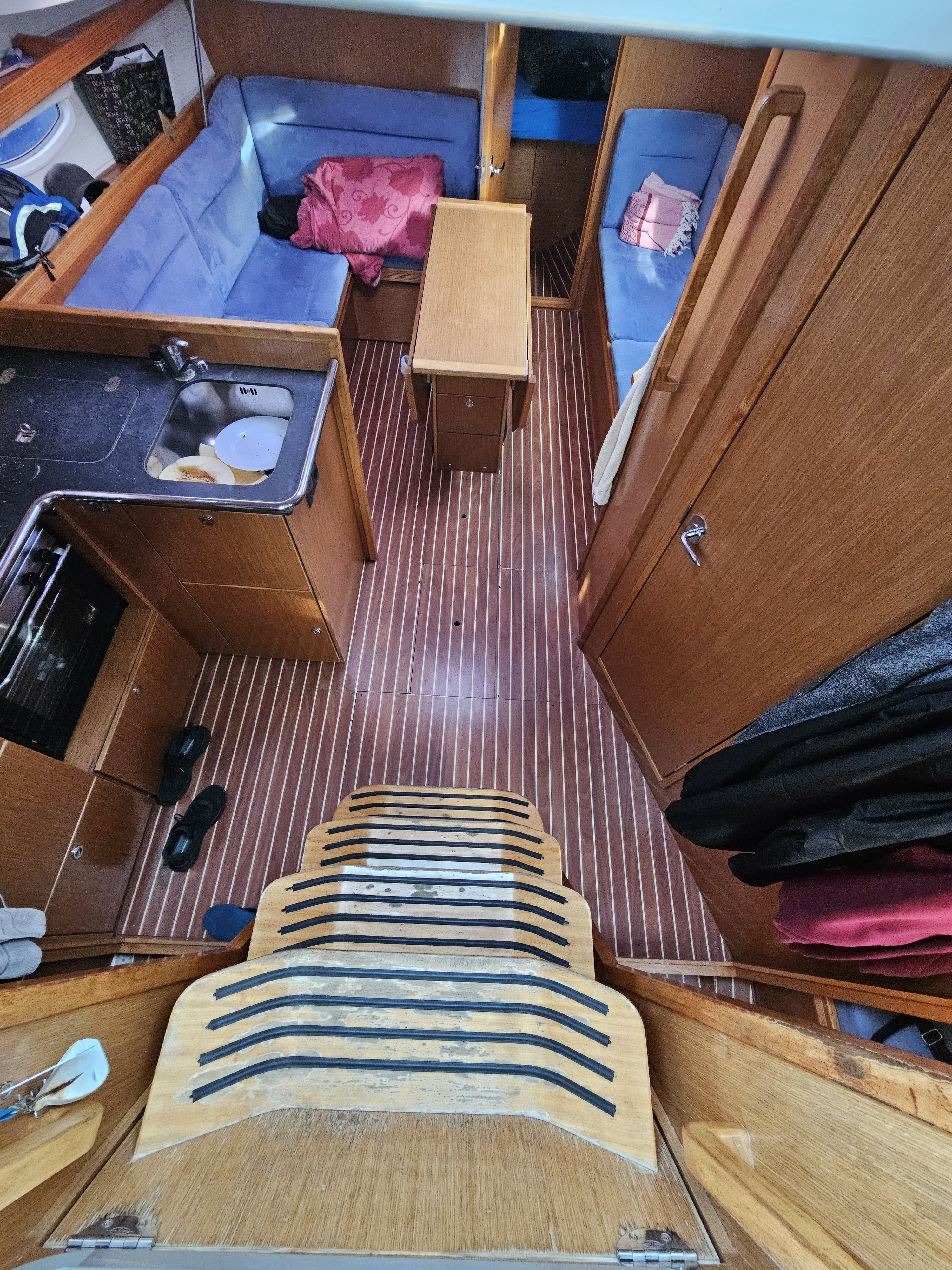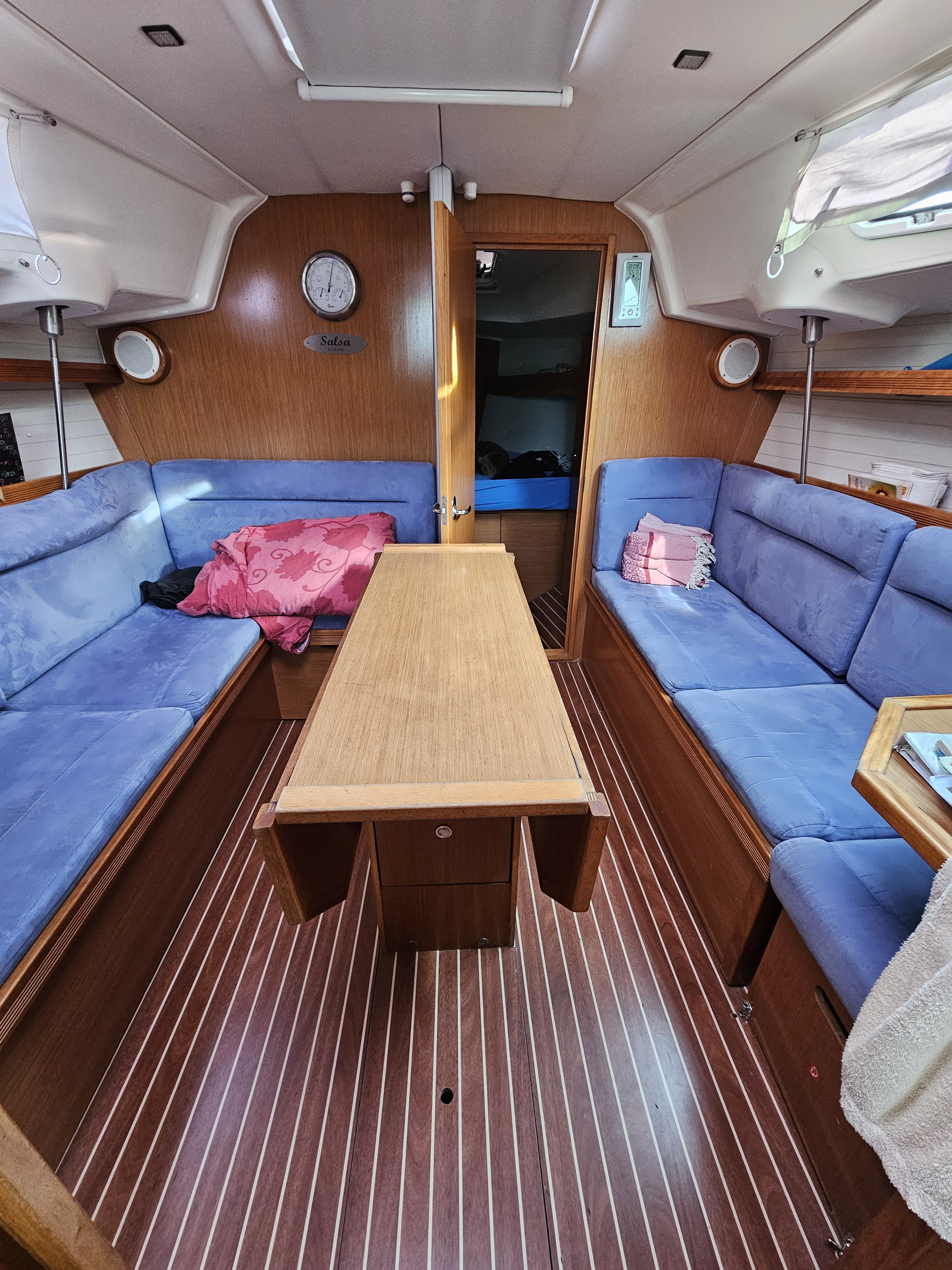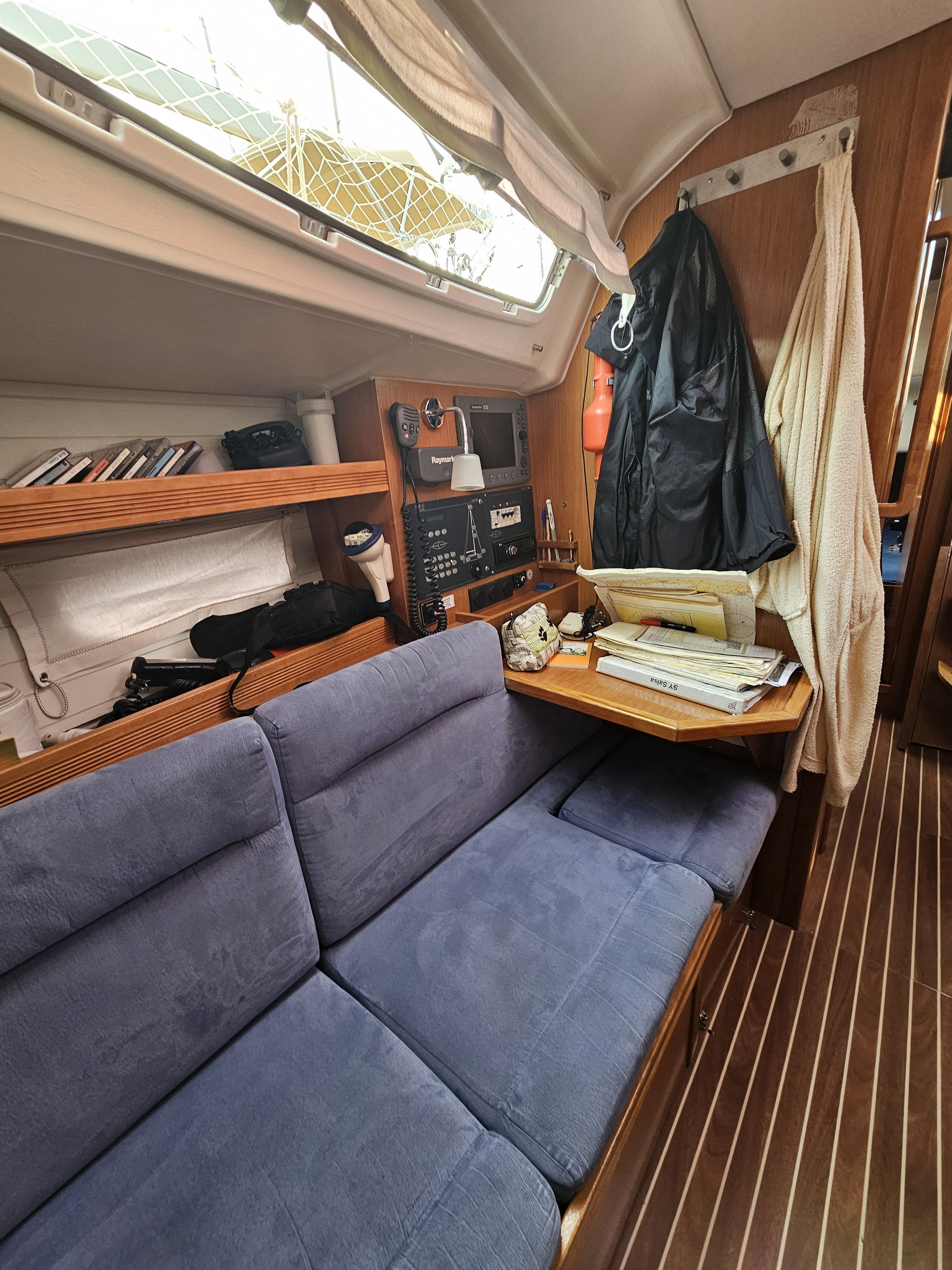 | Navigation | Barometer, Echo sounder, Binoculars, GPS with chart plotter in salon, Harbour books, Hand bearing compass, Navigation set, Radar, Nautical charts, Steering compass, Log, Depth + Speed instruments, Tridata (Log, Echosounder, Windm.), Anemometer |