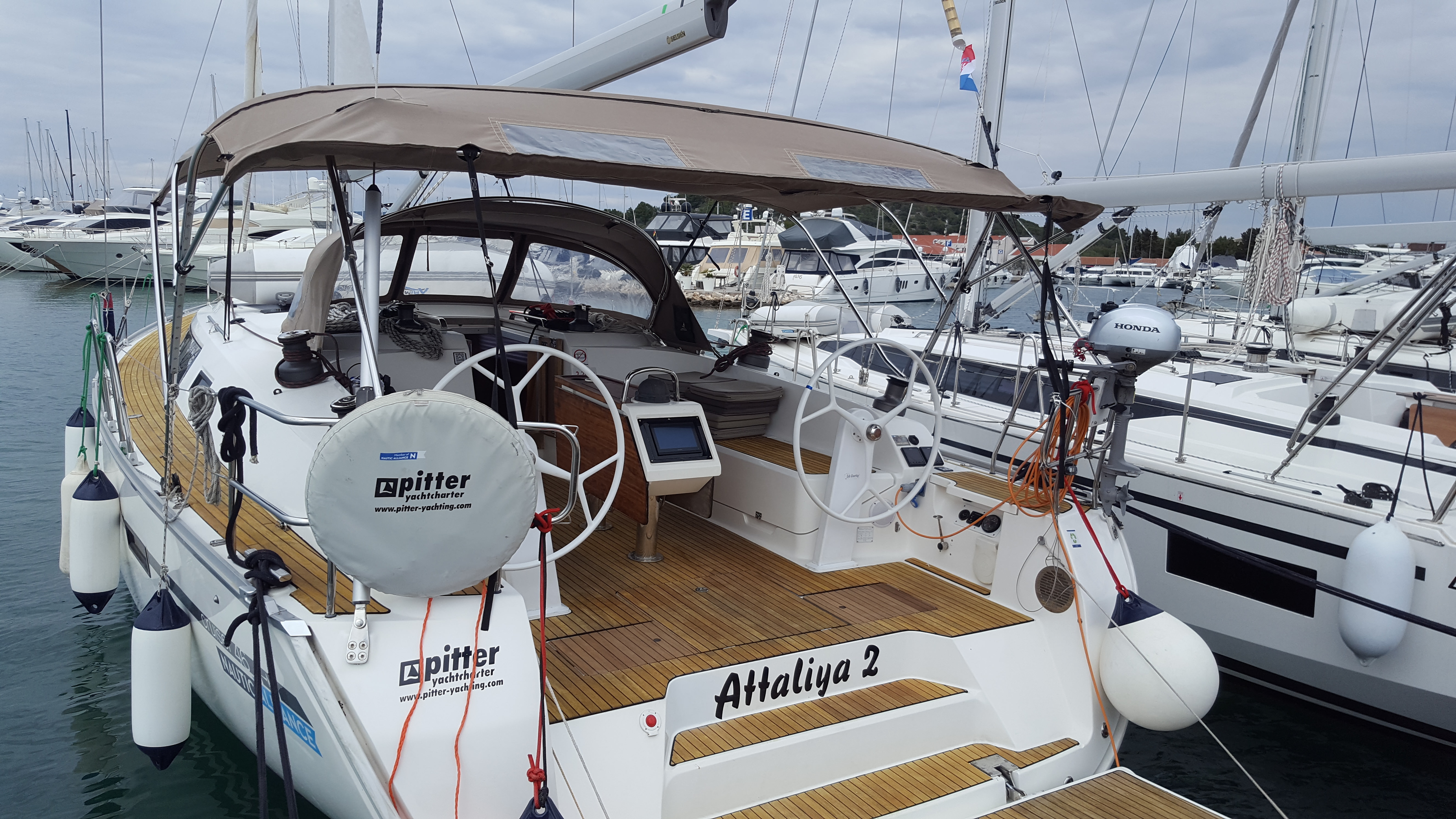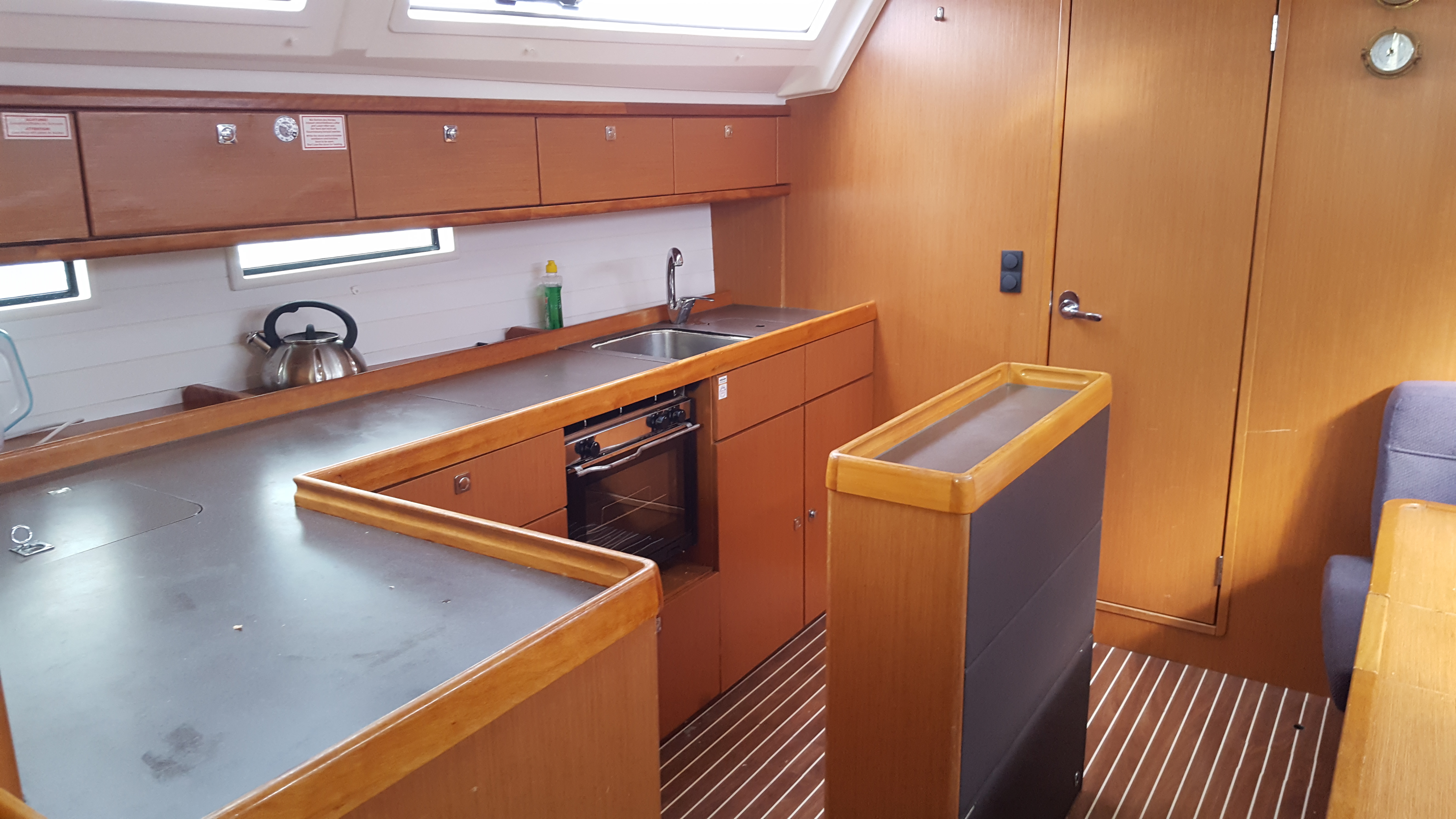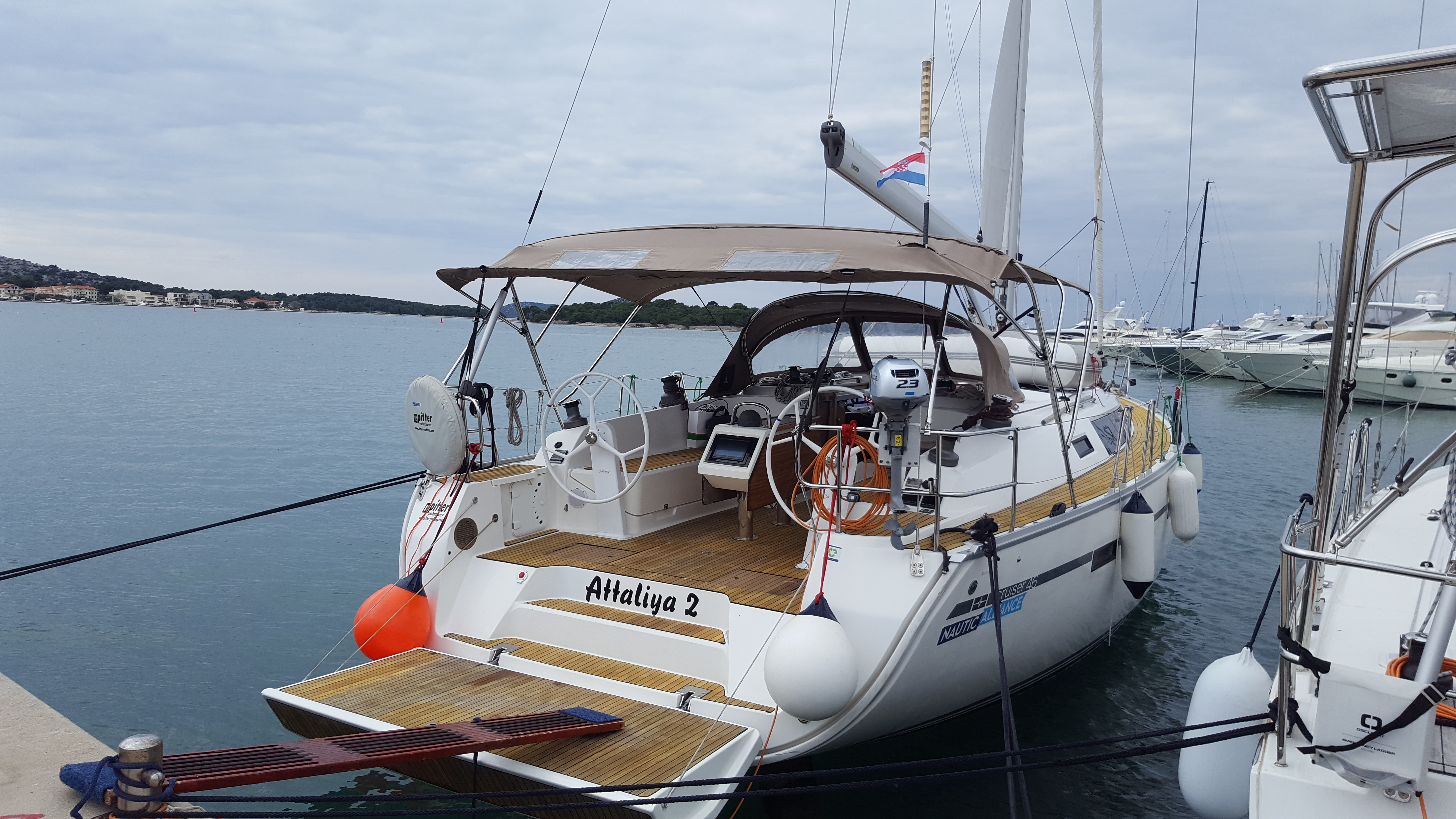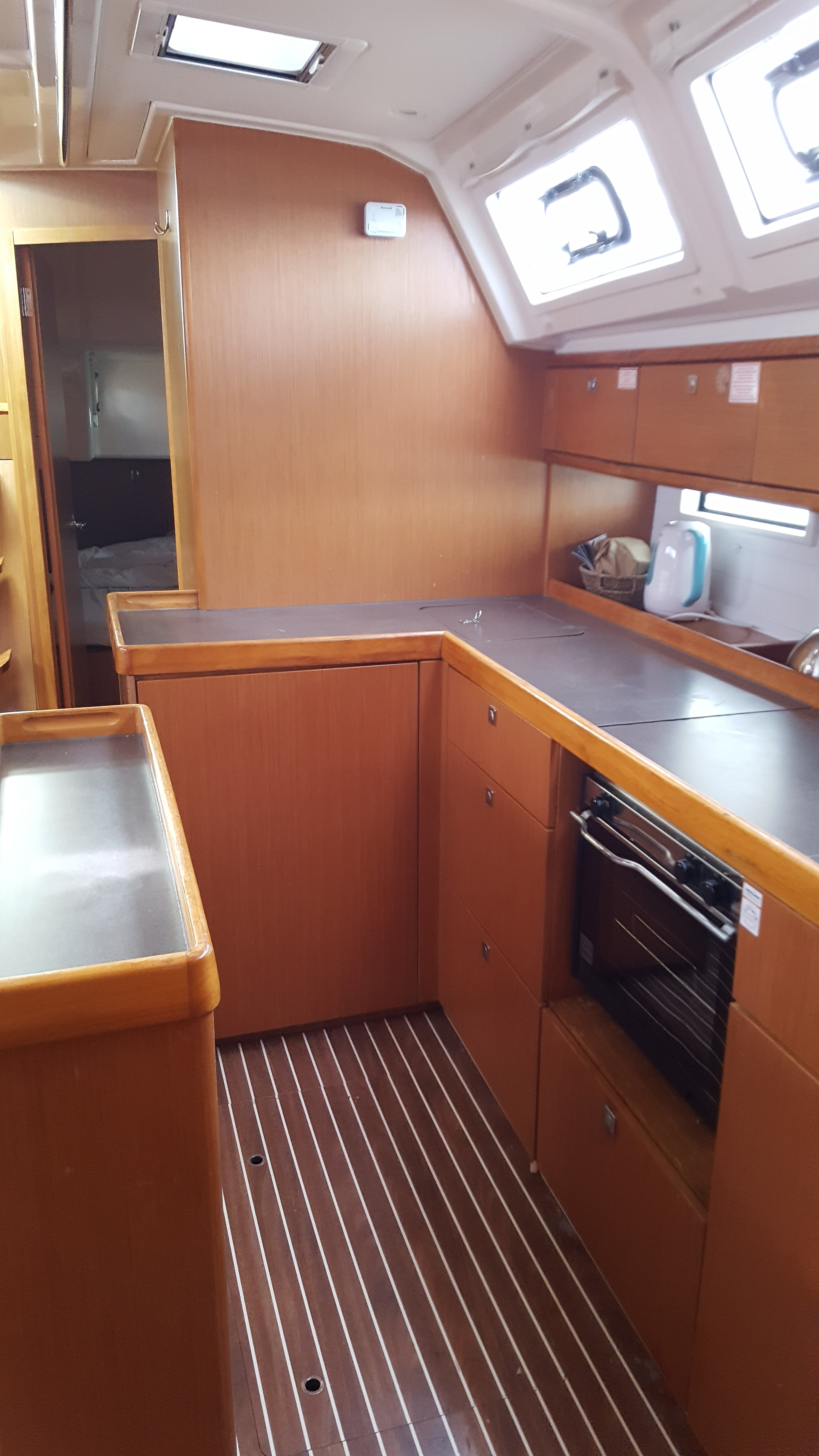 | Safety | Automatic life jackets, Autopilot, Lightning buoy, Bosun's chair, First aid kit, Tools, Bowthruster, Fire extinguisher, Lifebelts, Engine spare parts , Fog horn, Distress signals, Radar reflector, Repair box for dinghy, Life raft, Safety equipment, Searchlight, Torchlight, VHF Radio, Second anchor |