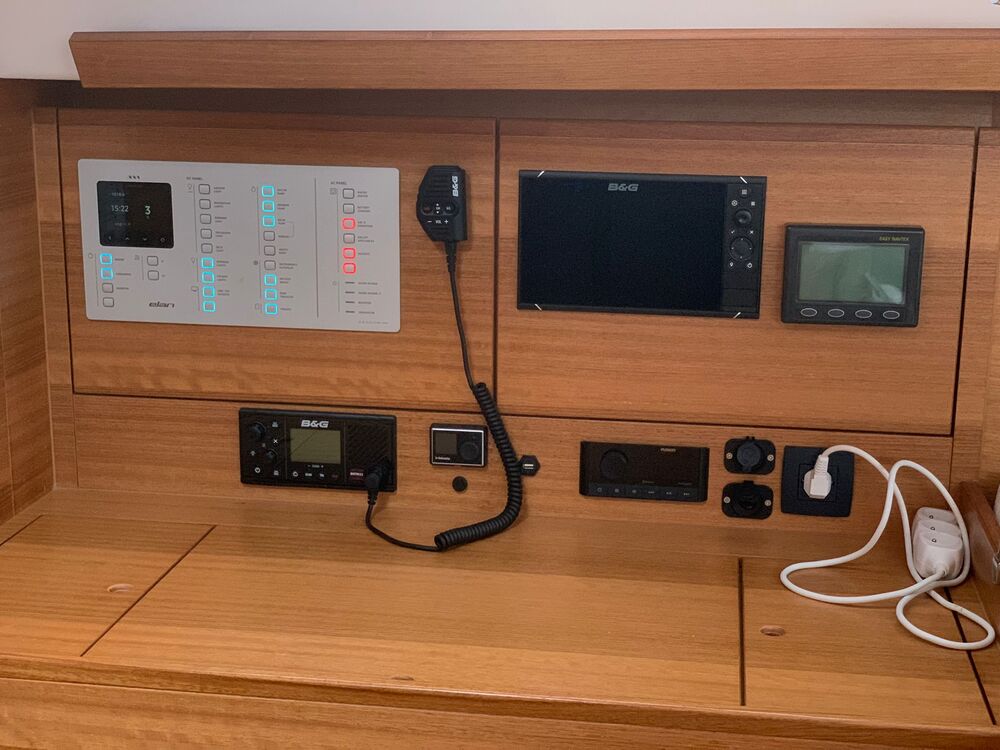 | Safety | AIS receiver, Autopilot, First aid kit, Bowthruster, Solid life vests, Fire extinguisher, Life jackets, Safety equipment, VHF Radio, Second anchor |