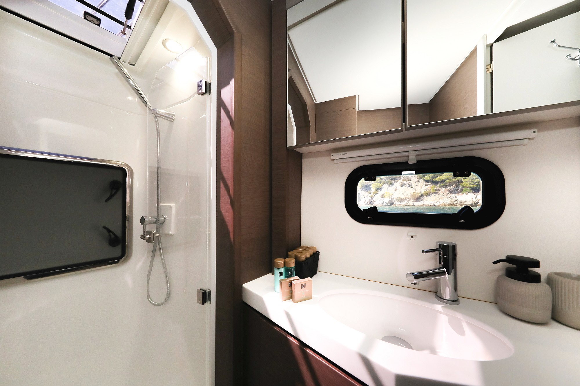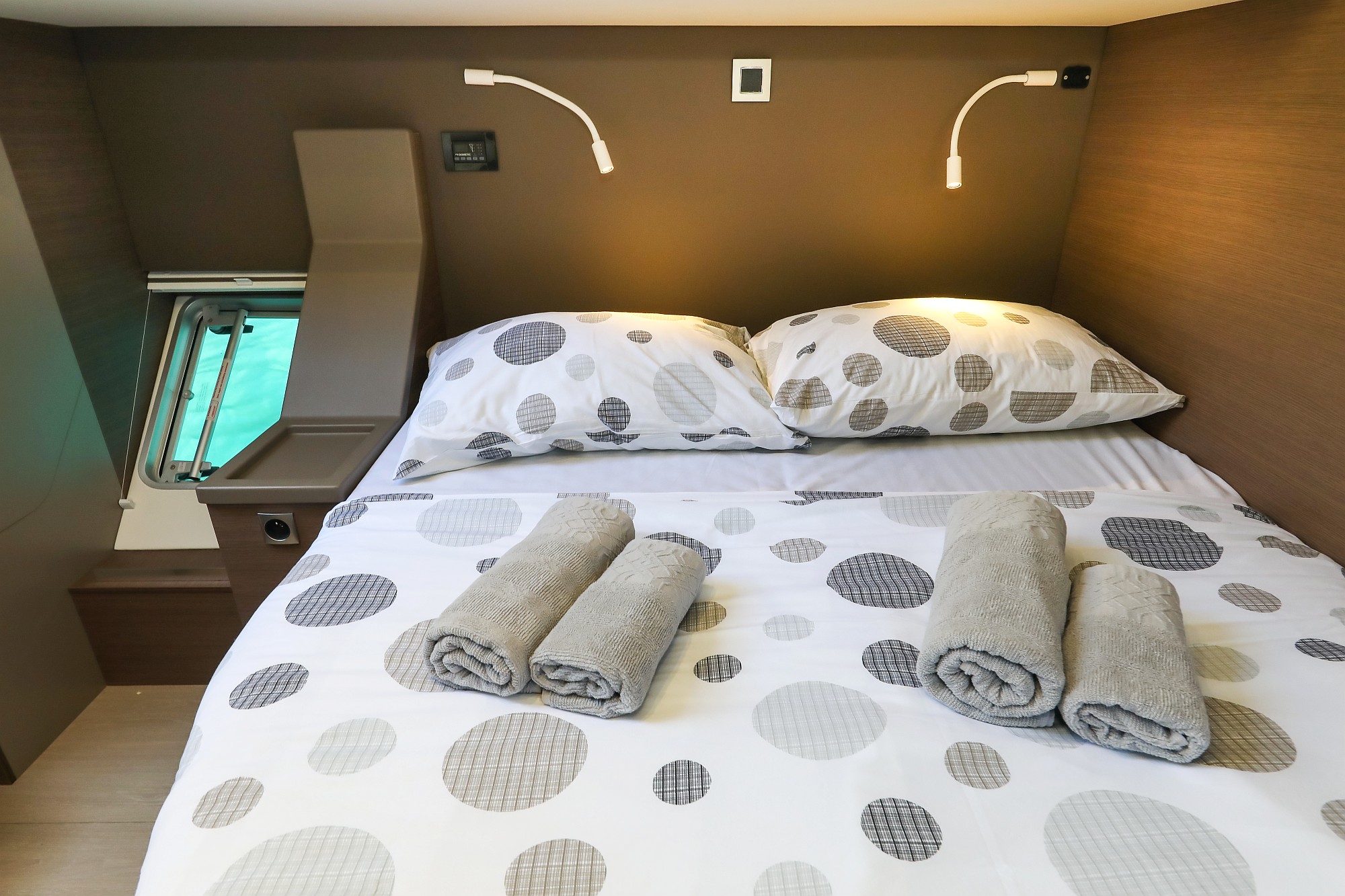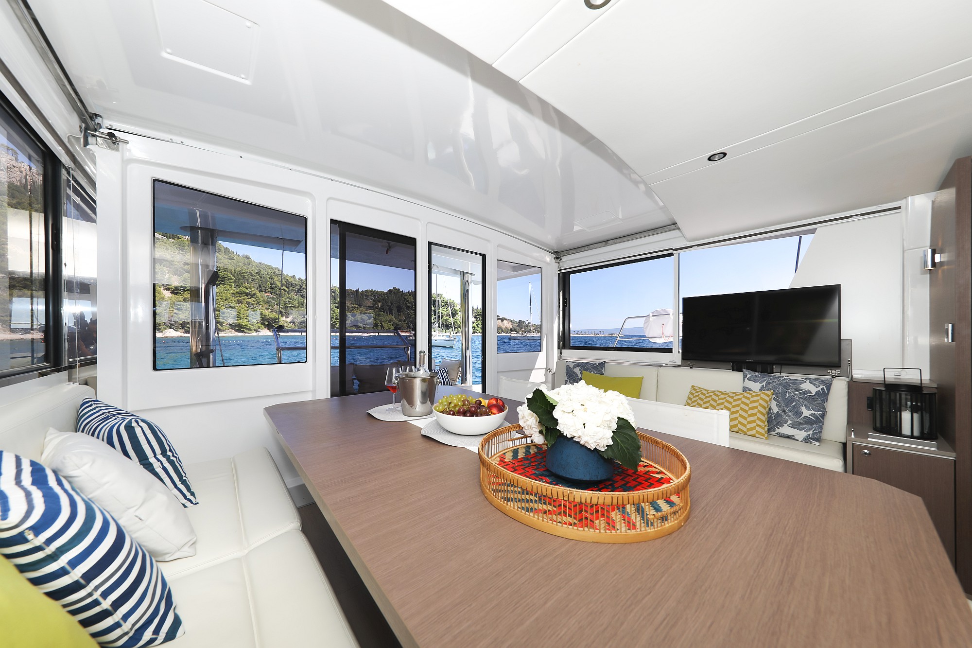 | Inside | Ice cube machine, Gas stove with oven, Freezer, Generator, Heating, Inverter 12V/220V, Coffee machine, Airconditioning (independent from shore power), fridge and freezer, Battery charger, LCD TV, Pantry equipment, Radio with CD player, Warm water, Watermaker |