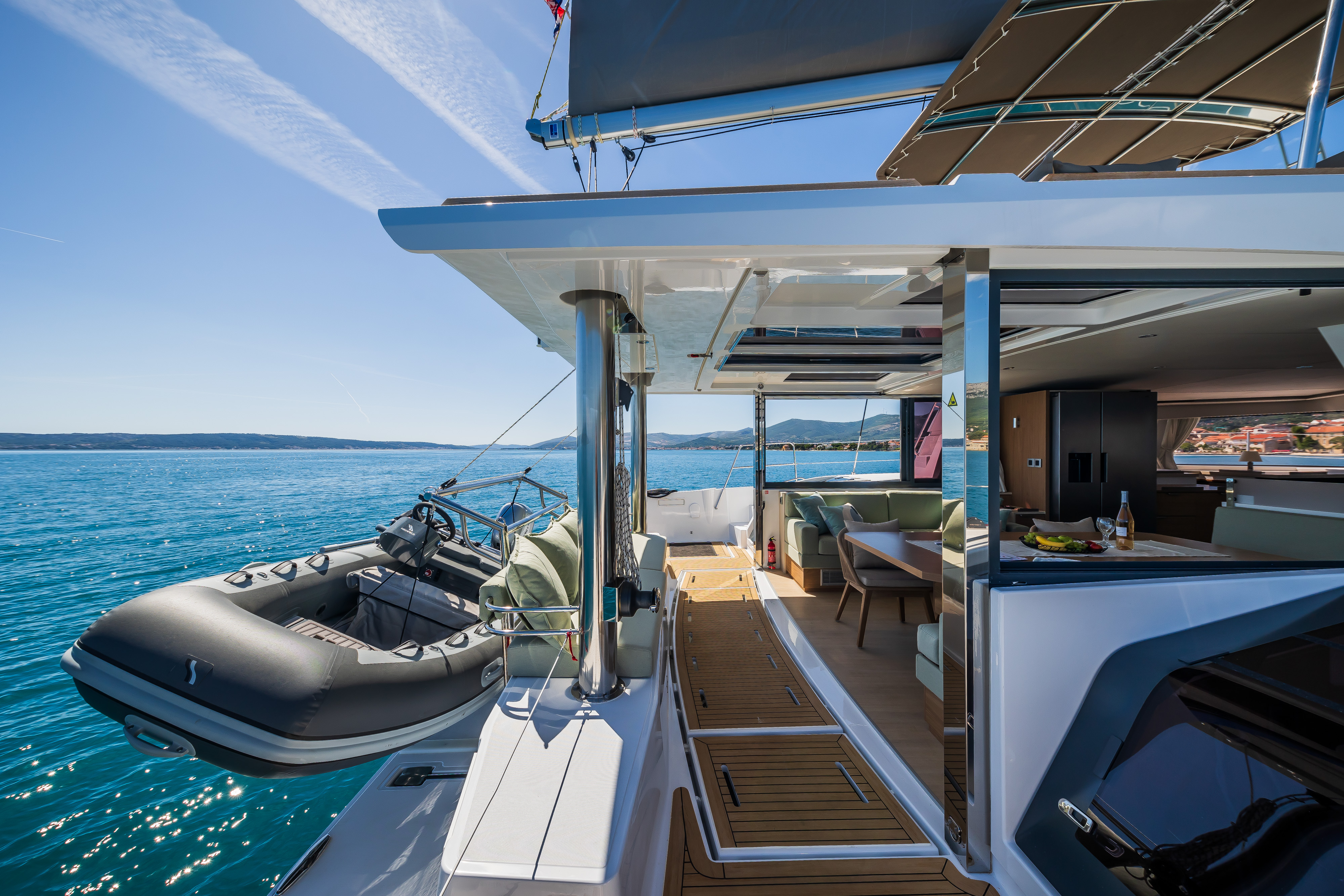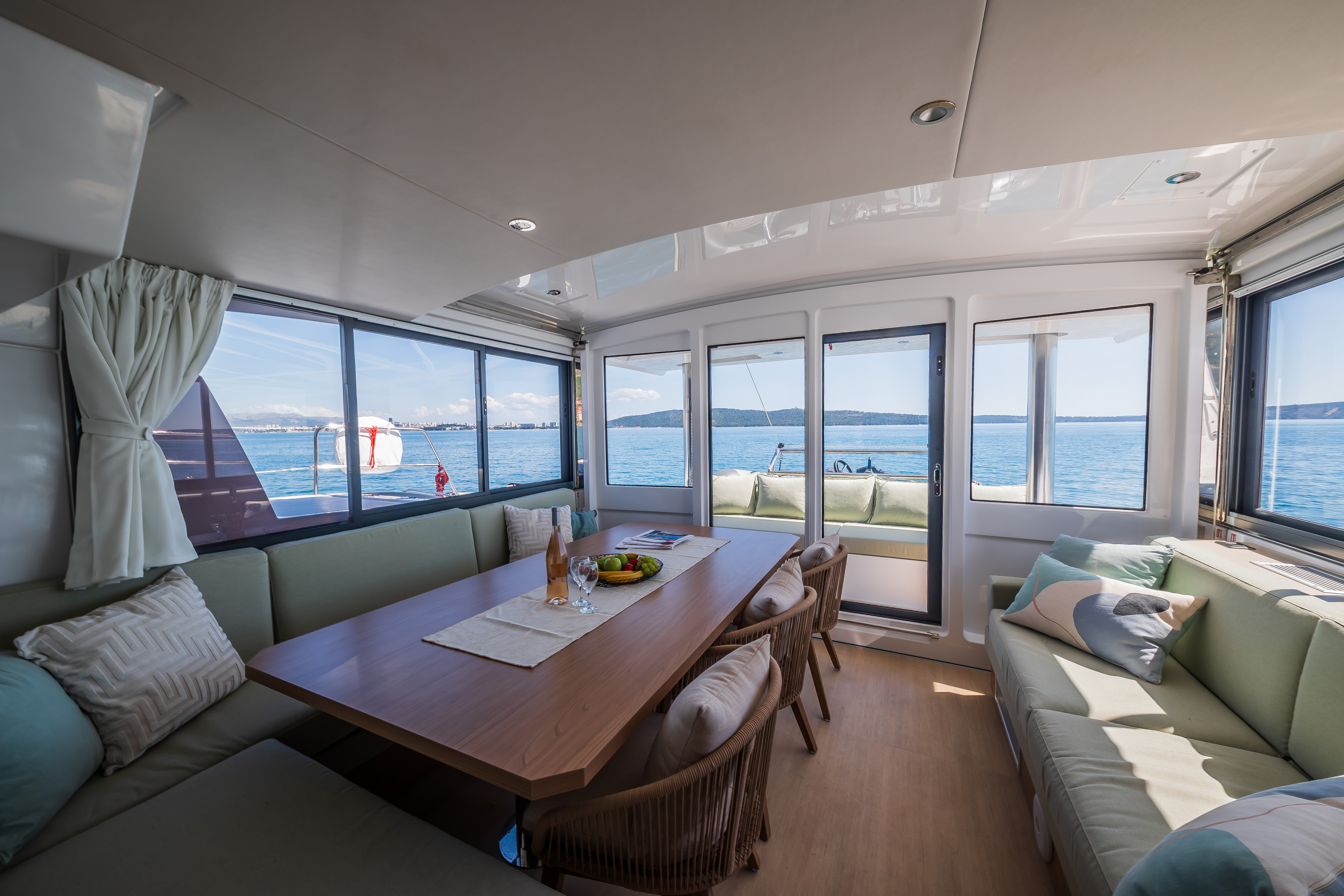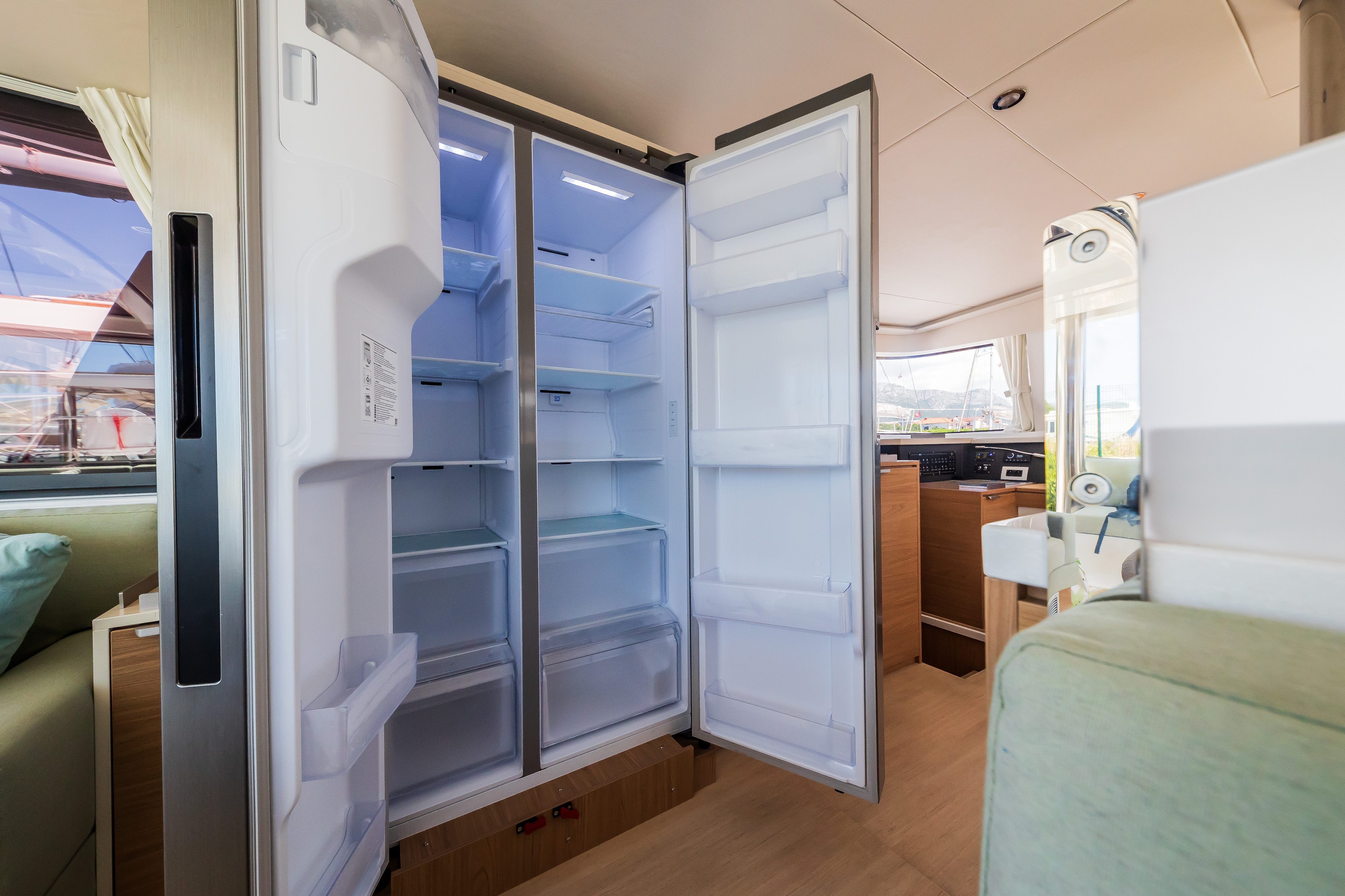 | Inside | Gas oven, Freezer, Generator, Heating, Inverter 12V/220V, Airconditioning (independent from shore power), Refrigerator, Battery charger, Pantry equipment, Radio with CD and MP3, TV, Warm water, Watermaker |