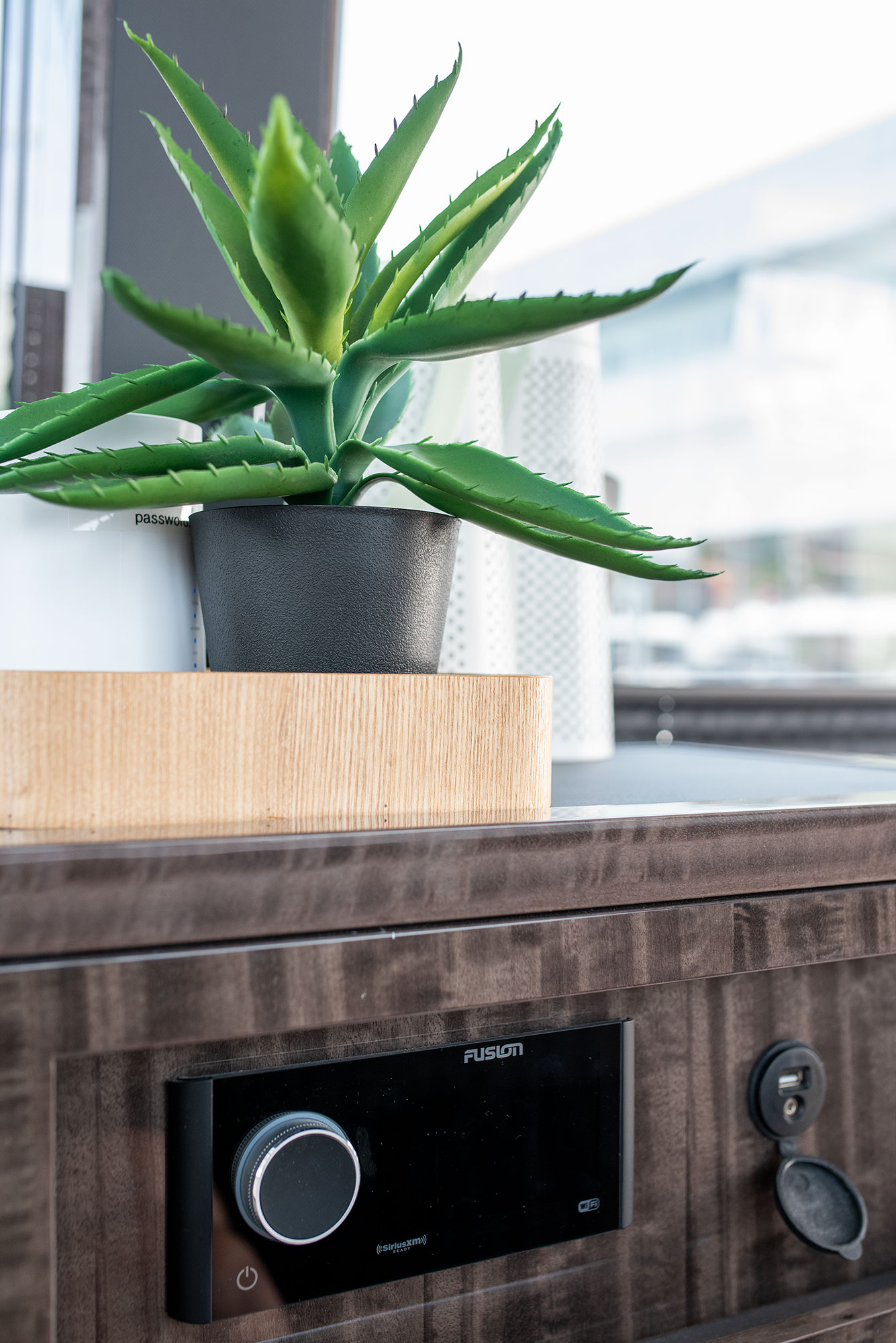 | Inside | 12 V socket, 220V sockets, Bluetooth player, Ice cube machine, Gas stove with oven, Generator, Dishwasher, Heating, Inverter 12V/220V, Coffee machine, Airconditioning (independent from shore power), Battery charger, Microwave oven, Pantry equipment, Radio, Dryer, TV, Warm water, Washing machine, Washing machine and dryer, WC (electr.) |