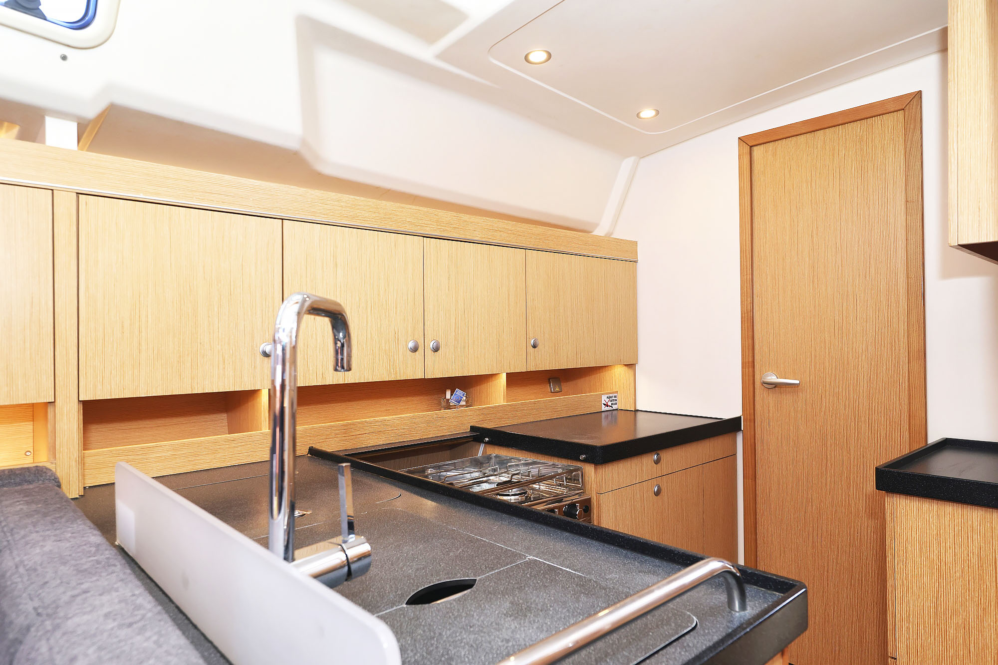| Outside | Bathing platform, Bimini top, Cockpit shower, Cockpit speakers, Cockpit table, Electr. anchor windlass, BBQ, Solar panels, Sprayhood, Teak in cockpit |