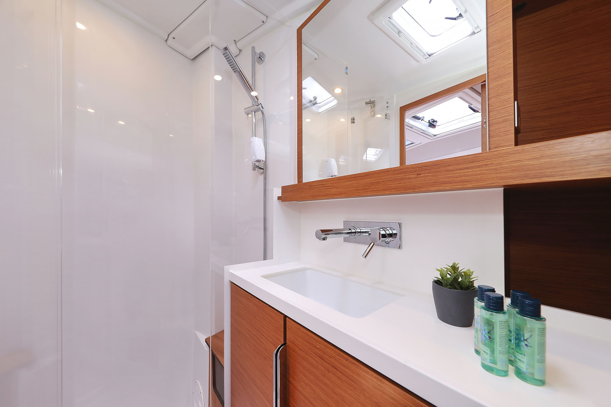 | Outside | Bathing platform, Bimini top, Cockpit shower, Refrigerator in cockpit, Cockpit speakers, Cockpit cushions, Cockpit table, Sprayhood, Teak in cockpit |