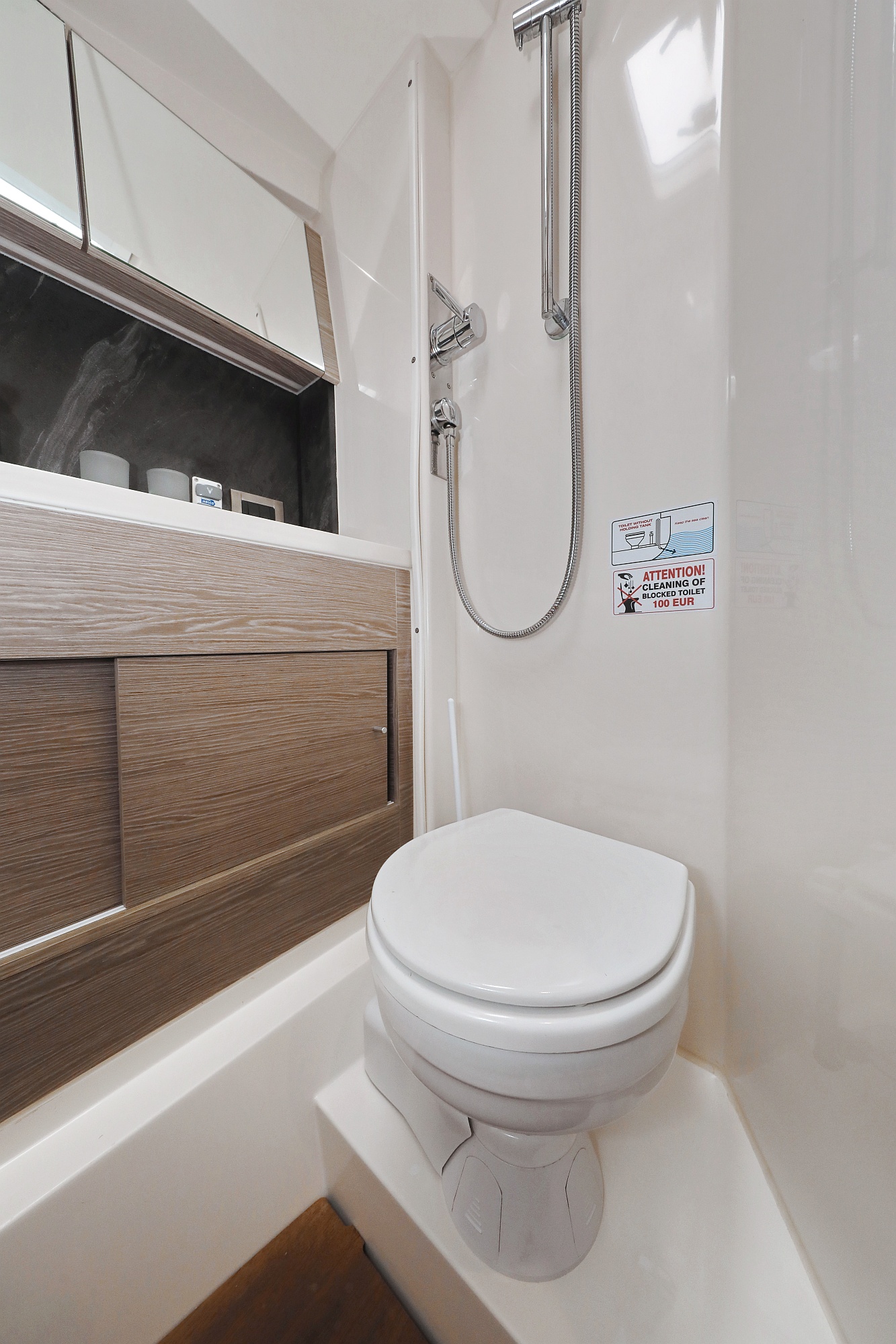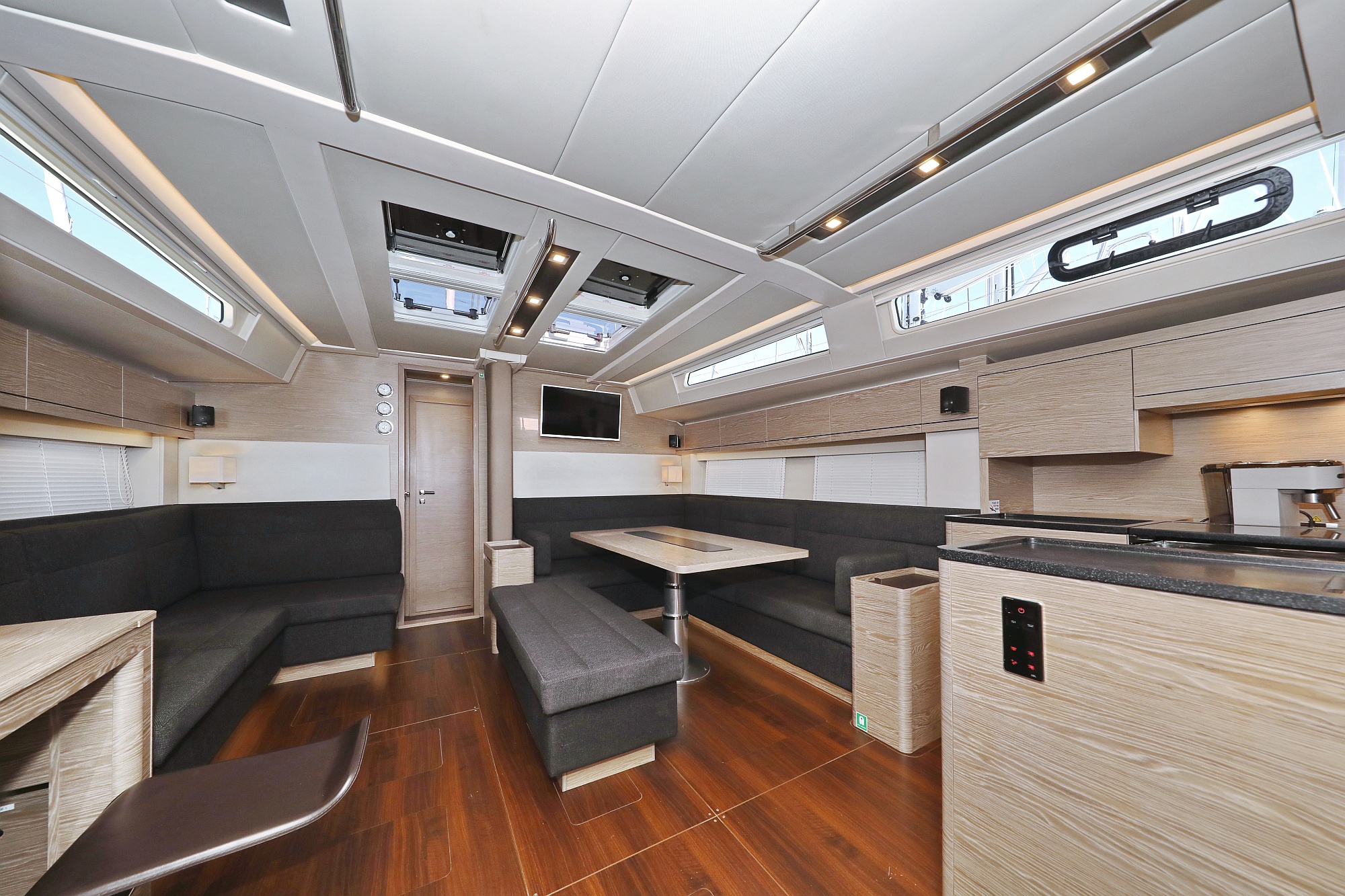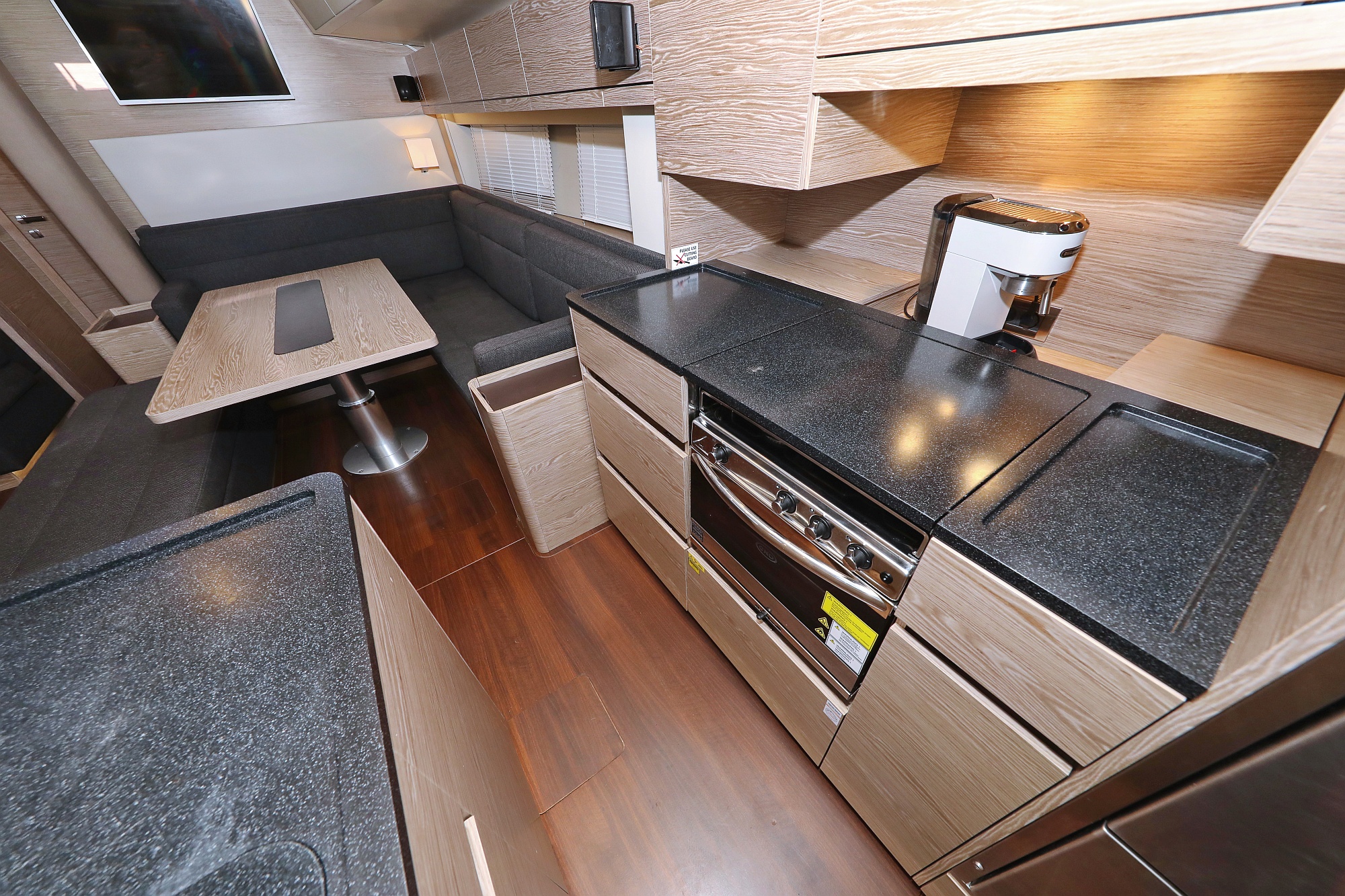 | Inside | Gas stove with oven, Freezer, Generator, Heating, Inverter 12V/220V, Coffee machine, Airconditioning (independent from shore power), Refrigerator, Battery charger, Pantry equipment, Radio with CD, AUX and USB, TV, Warm water, WC (electr.) |