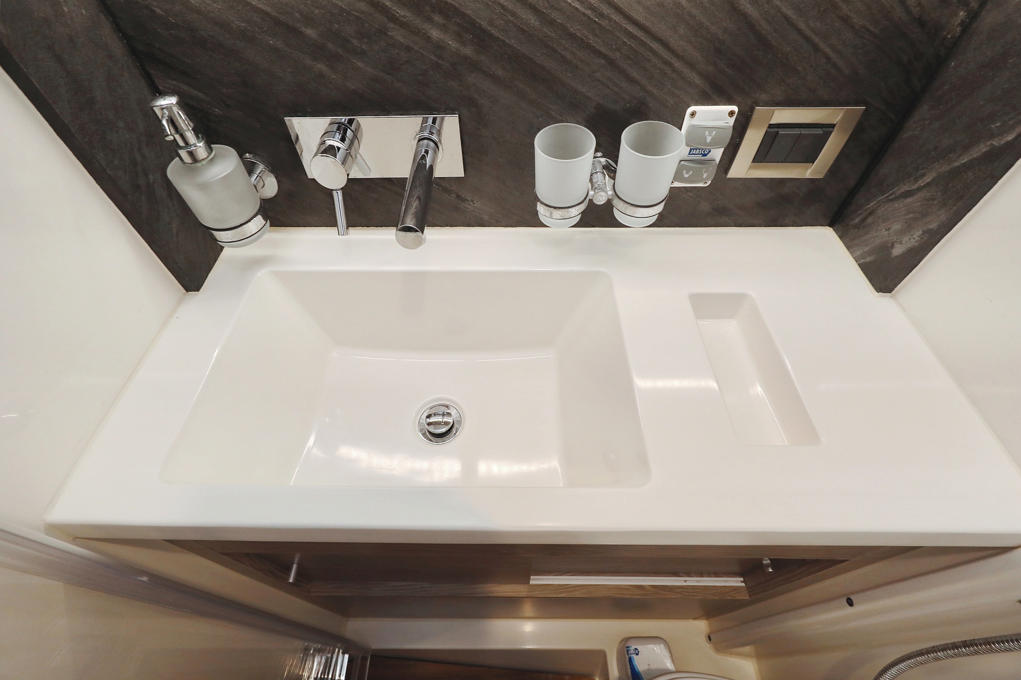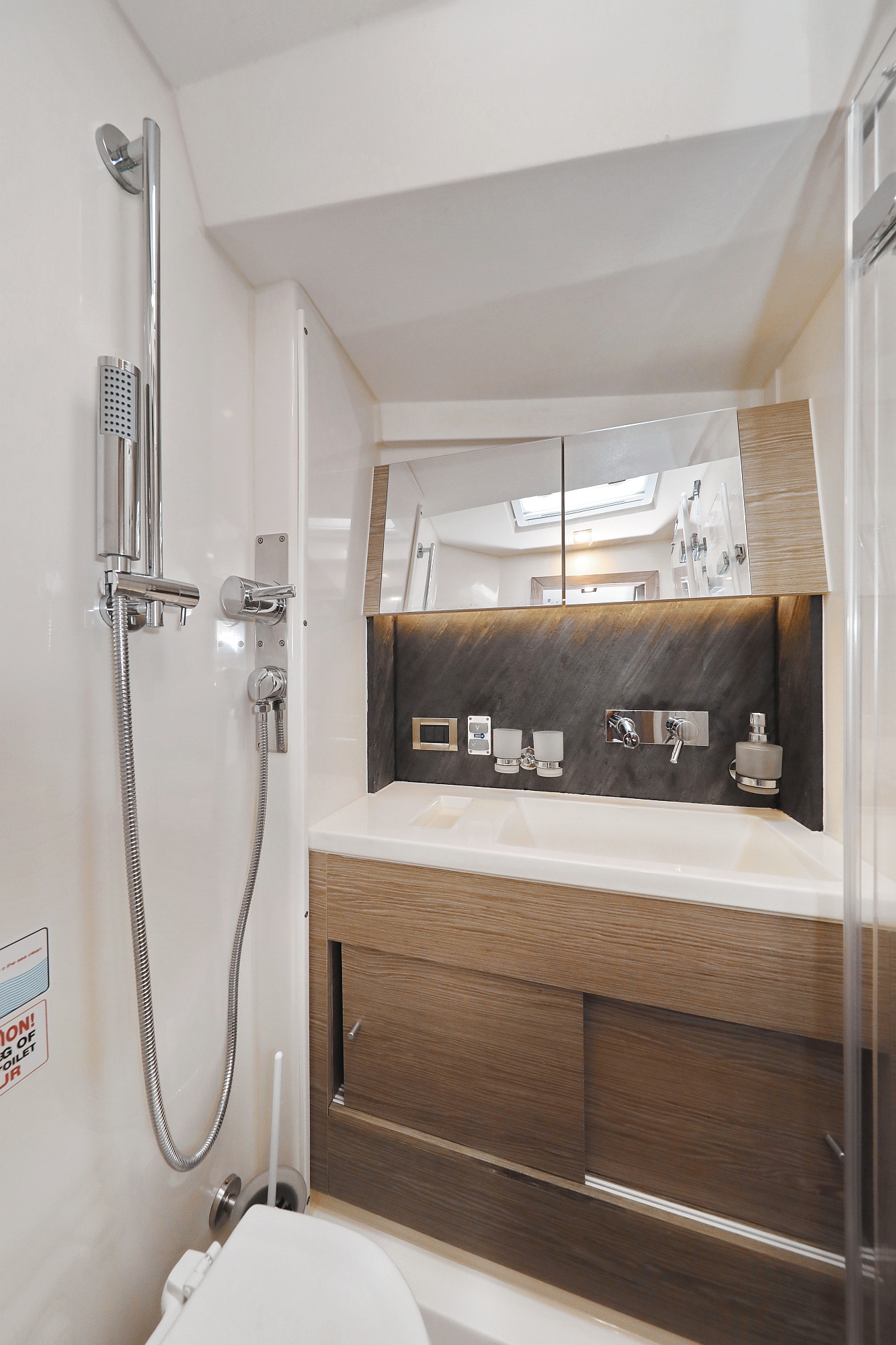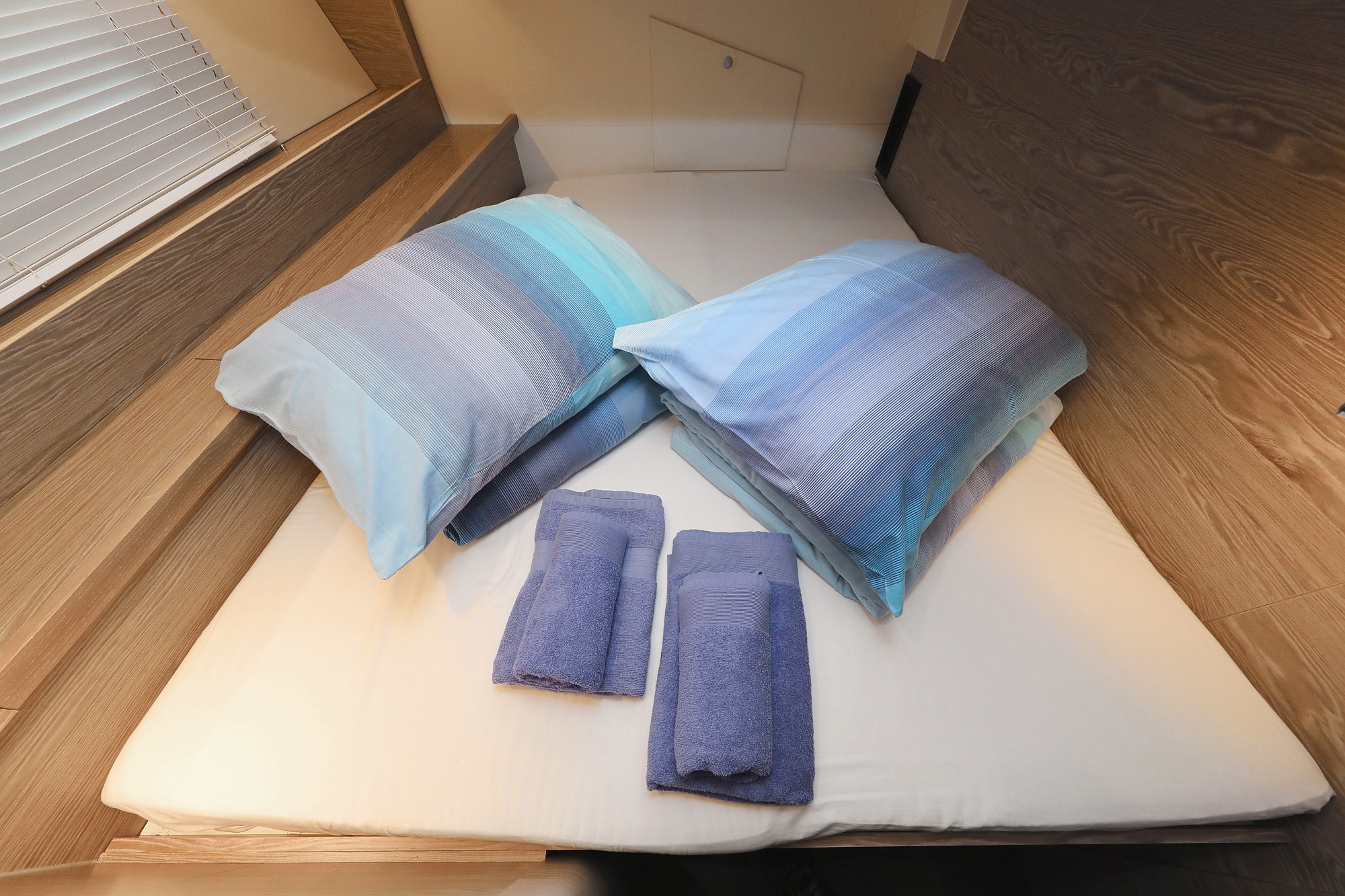 | Inside | Gas stove with oven, Freezer, Generator, Heating, Inverter 12V/220V, Coffee machine, Airconditioning (independent from shore power), Refrigerator, Battery charger, Pantry equipment, Radio with CD, AUX and USB, TV, Warm water, WC (electr.) |