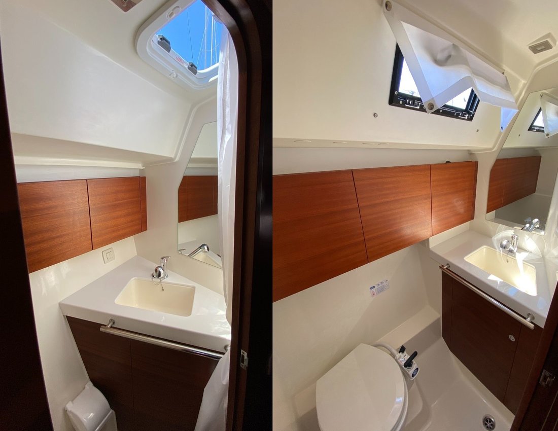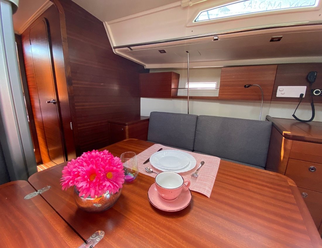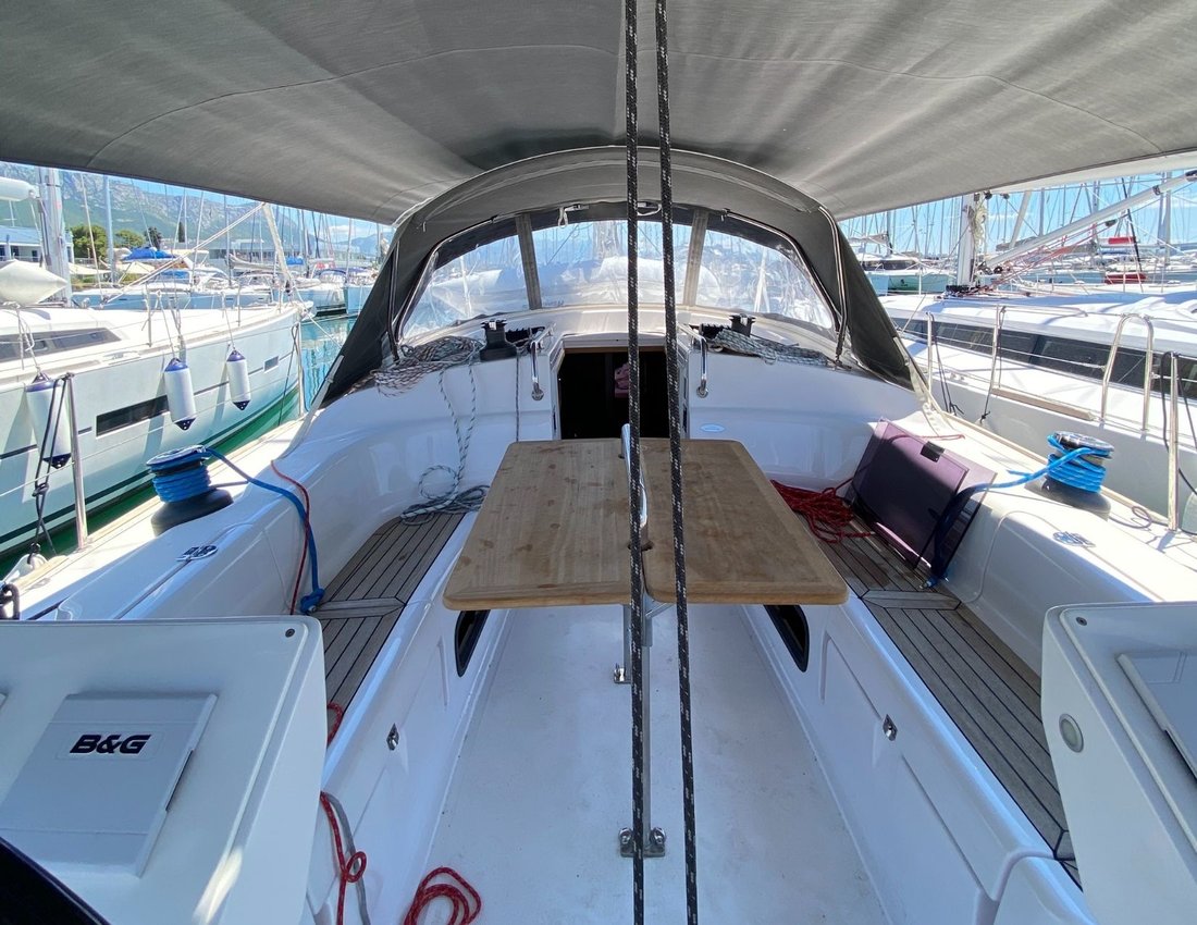 | Outside | Anchor with chain, Cockpit shower, Cockpit speakers, Foldable cockpit table, Delta anchor, Electr. anchor windlass, Folding propeller, Fender, Mooring lines, Gangway, Sprayhood |