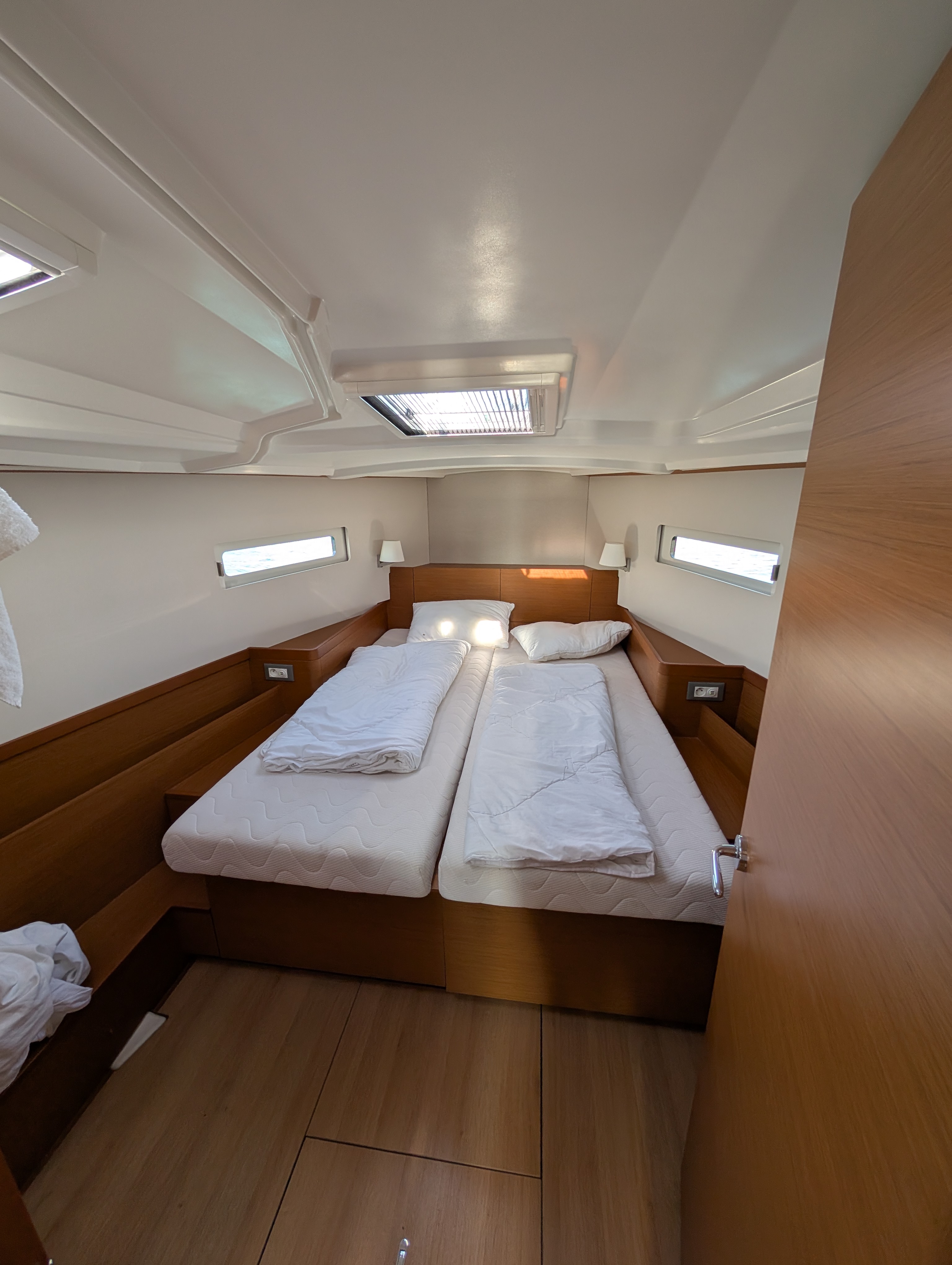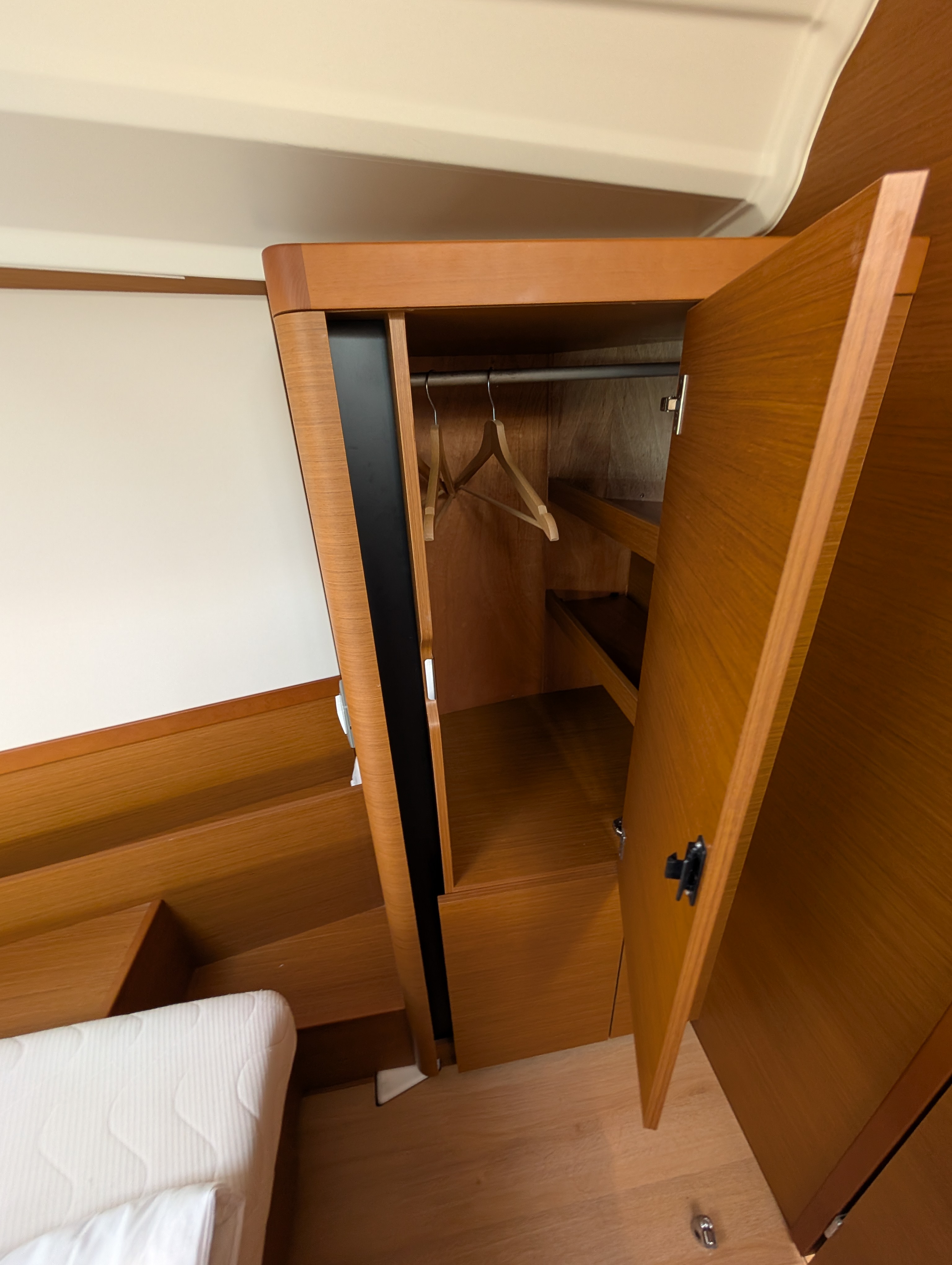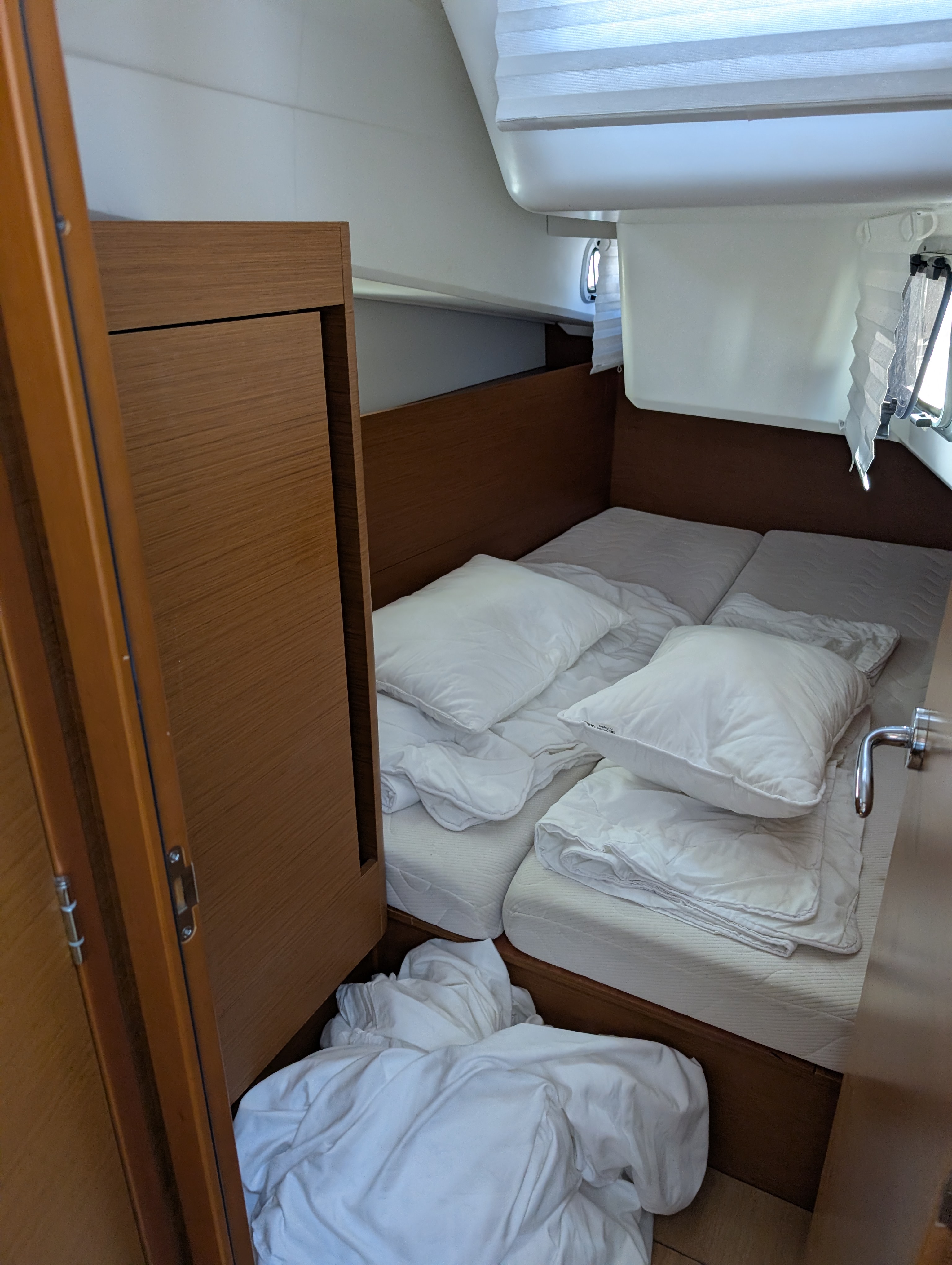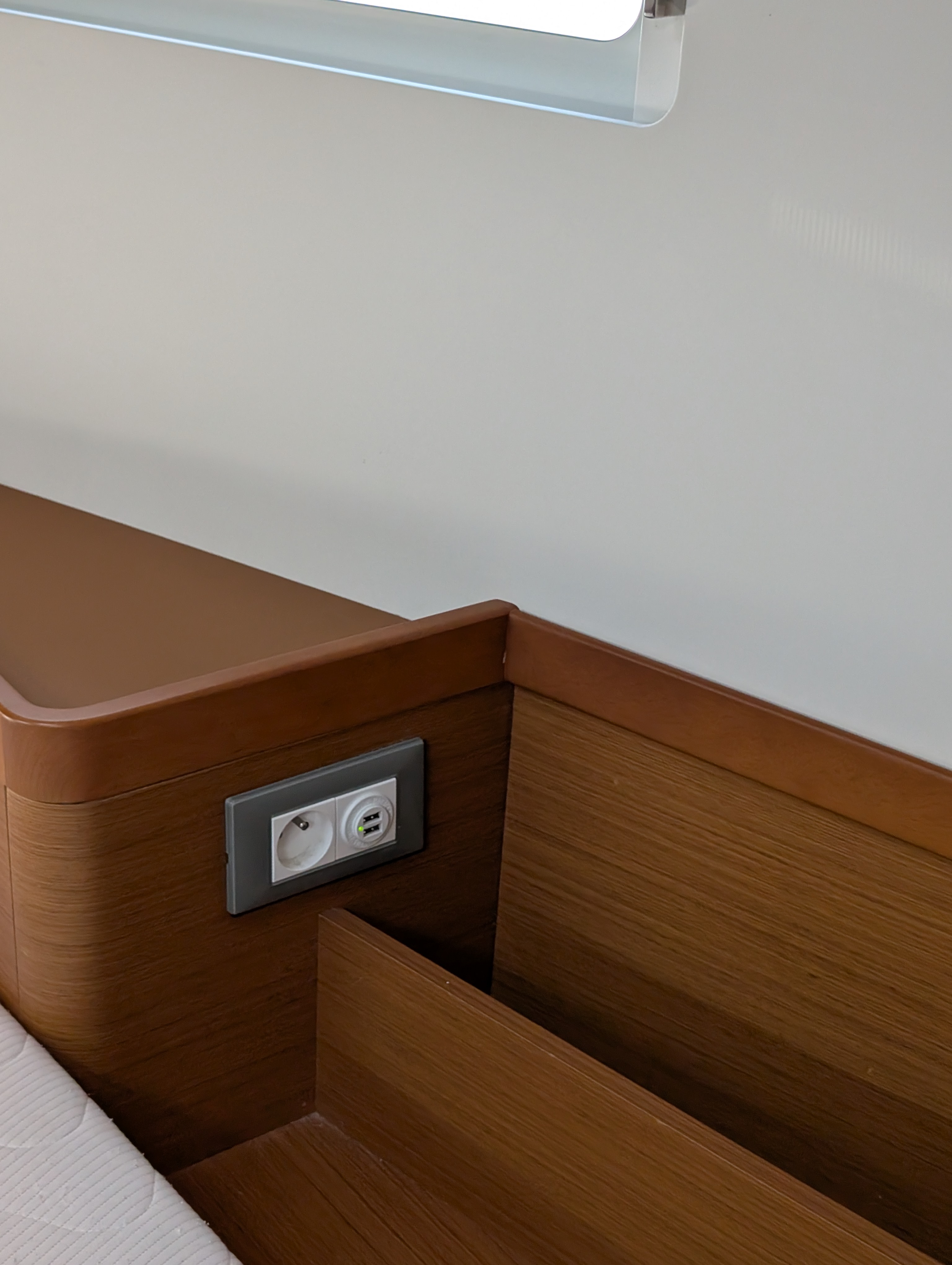 | Safety | Autopilot, Bosun's chair, First aid kit, Tools, Bowthruster, Solid life vests, Fire extinguisher, Emergency tiller, Distress signals, Safety belt, Torchlight, Second anchor |