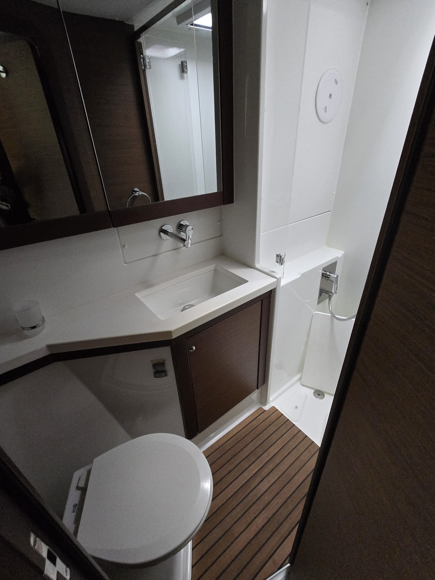 | Outside | 12V - connection, 220V shore connection, Anchor with chain, Anchor winch, Bathing ladder, Bimini top, Boat hook, Cockpit shower, Refrigerator in cockpit, Cockpit speakers, Cockpit cushions, Cockpit table, Davits, Deck cushions, Jerry cans for diesel, Electr. anchor windlass, electr. winch, Fender, Mooring lines, Gangway, Ball fender, Plastic bucket, Sprayhood, Canister for water, Water hose, Windex, Winches |