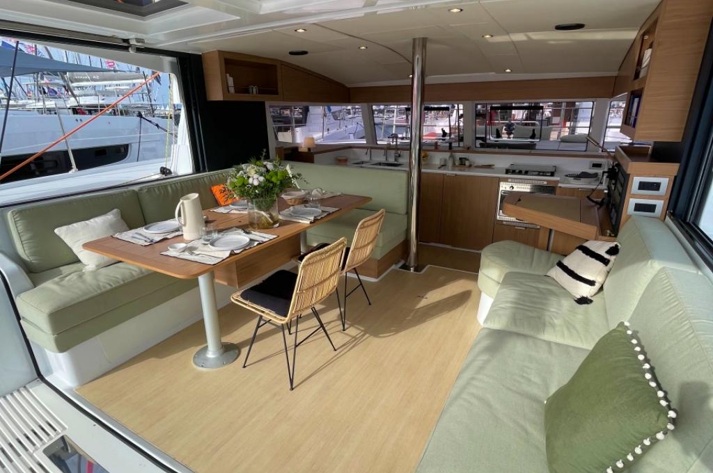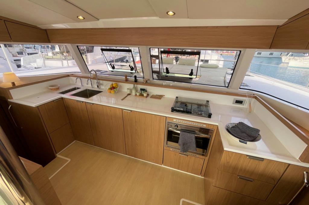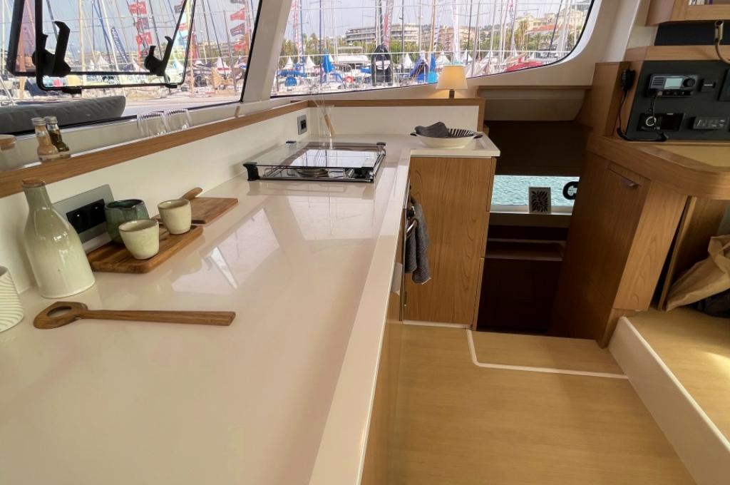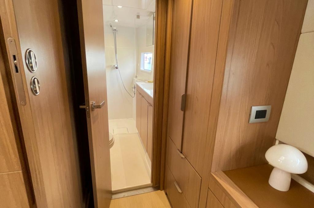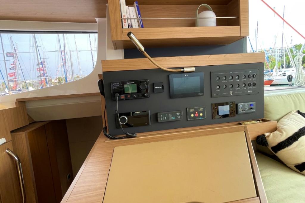 | Inside | Oven, Freshwater pump, Freezer, Generator, Inverter 12V/220V, Airconditioning (independent from shore power), Refrigerator, Battery charger, Mosquito nets, Radio, Convertible salon table, fans in cabins, Warm water, Watermaker, WC (electr.) |