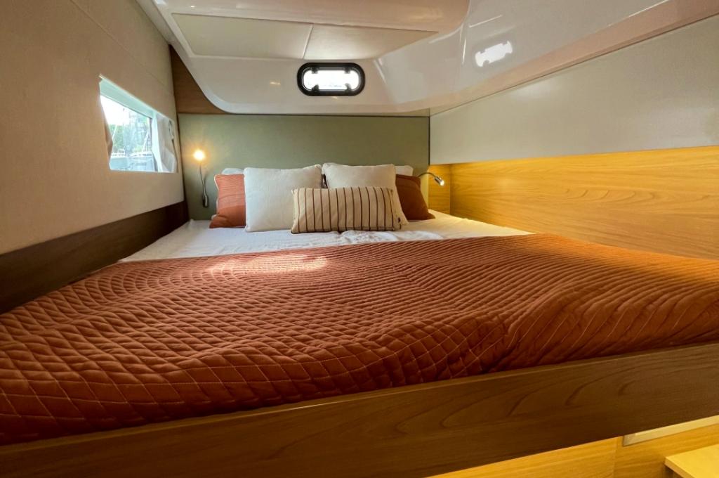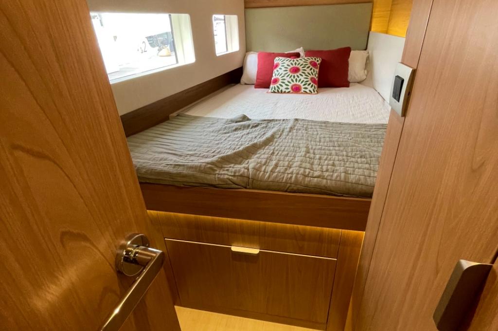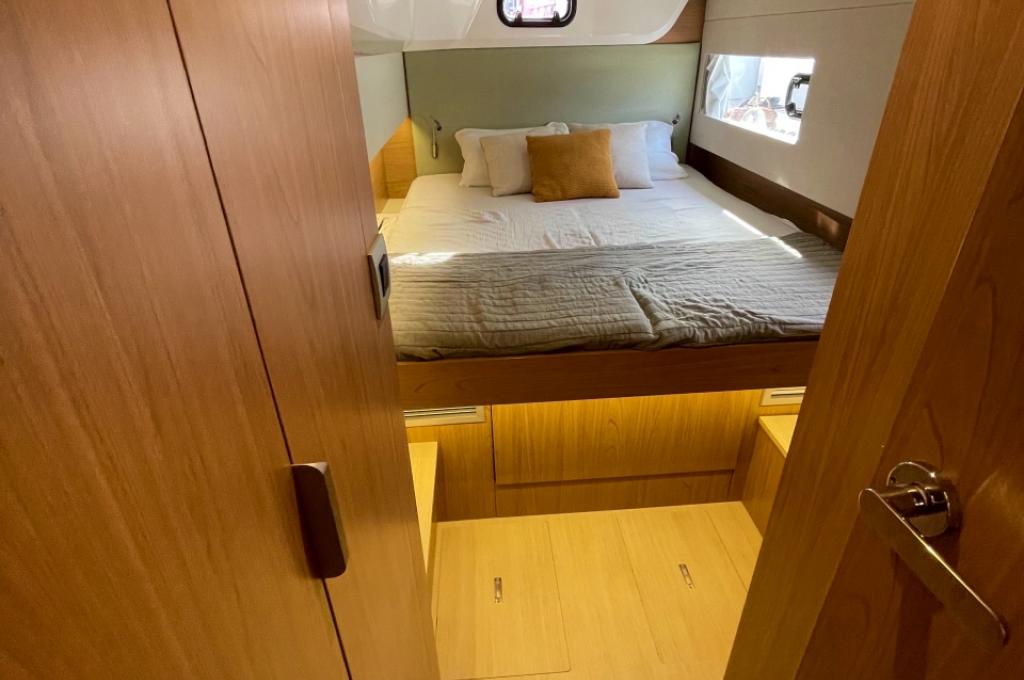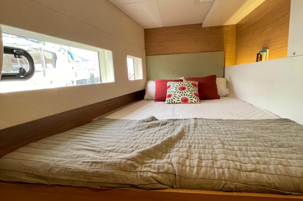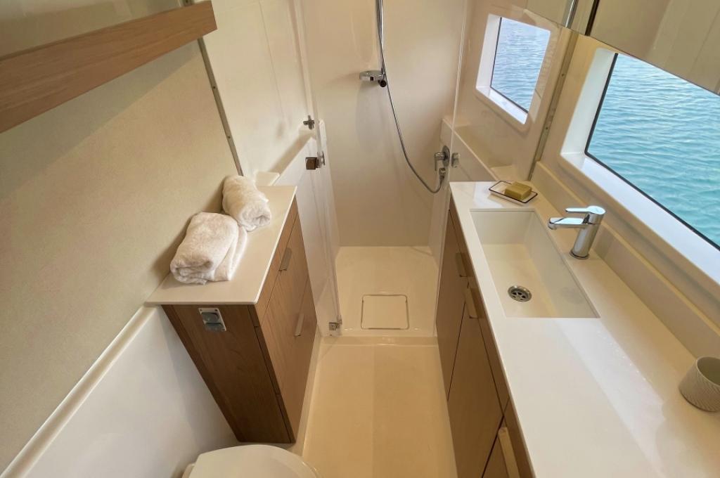 | Inside | Oven, Freshwater pump, Freezer, Generator, Inverter 12V/220V, Airconditioning (independent from shore power), Refrigerator, Battery charger, Mosquito nets, Radio, Convertible salon table, fans in cabins, Warm water, Watermaker, WC (electr.) |