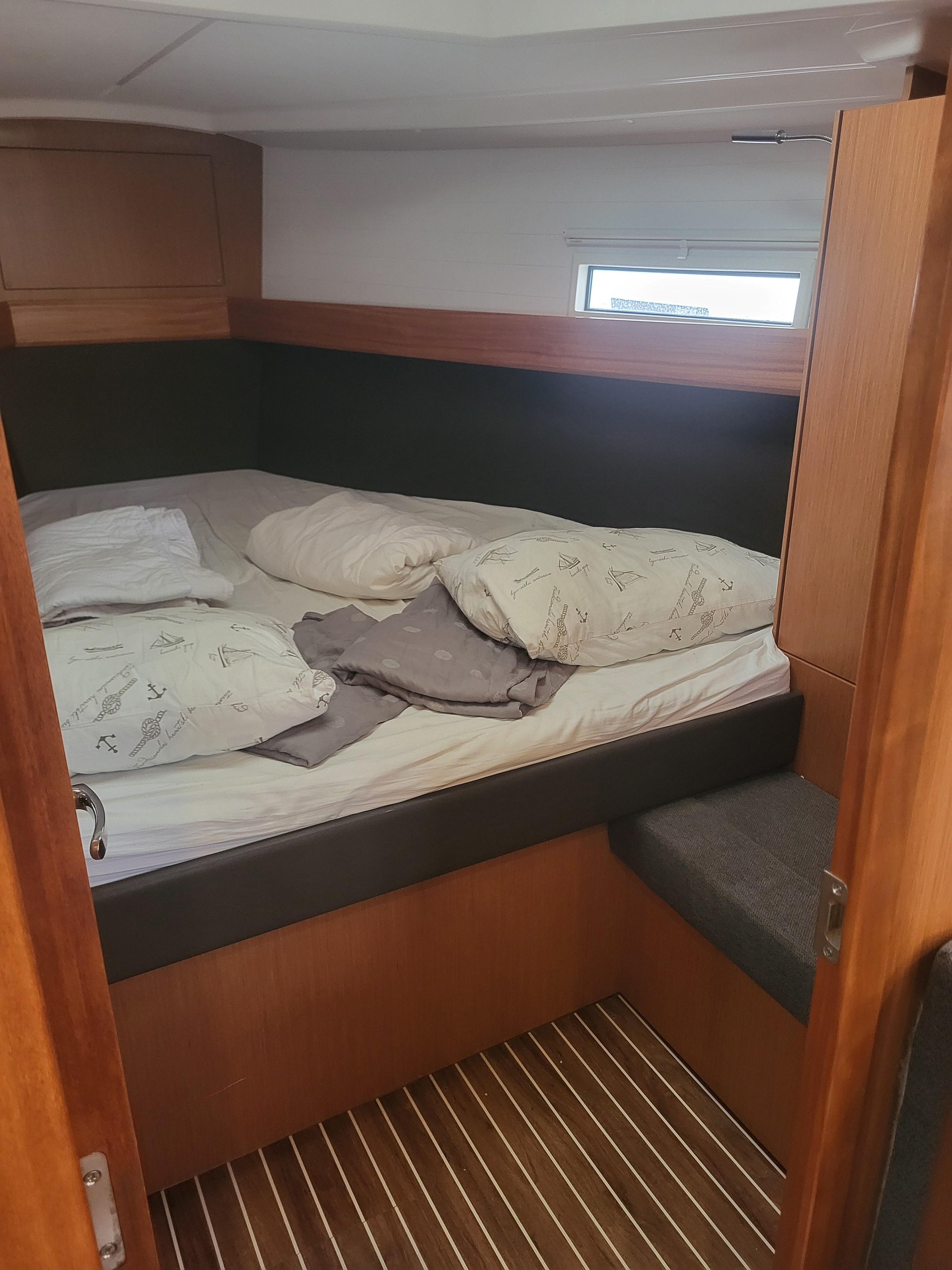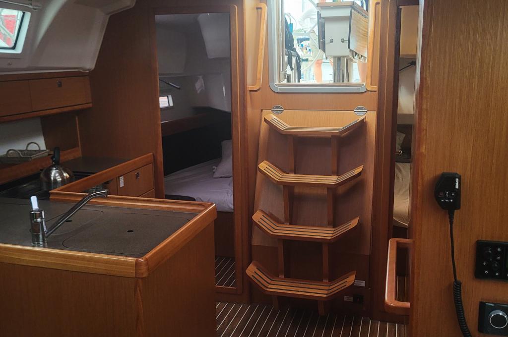 | Safety | Autopilot, Bosun's chair, First aid kit, Tools, Bowthruster, Solid life vests, Fire extinguisher, Lifebelts, Fog horn, Emergency tiller, Distress signals, Radar reflector, Rescue collar, VHF Radio, Second anchor |