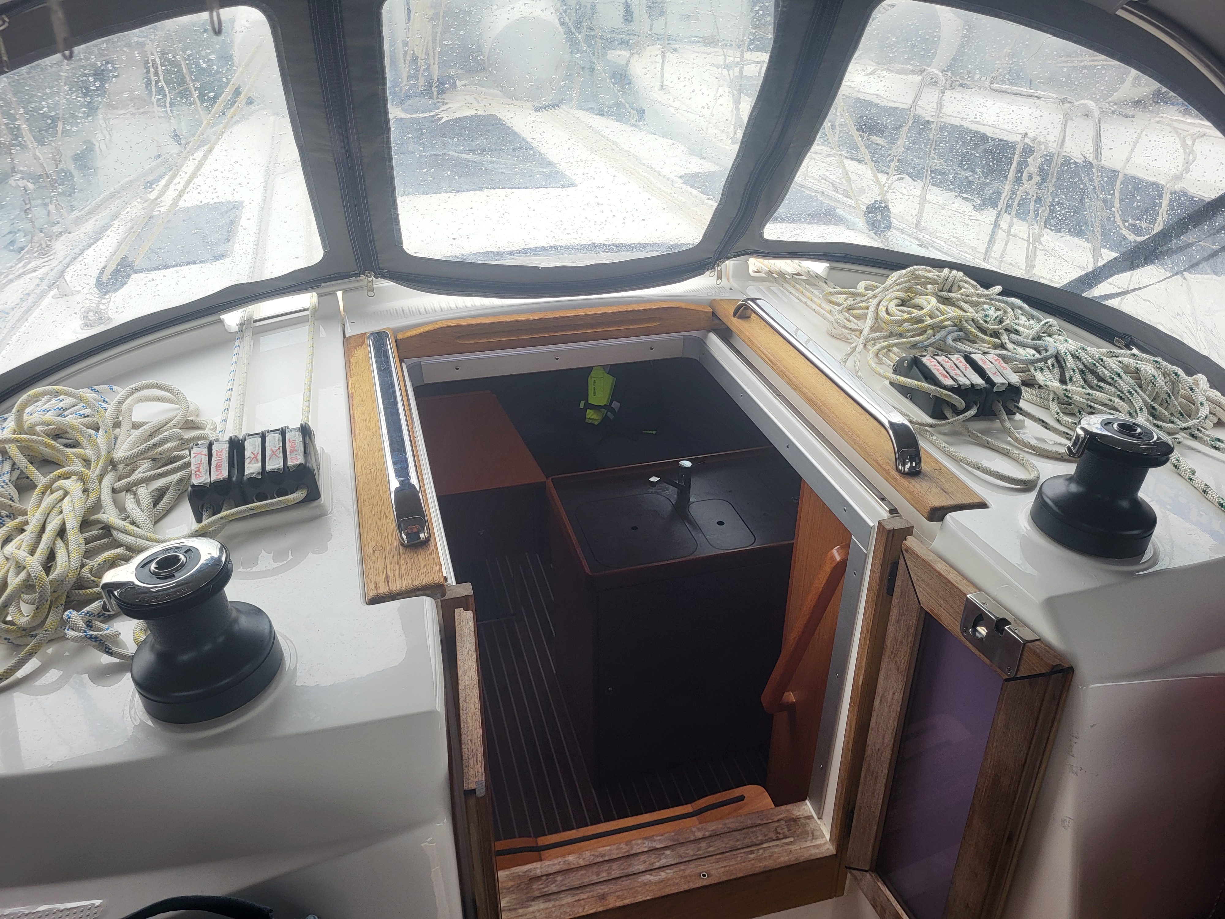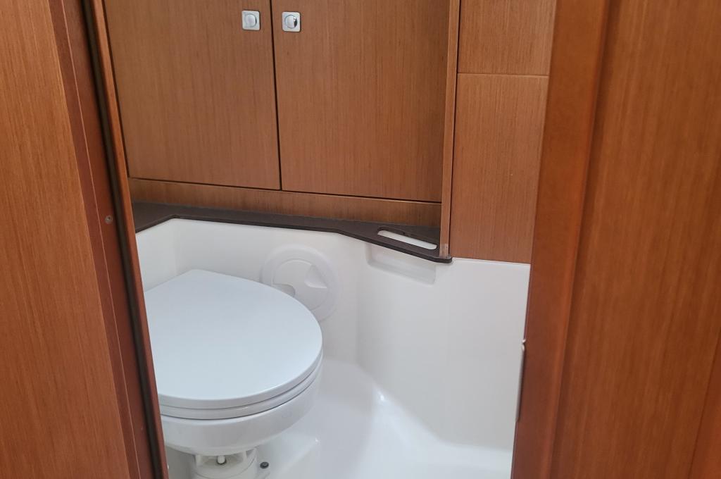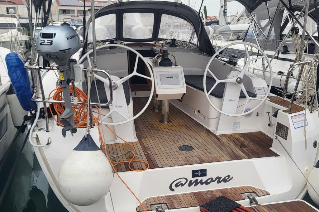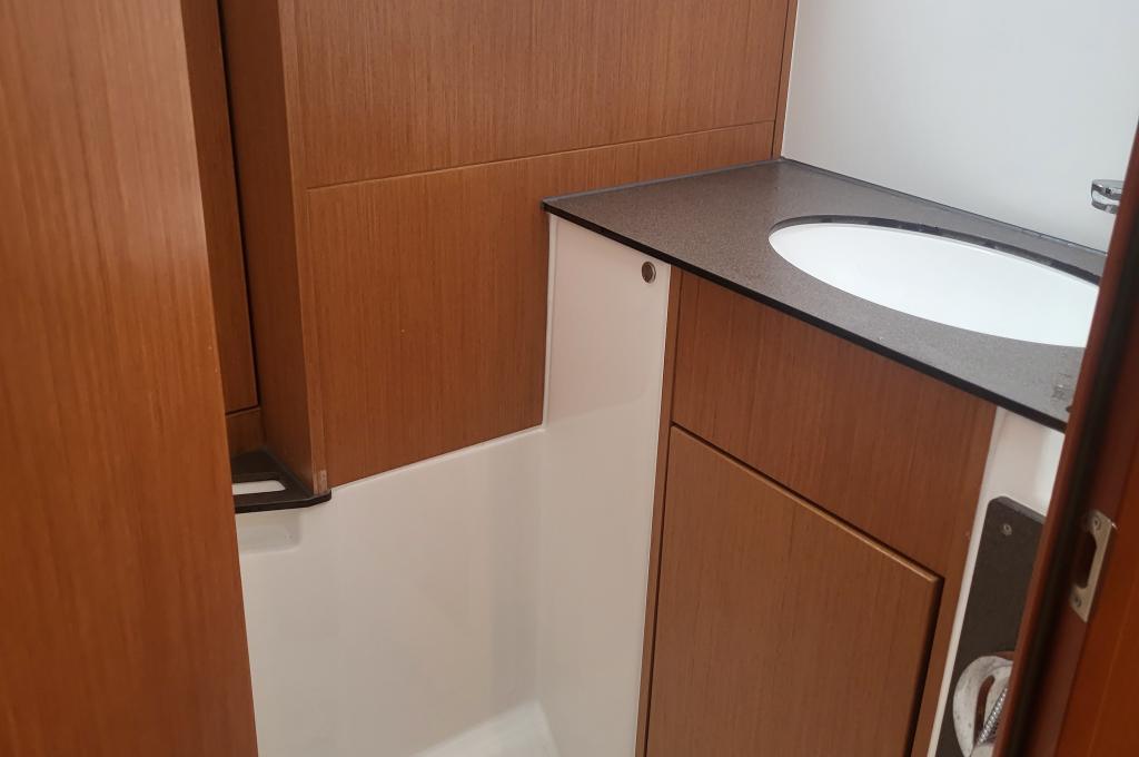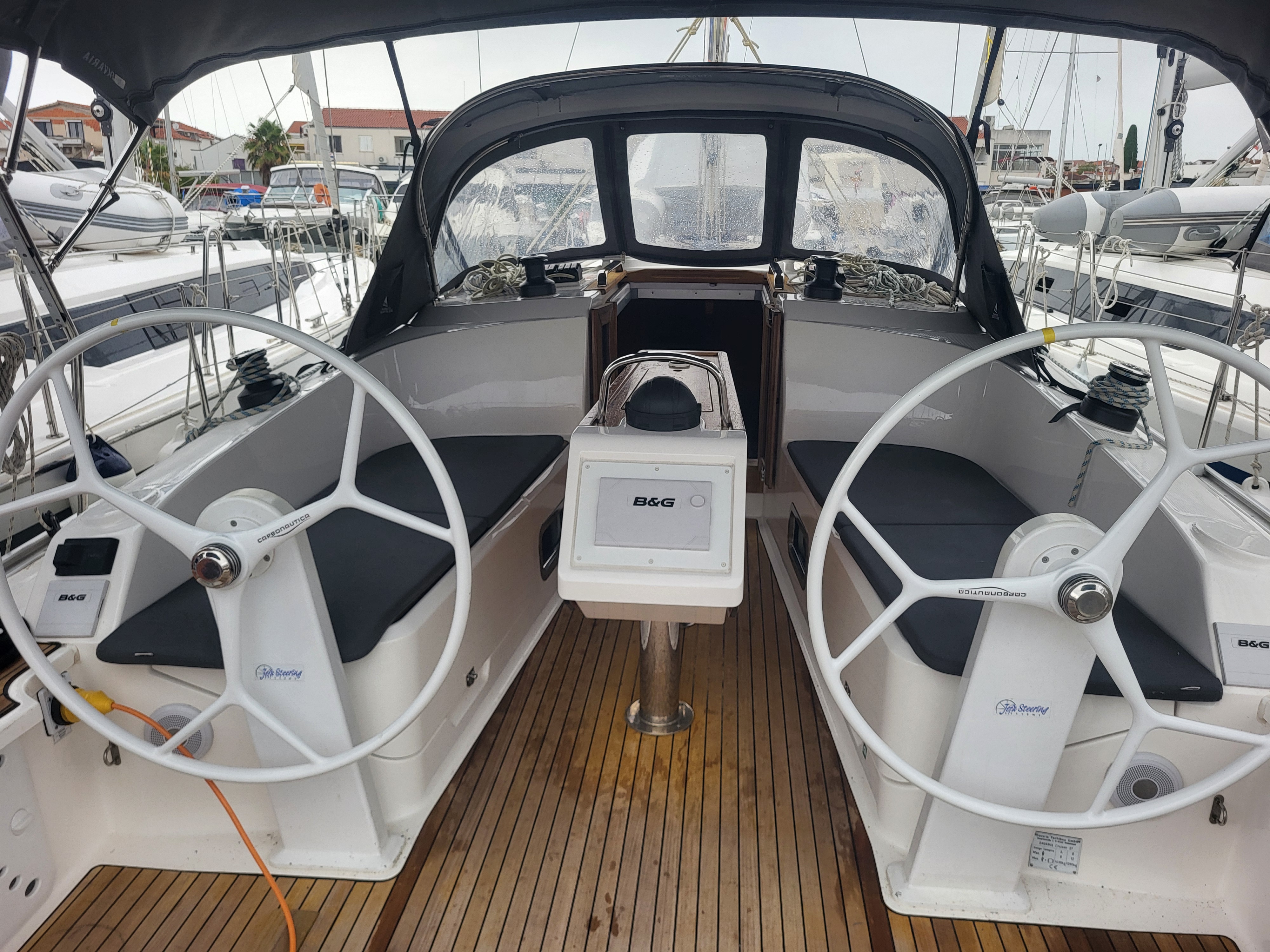 | Outside | 220V shore connection, Anchor with chain, Bimini top, Cockpit shower, Cockpit speakers, Cockpit cushions, Cockpit table, Electr. anchor windlass, Fender, Mooring lines, Solar panels, Sprayhood, Teak in cockpit, Drift anchor , Windex |