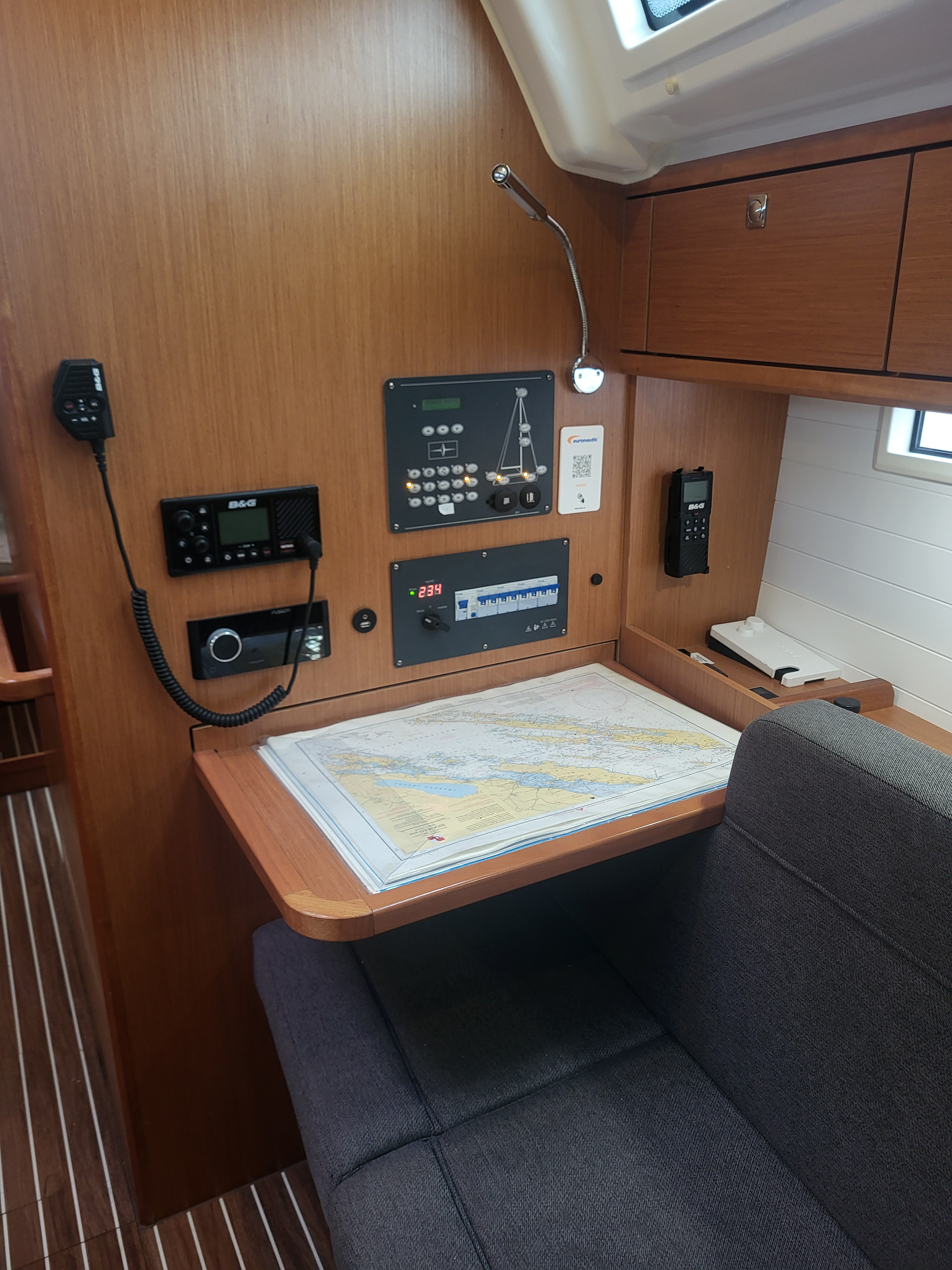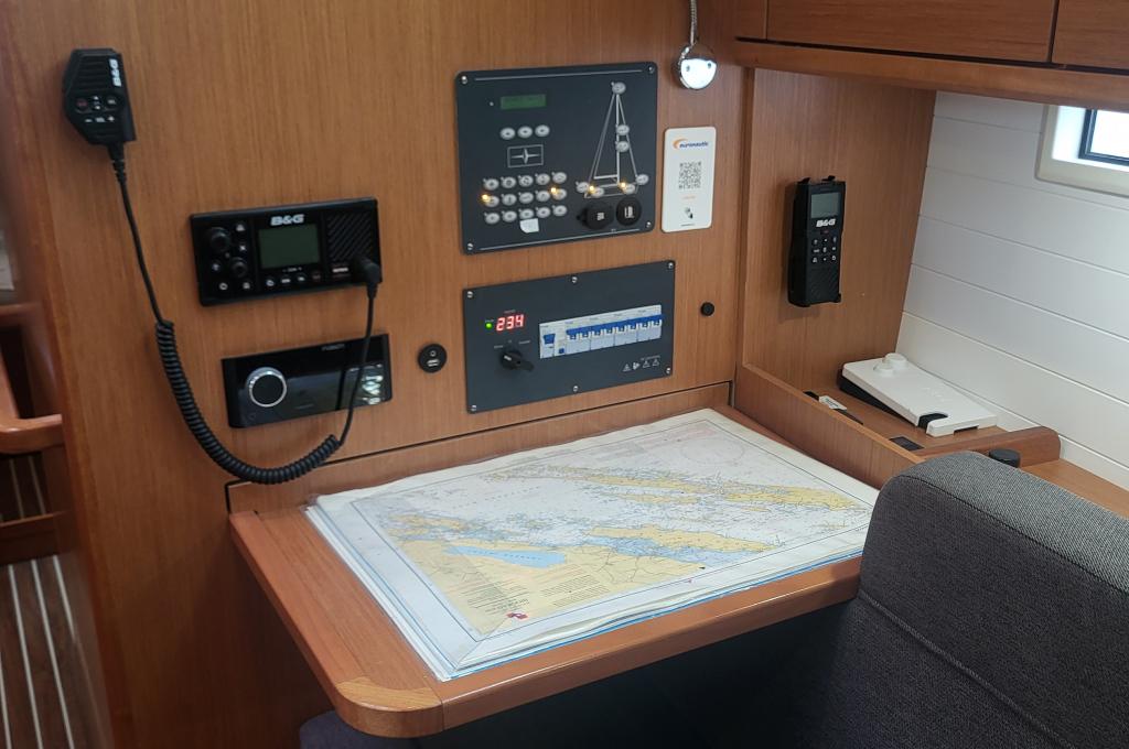 | Navigation | Echo sounder, GPS with chart plotter in cockpit, Harbour books, Hand bearing compass, Compass, Nautical charts, Log, Anemometer |