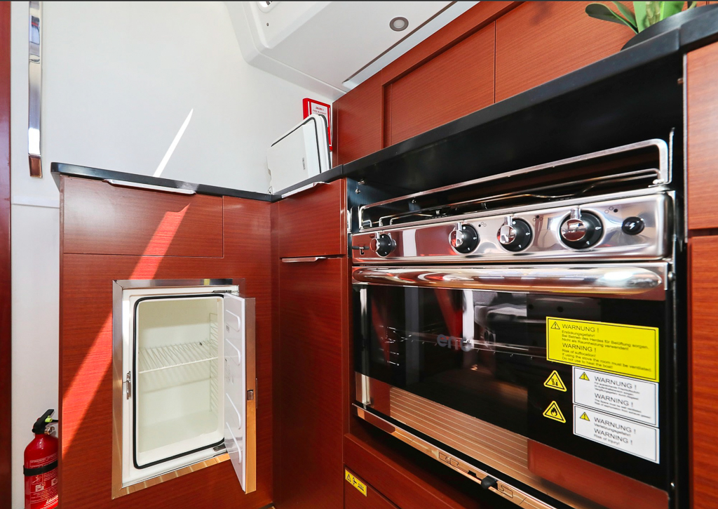 | Inside | Oven, Gas oven, Generator, Heating, Inverter 12V/220V, Airconditioning (independent from shore power), Refrigerator, Battery charger, Pantry equipment, Radio with CD player, TV, Warm water |