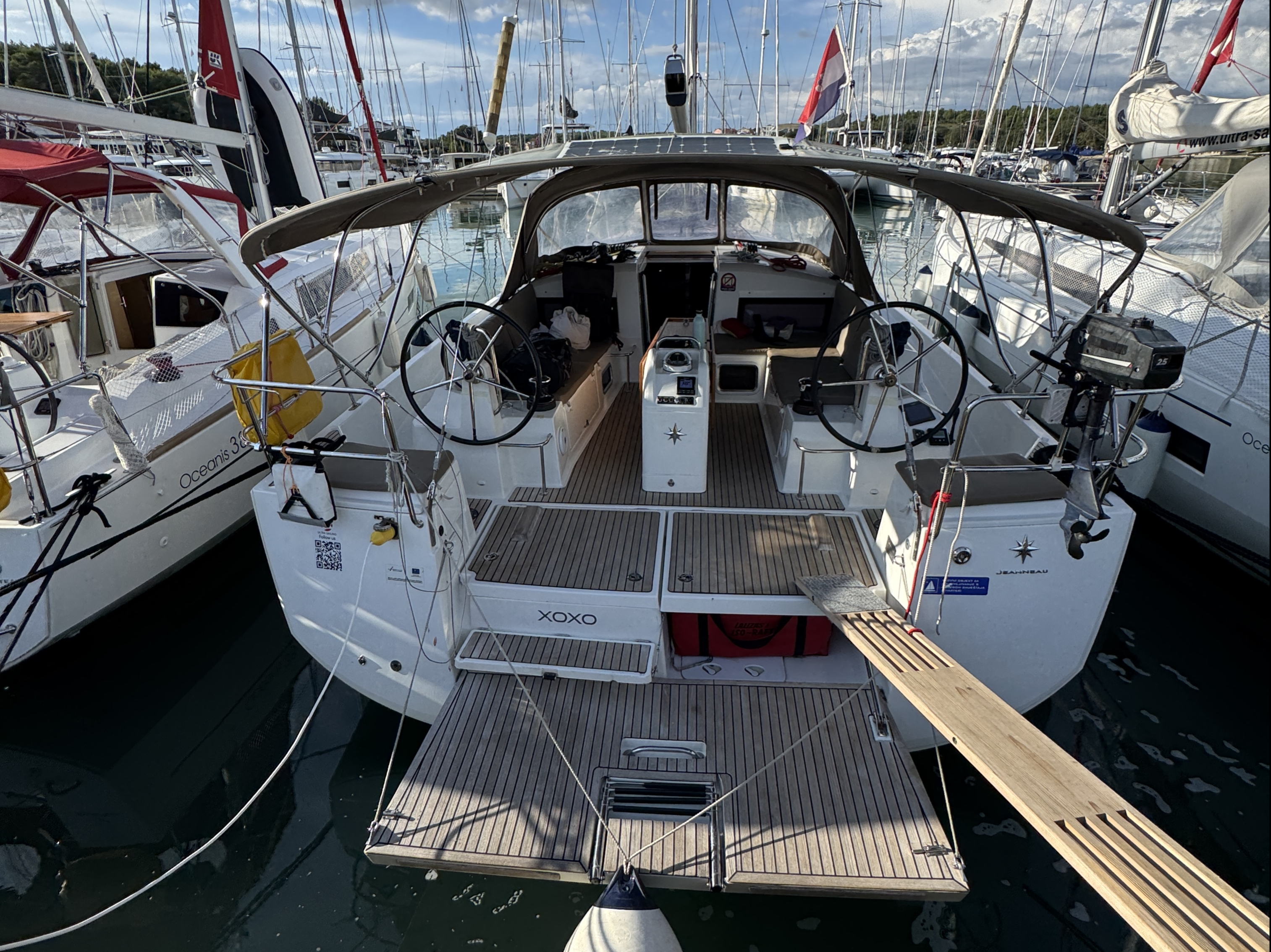 | Outside | 220V shore connection, Anchor with chain, Electrical swimming platform, Bimini top, Boat hook, Cockpit shower, Refrigerator in cockpit, Cockpit speakers, Cockpit cushions, Cockpit table, Electr. anchor windlass, Fender, Gangway, Ball fender, Solar panels, Sprayhood, Winches |