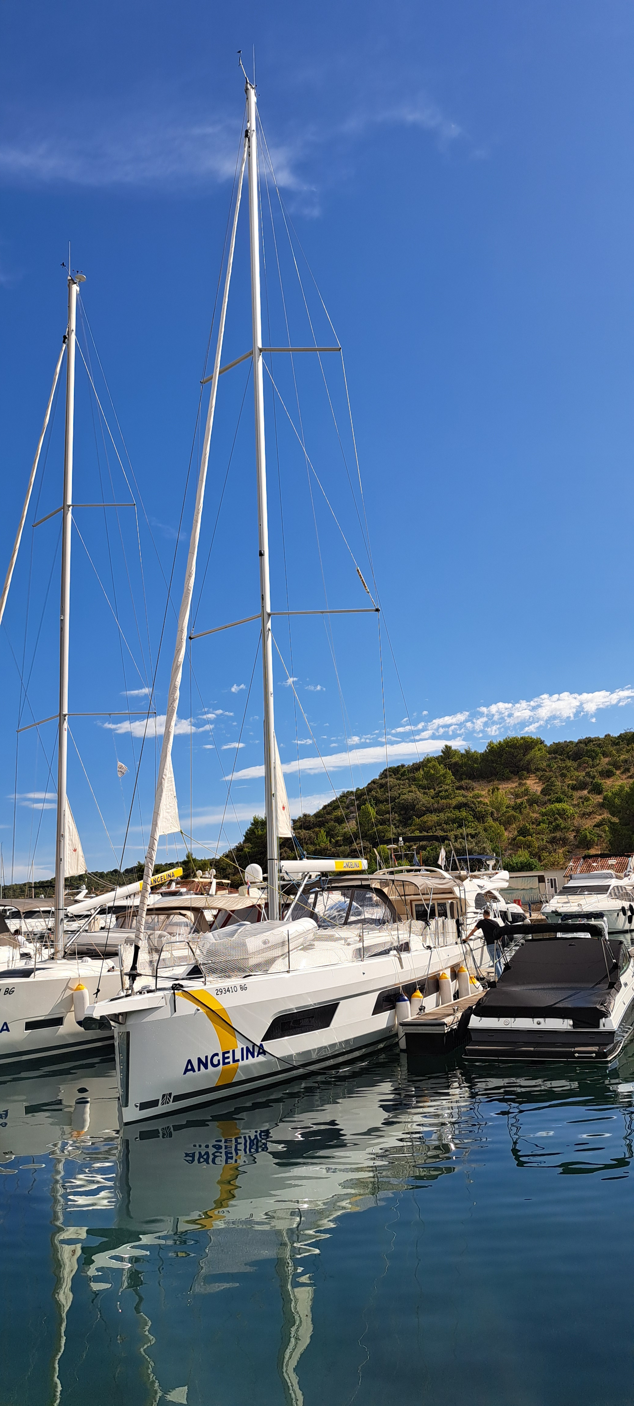 | Navigation | Binoculars, GPS Chart Plotter, Hand bearing compass, Compass, Navigation set, Nautical charts, Tridata (Log, Echosounder, Windm.), Anemometer |