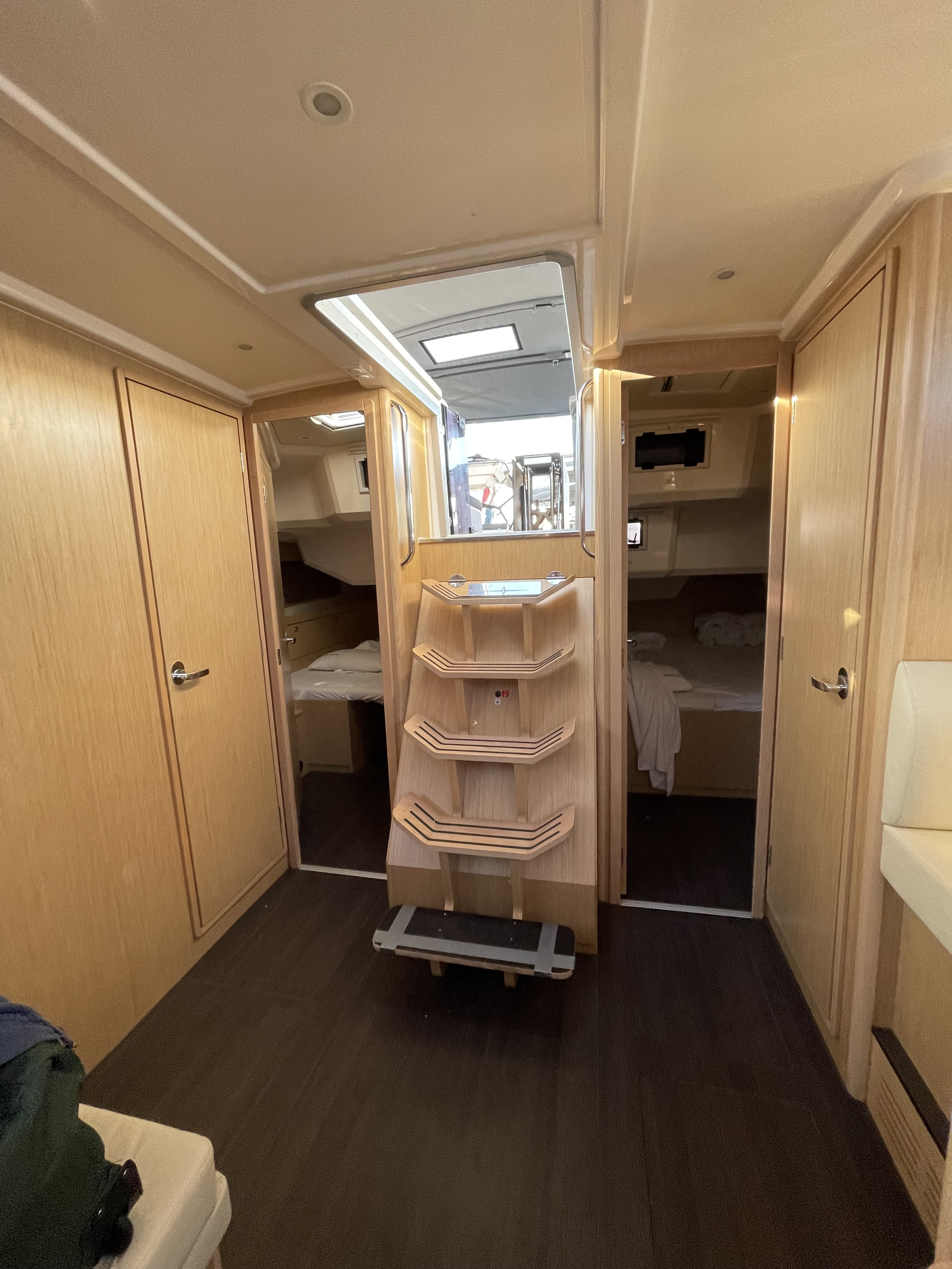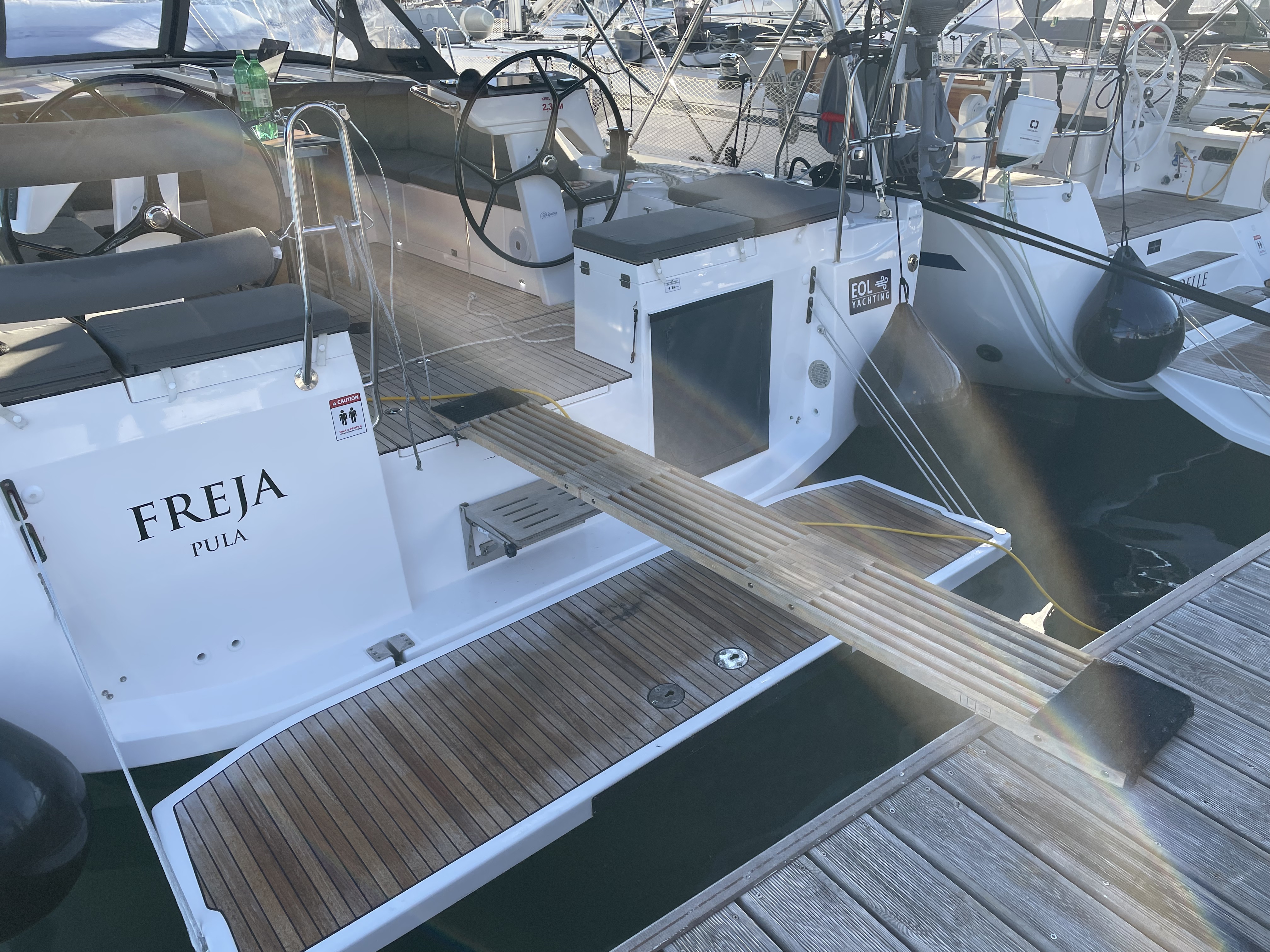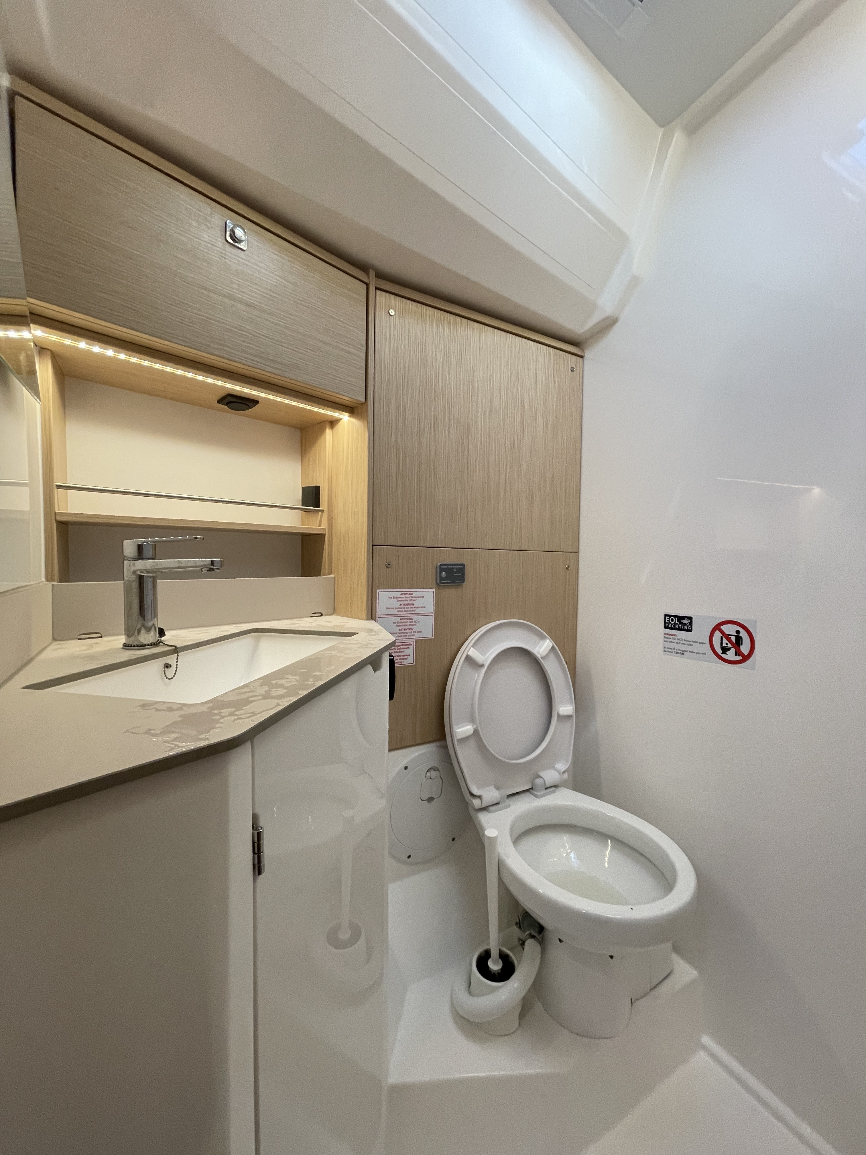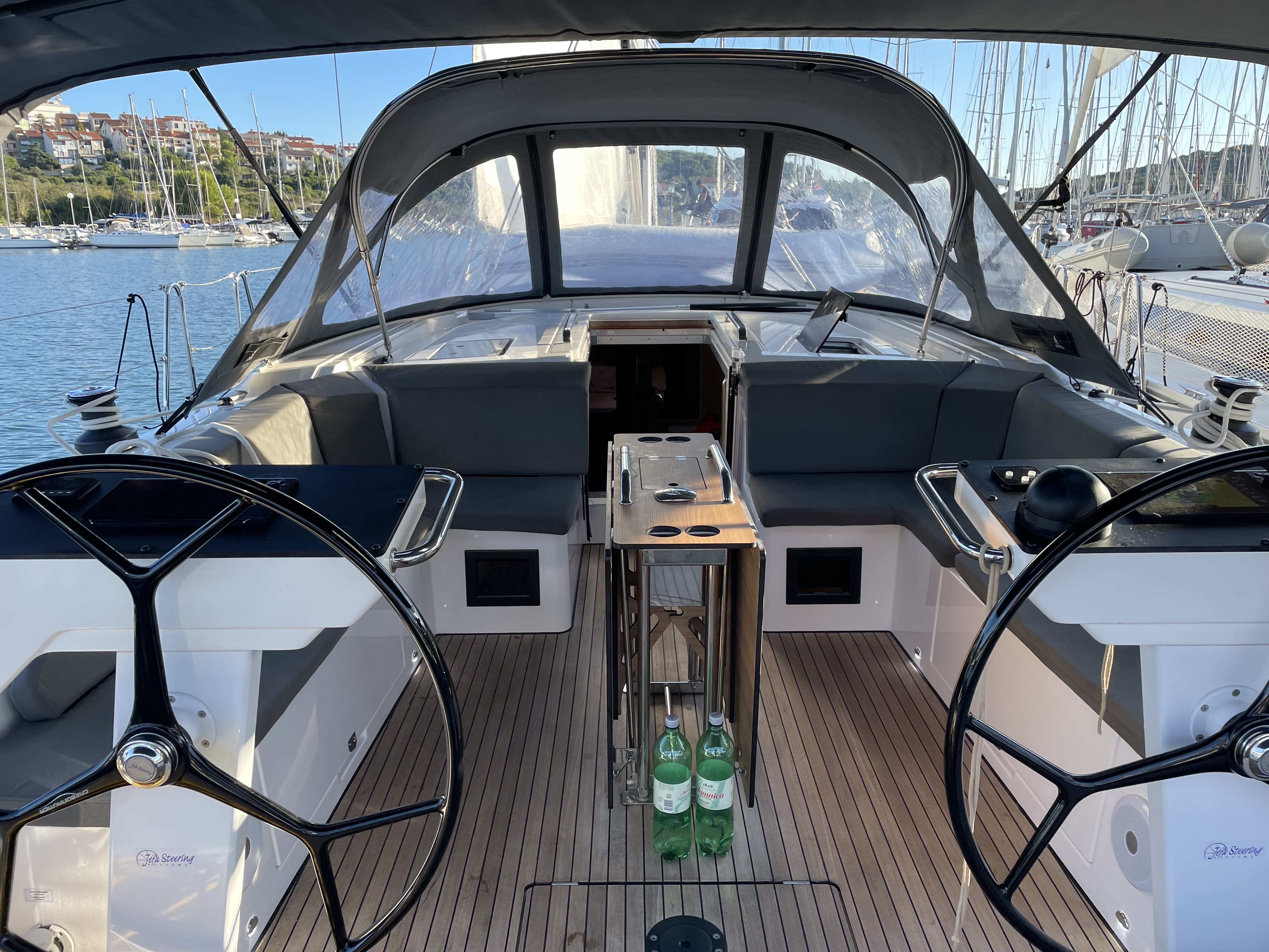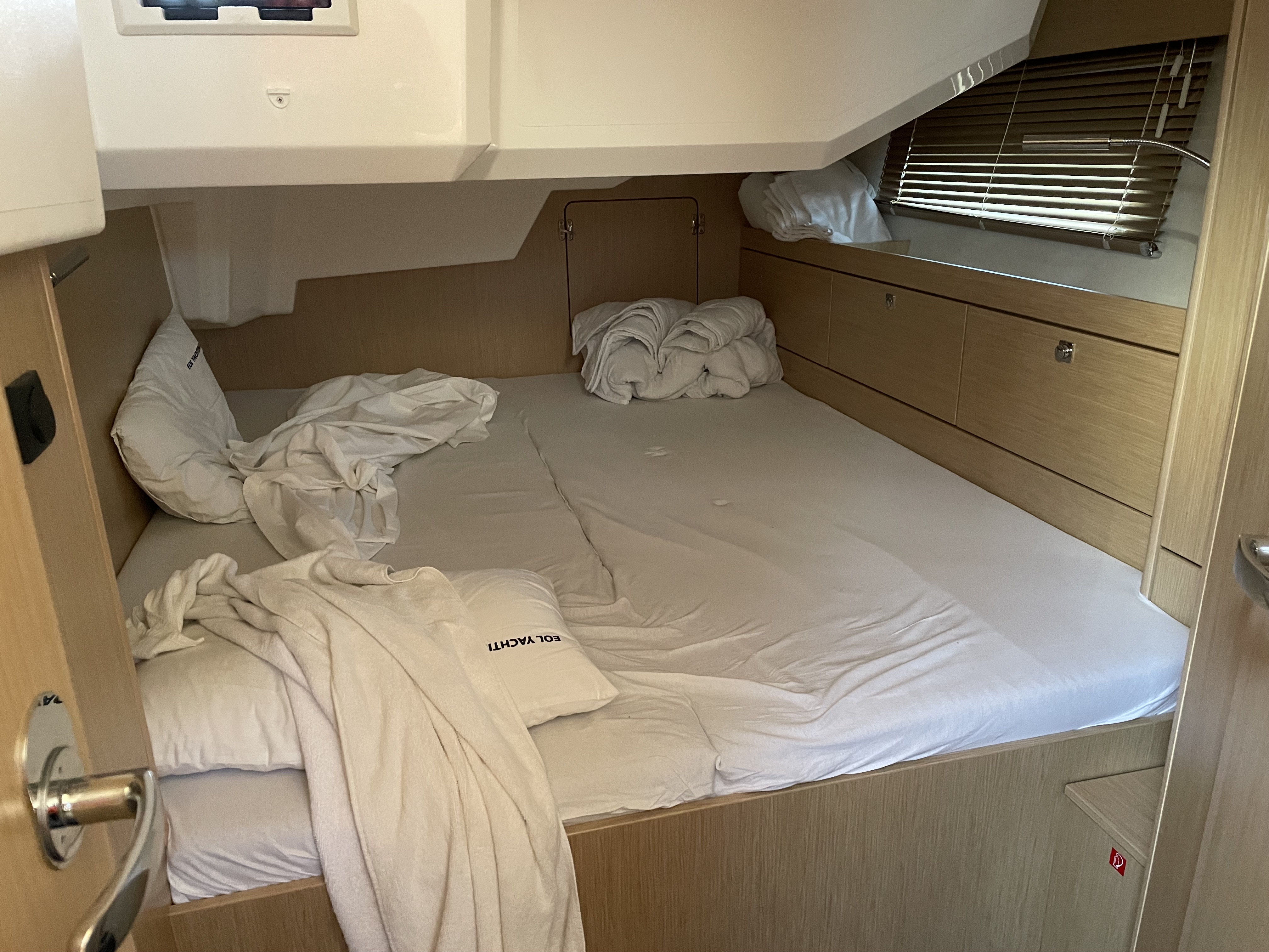Die Jacht war in einem sauberen segelfertigen Zustand. Kleine Unzulänglichkeiten erschweren das Leben an Bord leider etwas: fehlende Haken um Kleider oder Handtücher aufzuhängen, fehlende Türstopper, so dass die Türen klappern und gegen die Wände krachen, keine Tee- oder Thermoskannen. Also eher Kleinigkeiten die fehlen.