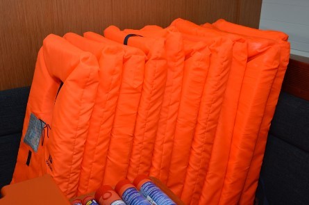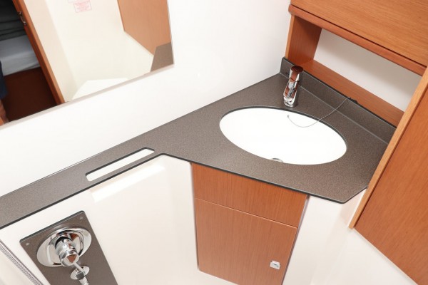 | Safety | Autopilot, First aid kit, Tools, Bowthruster, Solid life vests, Fire extinguisher, Lifebelts, Fog horn, Emergency tiller, Distress signals, Radar reflector, Life raft, VHF Radio, Second anchor |