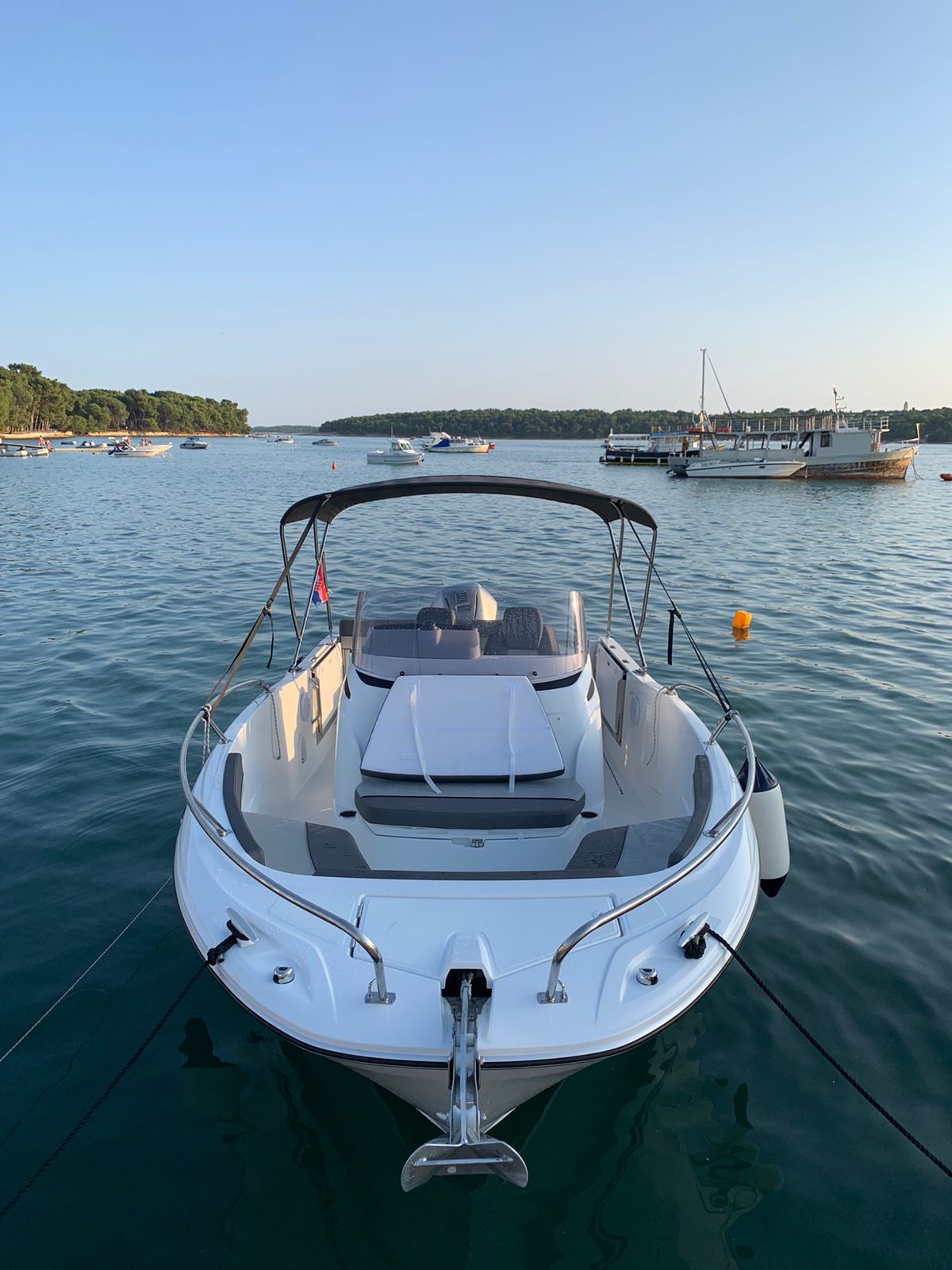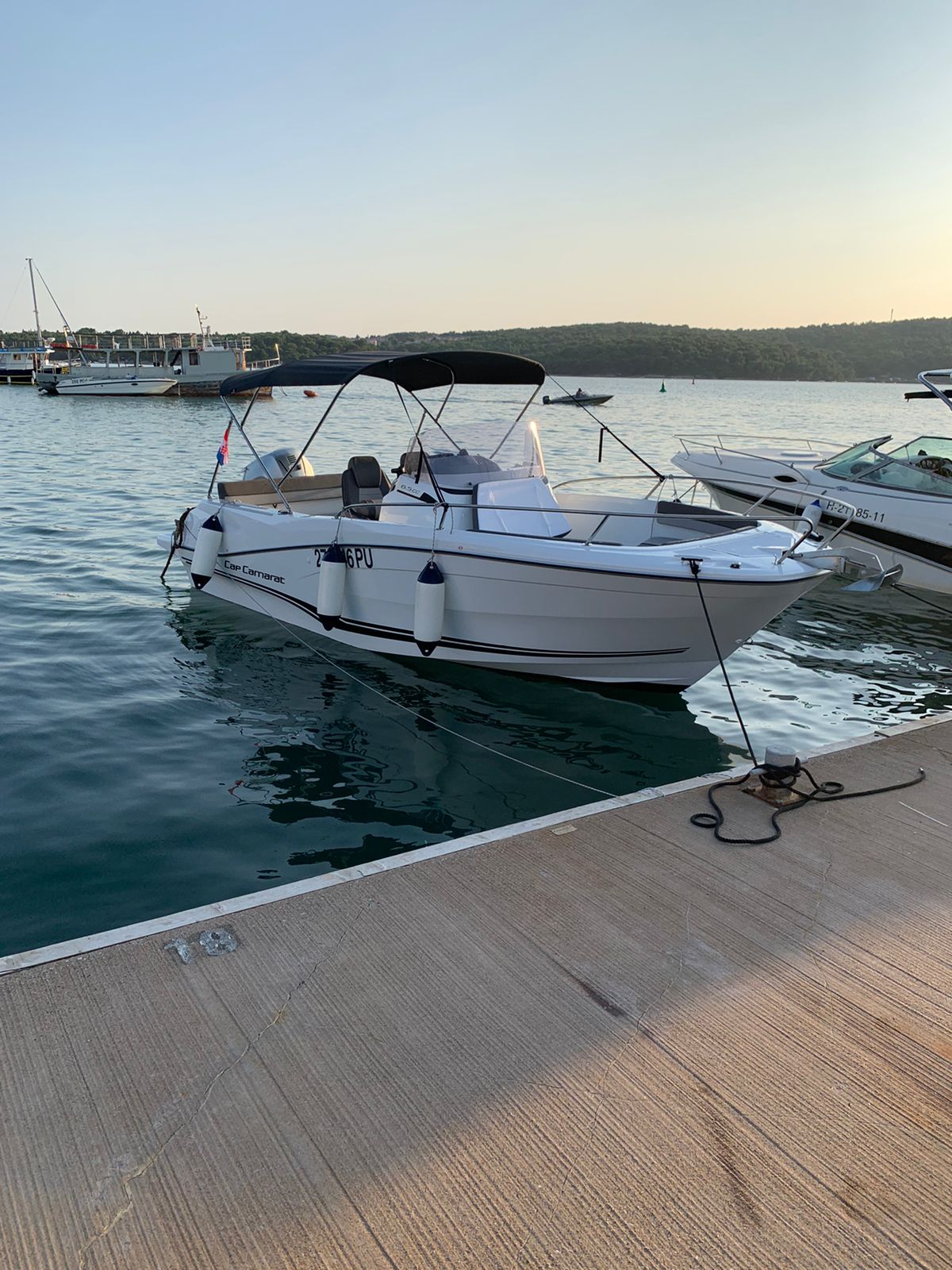 | Outside | Anchor with rope , Bimini top, Cockpit shower, Winches |