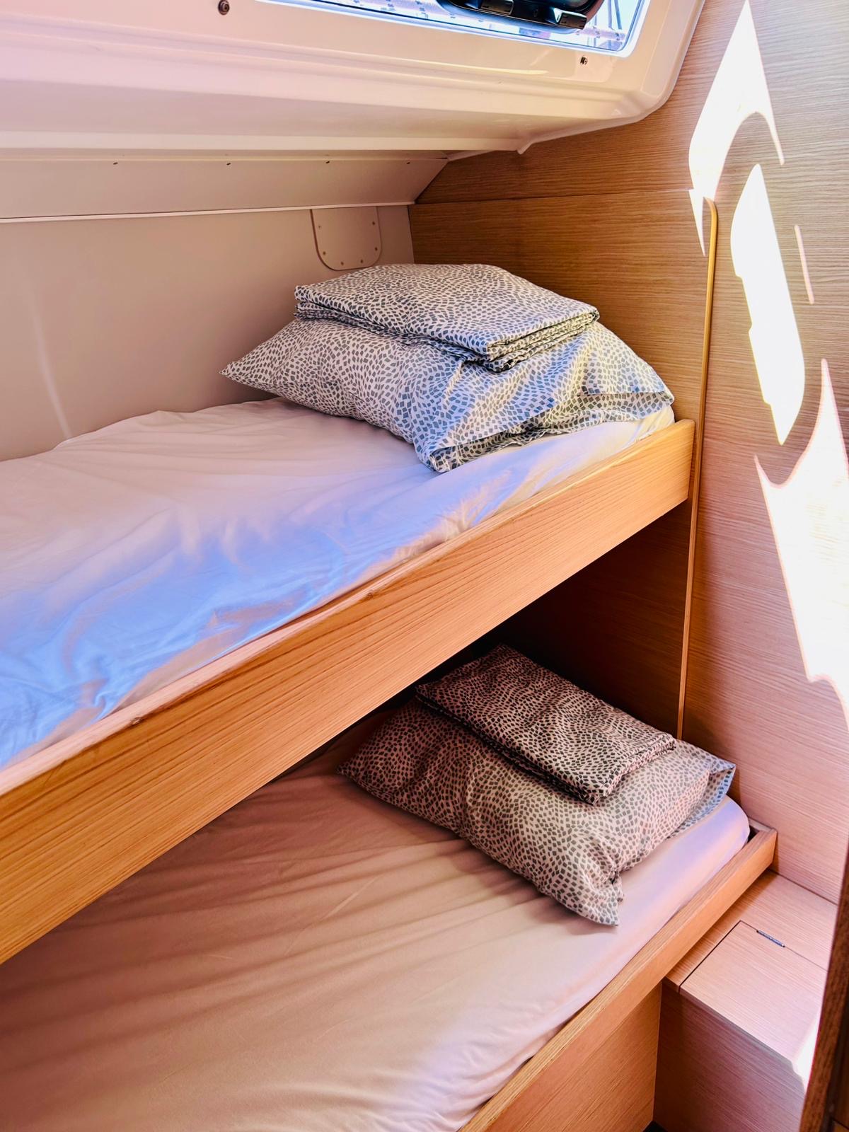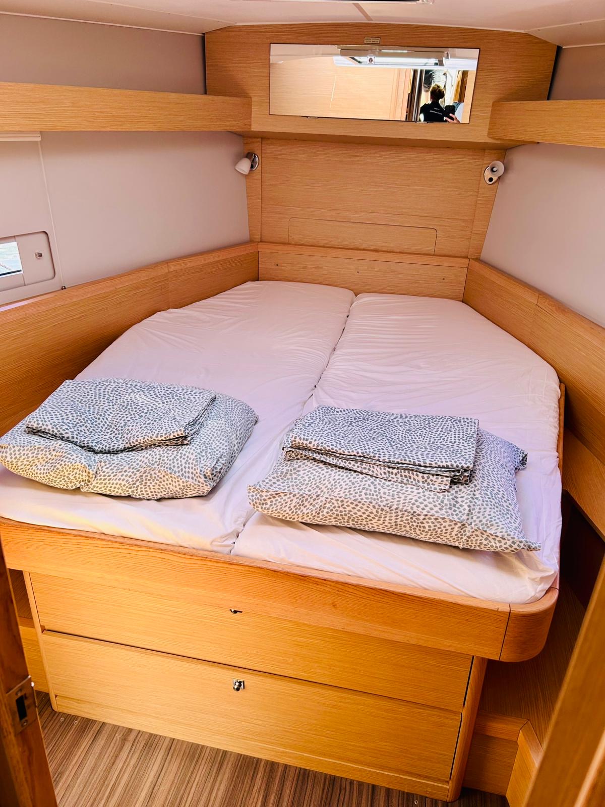 | Safety | AIS receiver, Anchor light, Automatic life jackets, Autopilot, Sailor's knife, Bosun's chair, First aid kit, Tools, Bowthruster, Electr. bilge pump, Fire extinguisher, Flags, Lifebelts, Navigational lights, Fog horn, Emergency tiller, Distress signals, Life raft, Rescue collar, Torchlight, VHF Radio |