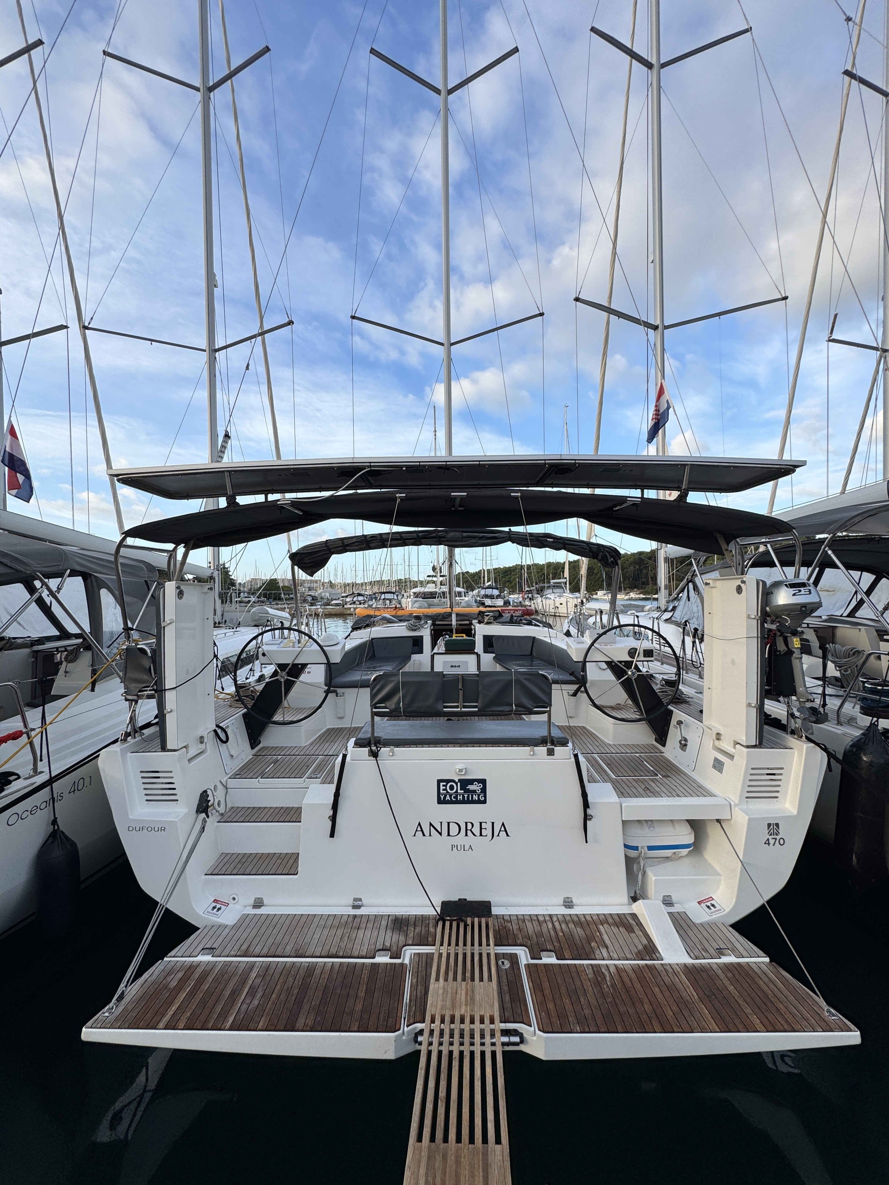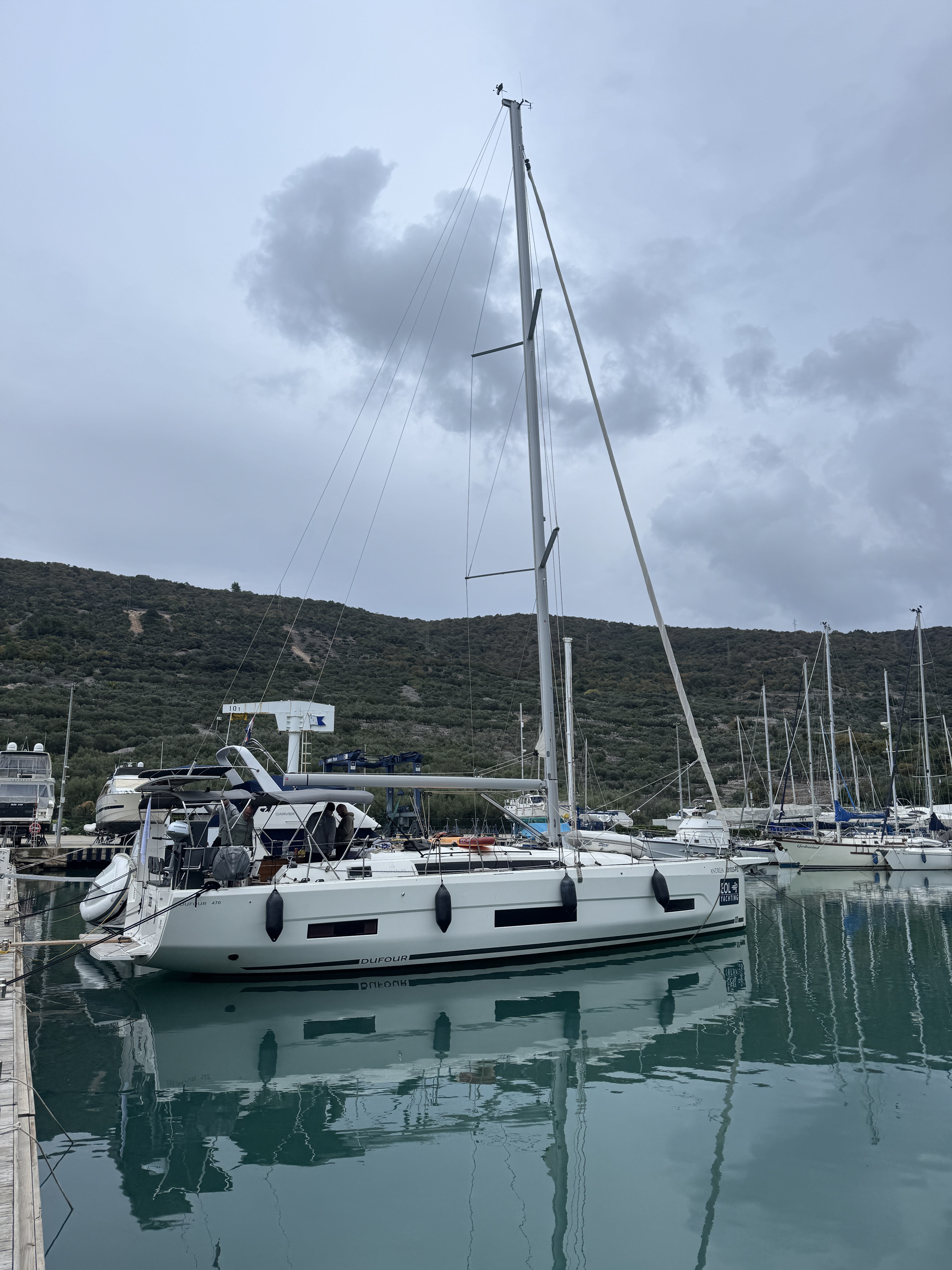 | Outside | 220V shore connection, Anchor with chain, Bathing ladder, Bathing platform, Bimini top, Boat hook, Cockpit shower, Refrigerator in cockpit, Cockpit speakers, Cockpit cushions, Cockpit table, Cover brush, Jerry cans for diesel, Electr. anchor windlass, Fender, Mooring lines, Gangway, BBQ, Ball fender, Plastic bucket, Solar panels, Sprayhood, Teak in cockpit, Teak deck, Drift anchor , LED submarine lights, Water hose, Winches |