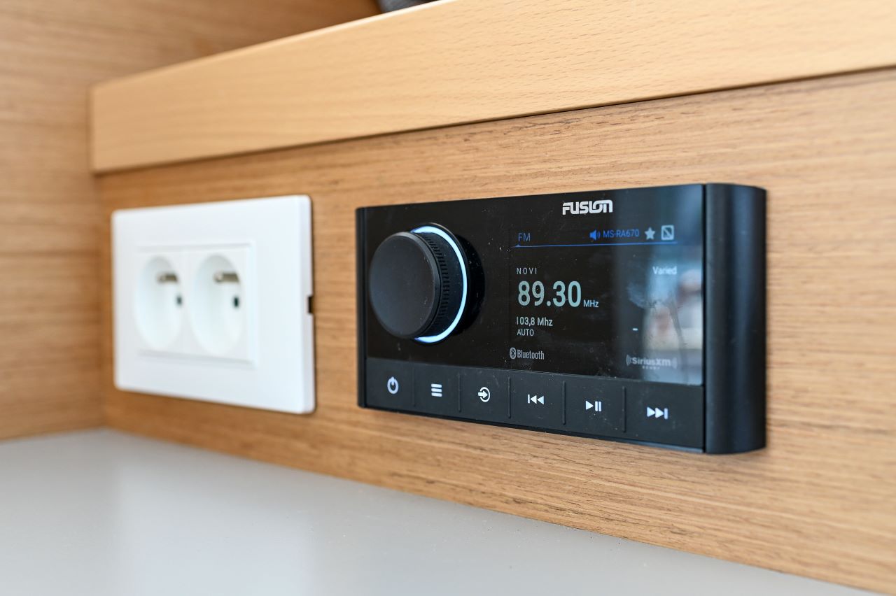 | Inside | 12 V socket, 220V sockets, Oven, Clock, Fusion sound system , Gas oven, Refrigerator, Battery charger, Shore power cable, Speakers in saloon, Pantry equipment, fans in cabins, Warm water, Watermaker, WC (electr.) |