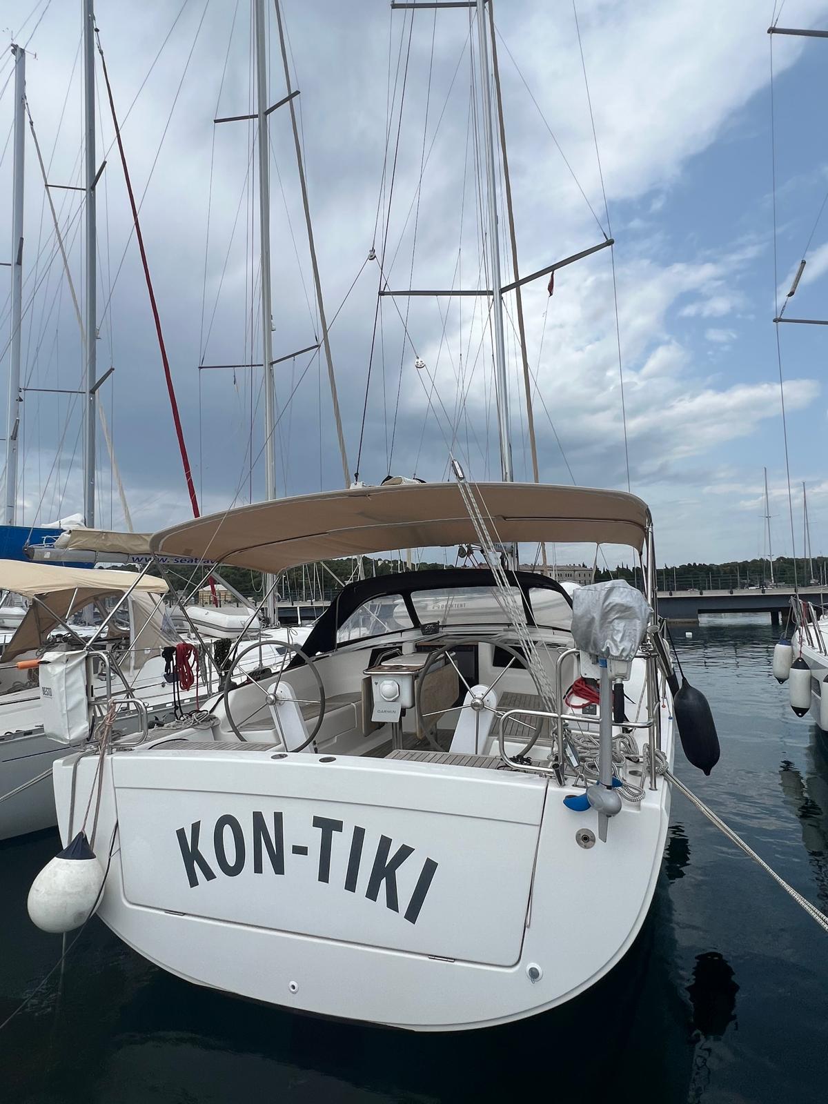 | Outside | 220V shore connection, Bathing platform, Bimini top, Cockpit shower, Cockpit cushions, Cockpit table, Electr. anchor windlass, Snorkeling gear, Sprayhood, Teak deck |